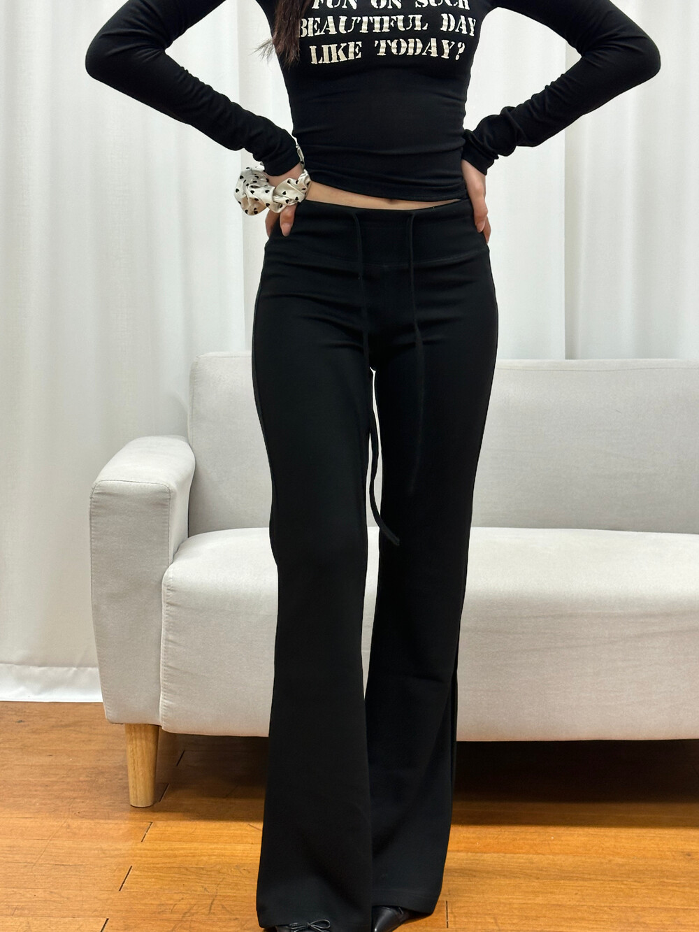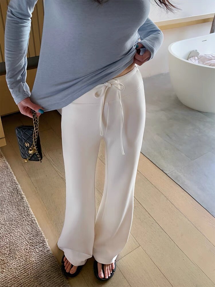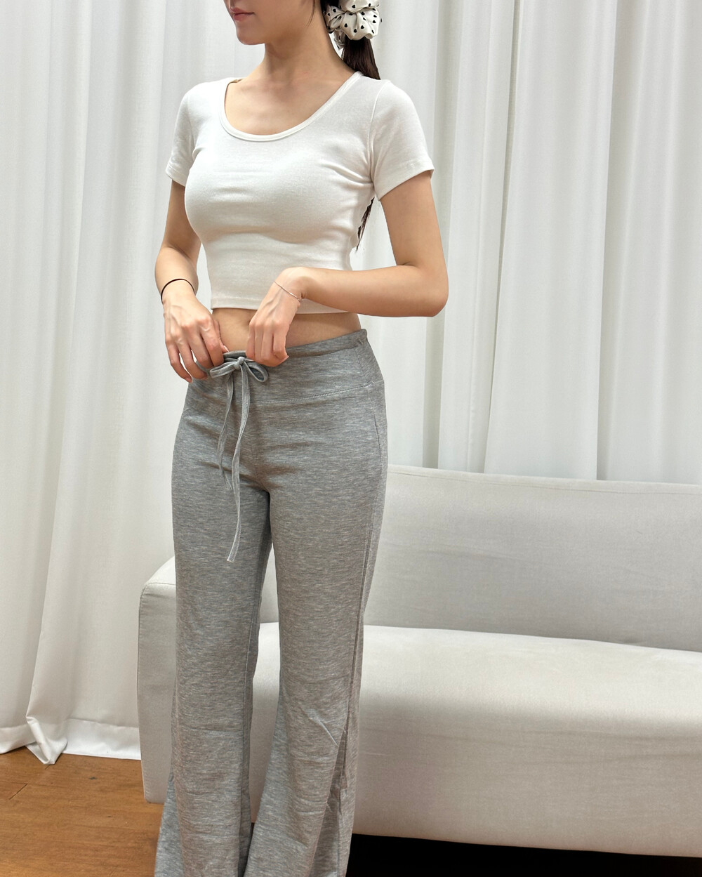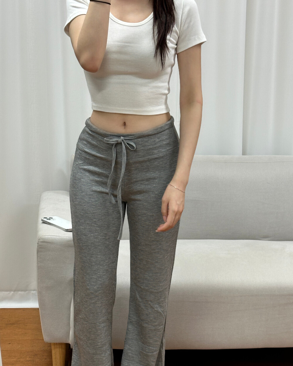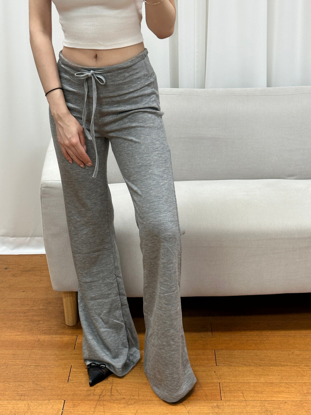 찰랑거리는 소재감이 걸을 때마다 흐르듯 떨어져 부드럽고 고급스러운 무드를 선사하는 부츠컷 팬츠예요.
