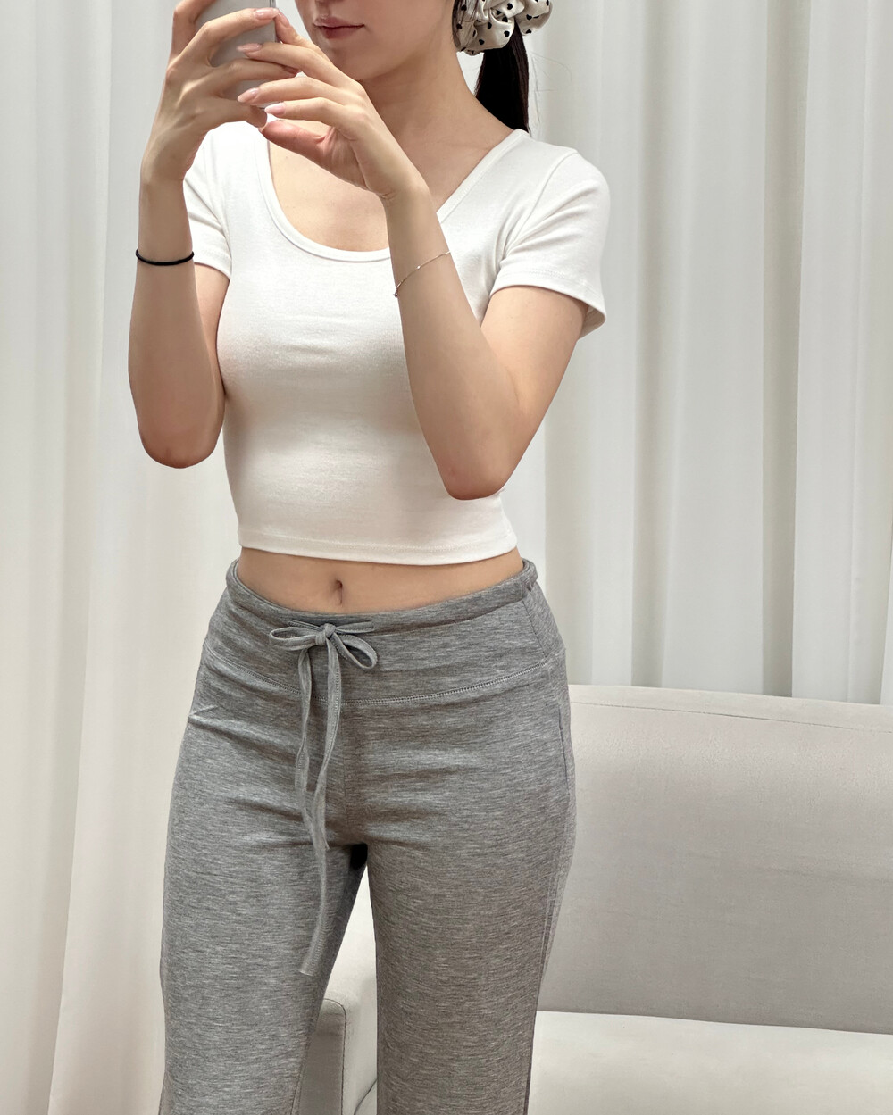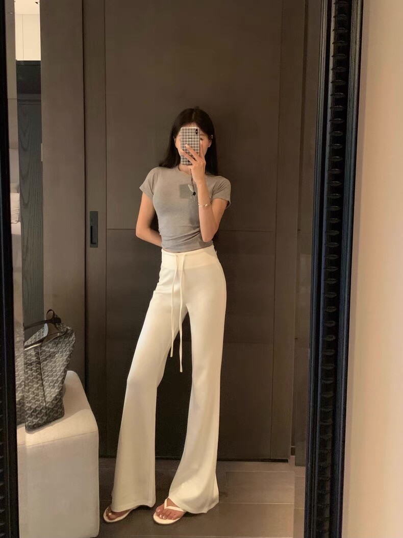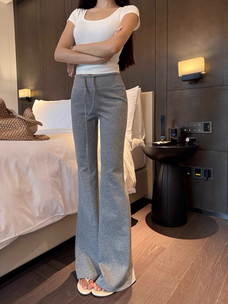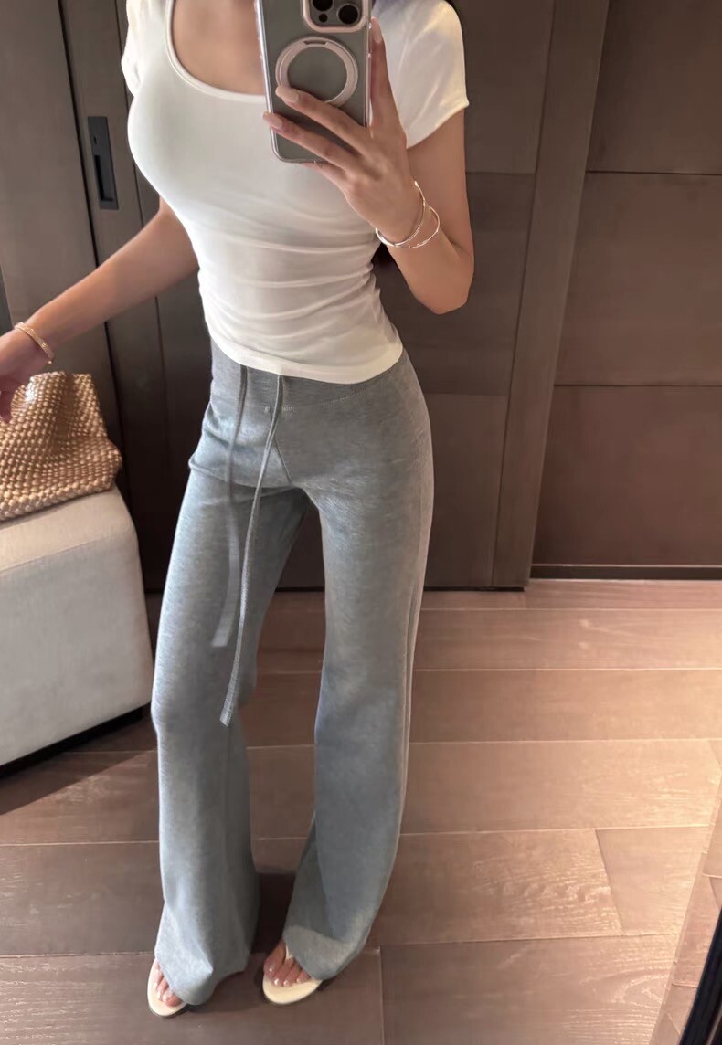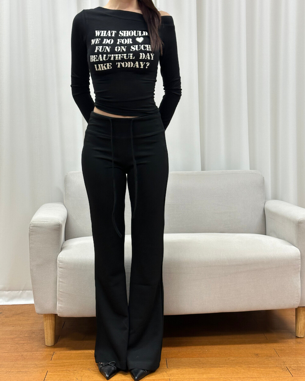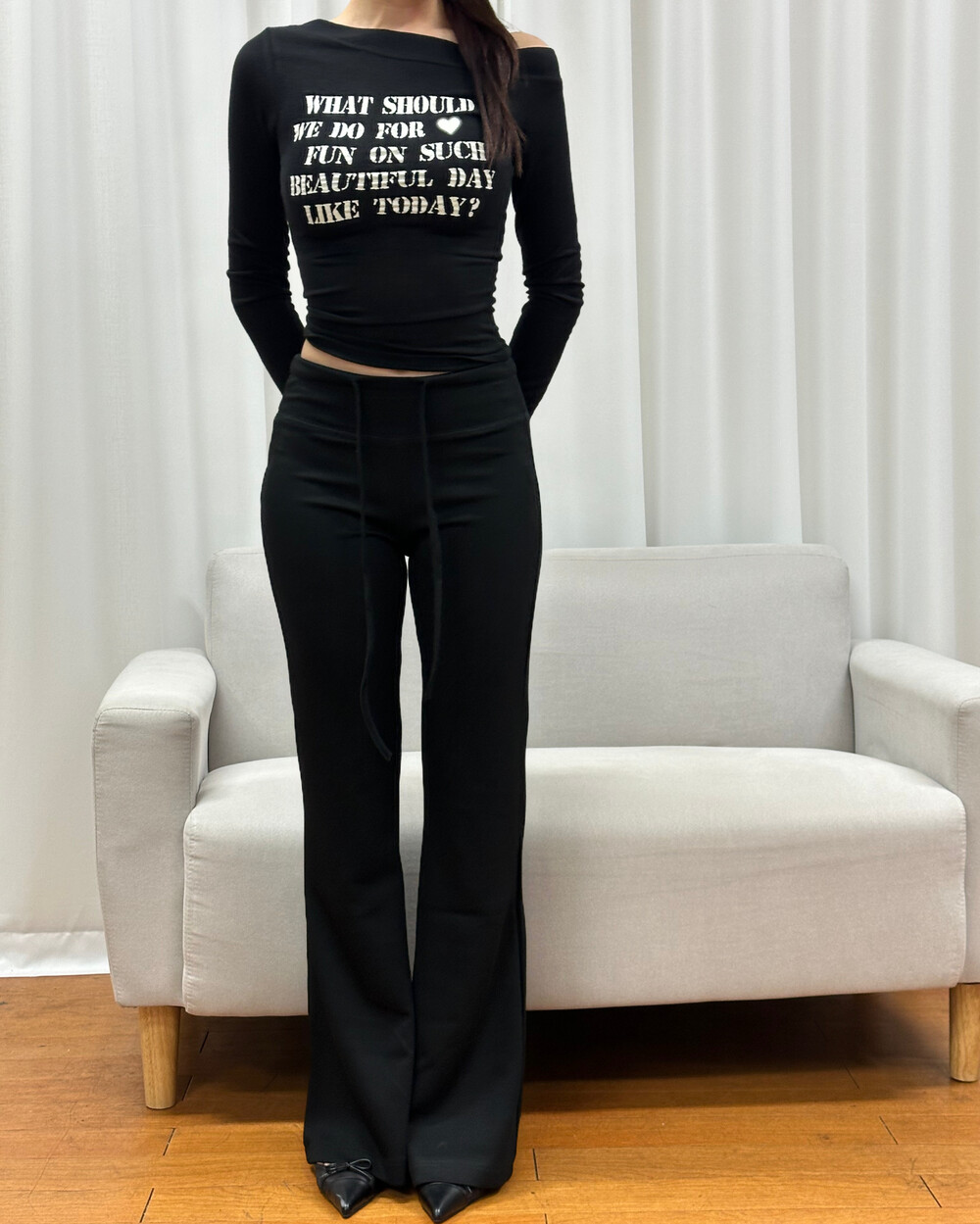 찰랑거리는 소재감이 걸을 때마다 흐르듯 떨어져 부드럽고 고급스러운 무드를 선사하는 부츠컷 팬츠예요.