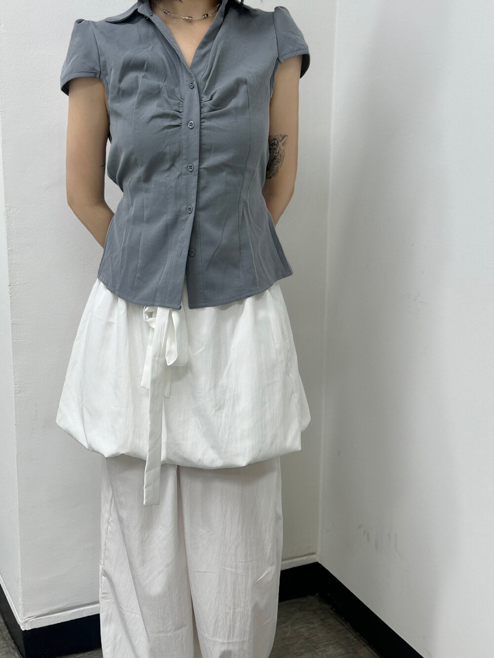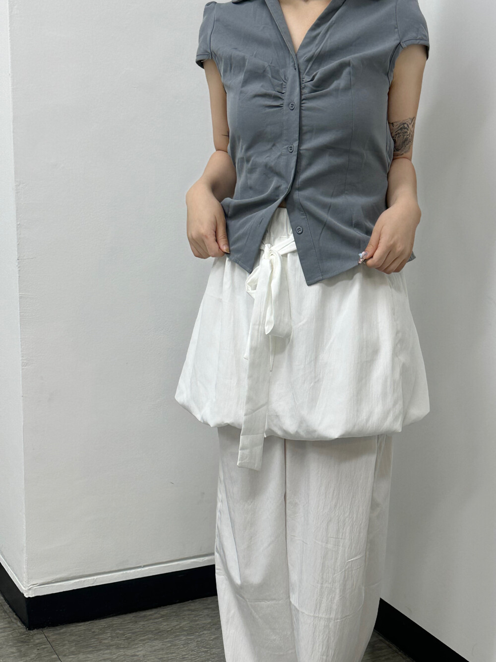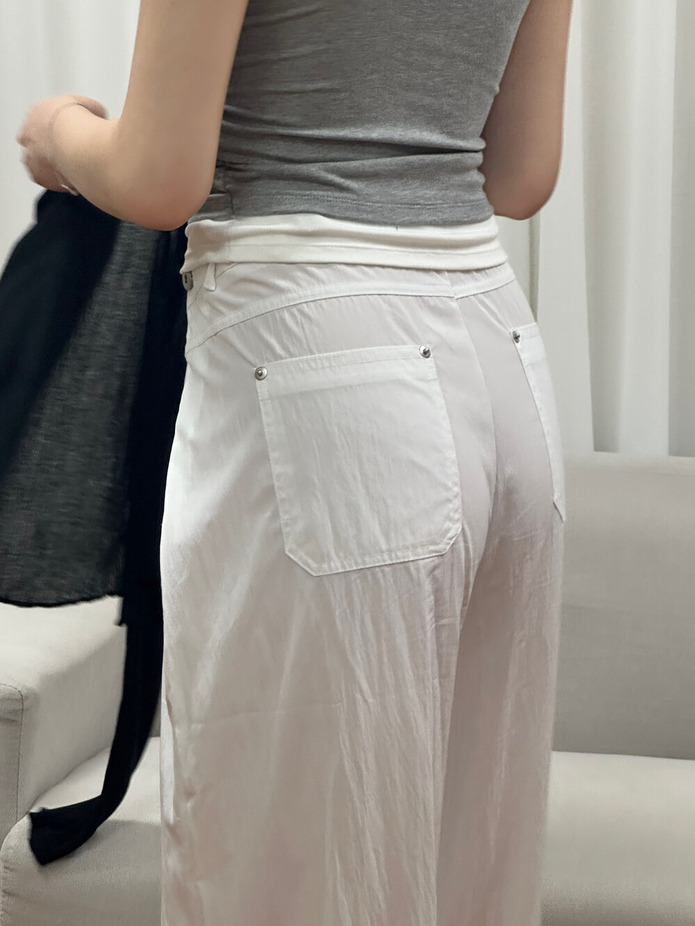 미니멀한 무드의 하이웨스트 와이드 팬츠예요.