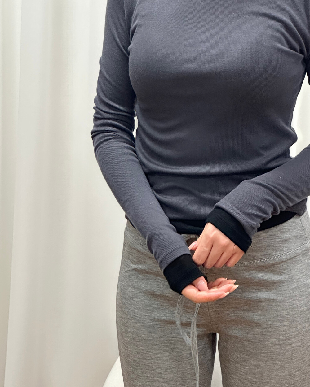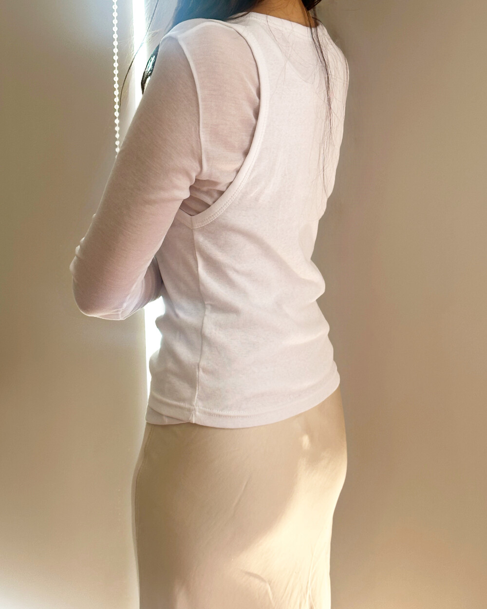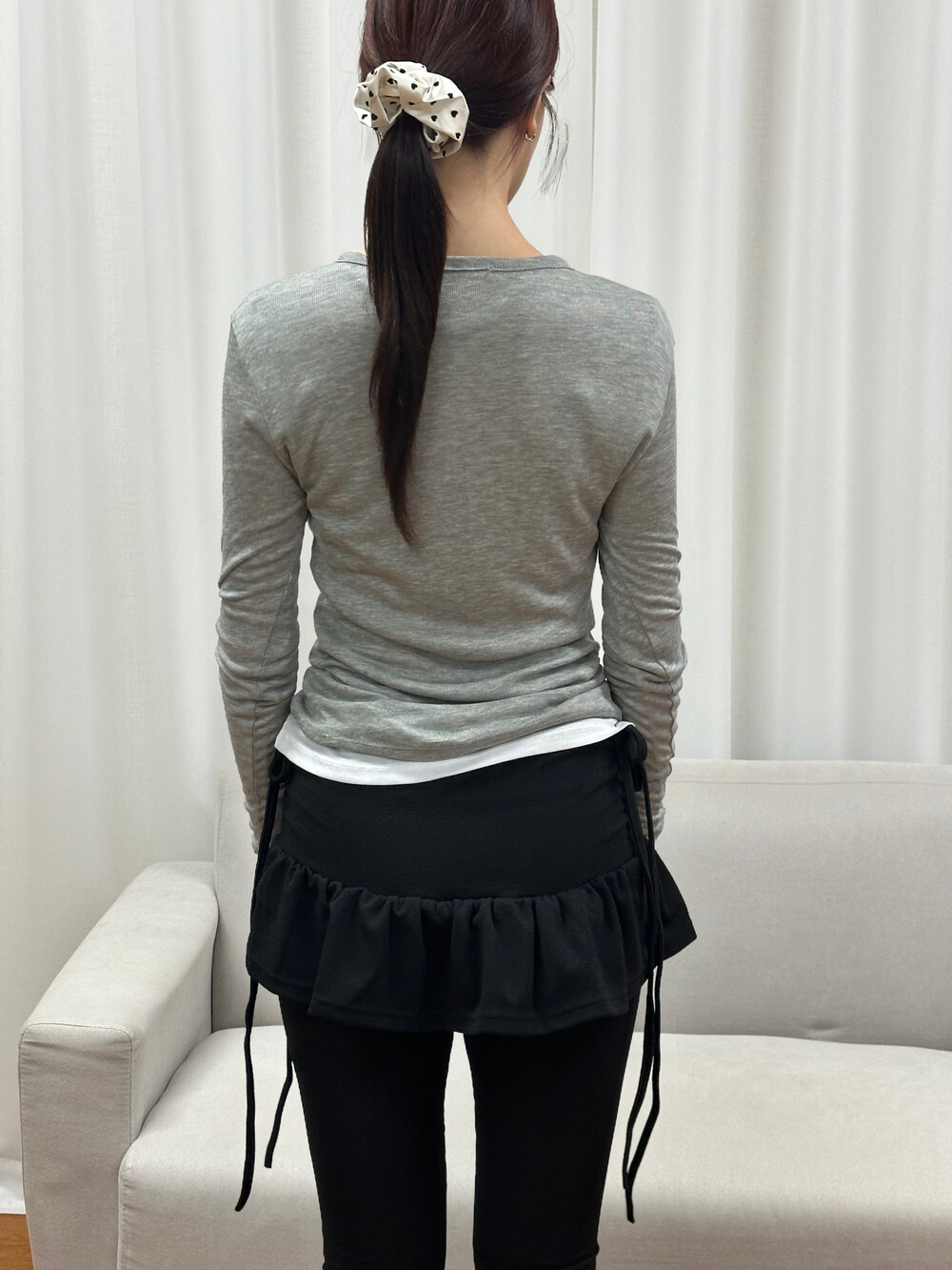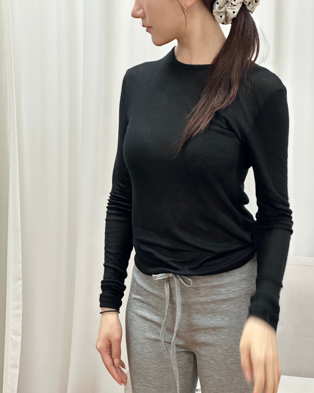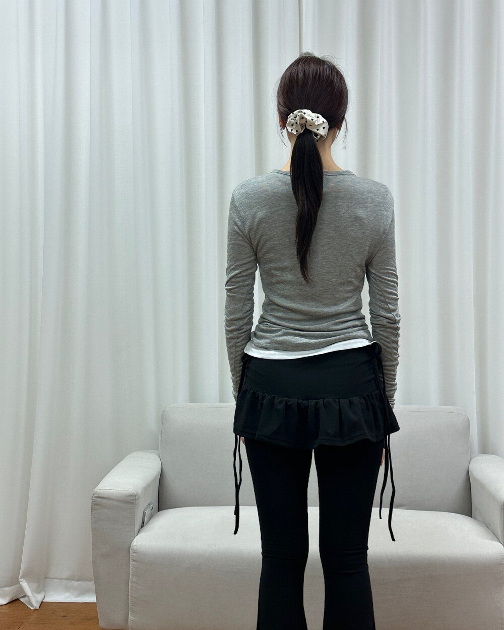 소매가 길게 떨어져 손등을 덮어주는 디자인으로 여리여리한 무드를 연출해주는 베이직 레이어드 티셔츠예요.