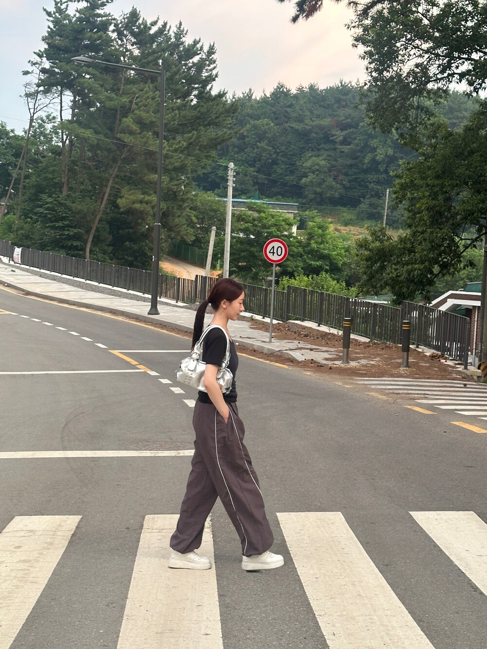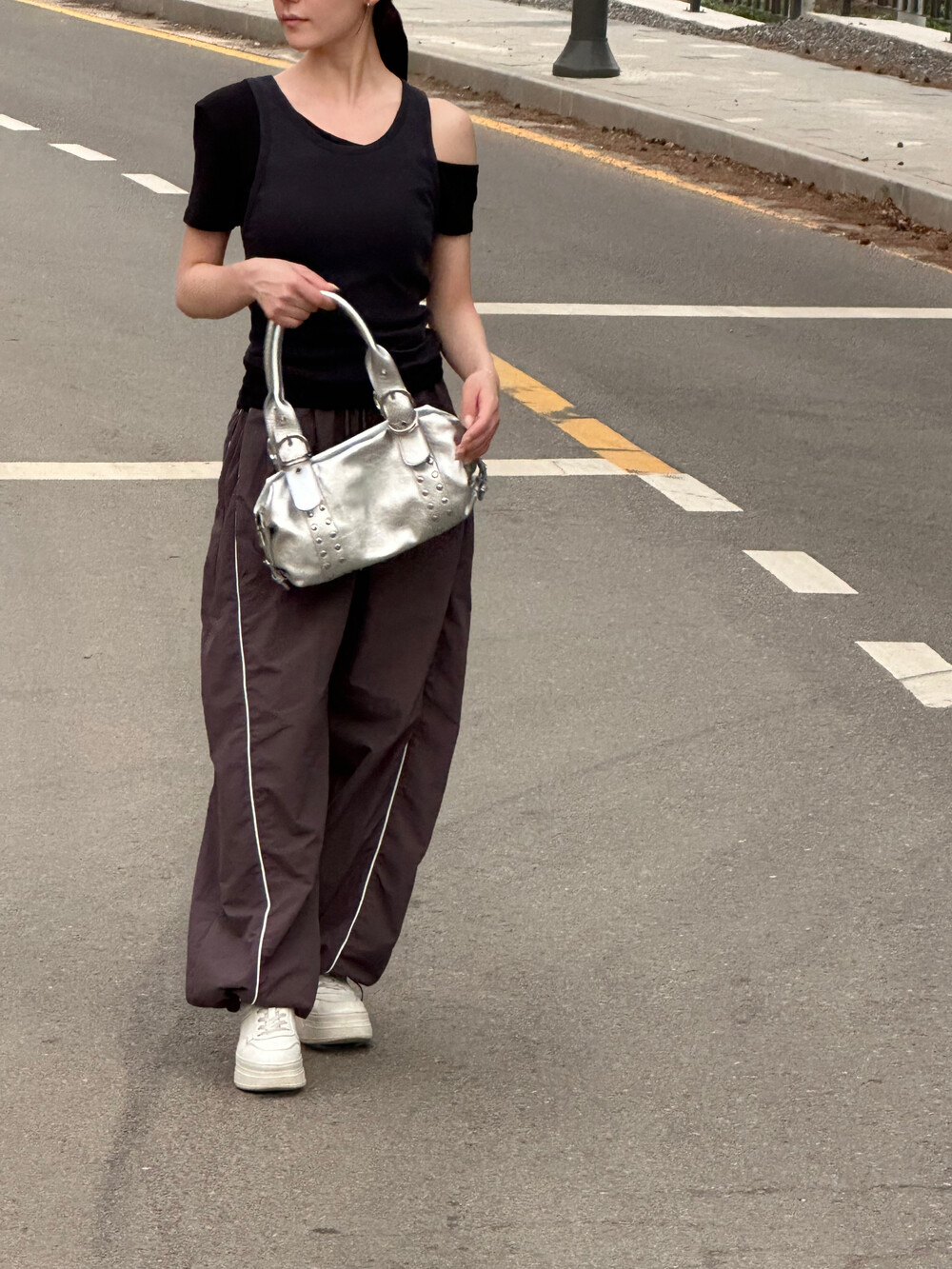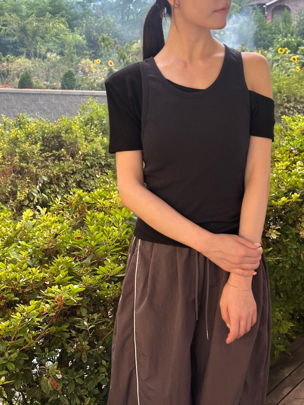 'Offbeat Unbalanced Off-Shoulder Tee' 과 레이어드하여 착용하면 감각적인 스타일링 끝!