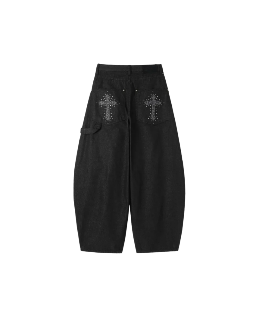Non-Fade Cross Wide-Leg Denim Pants