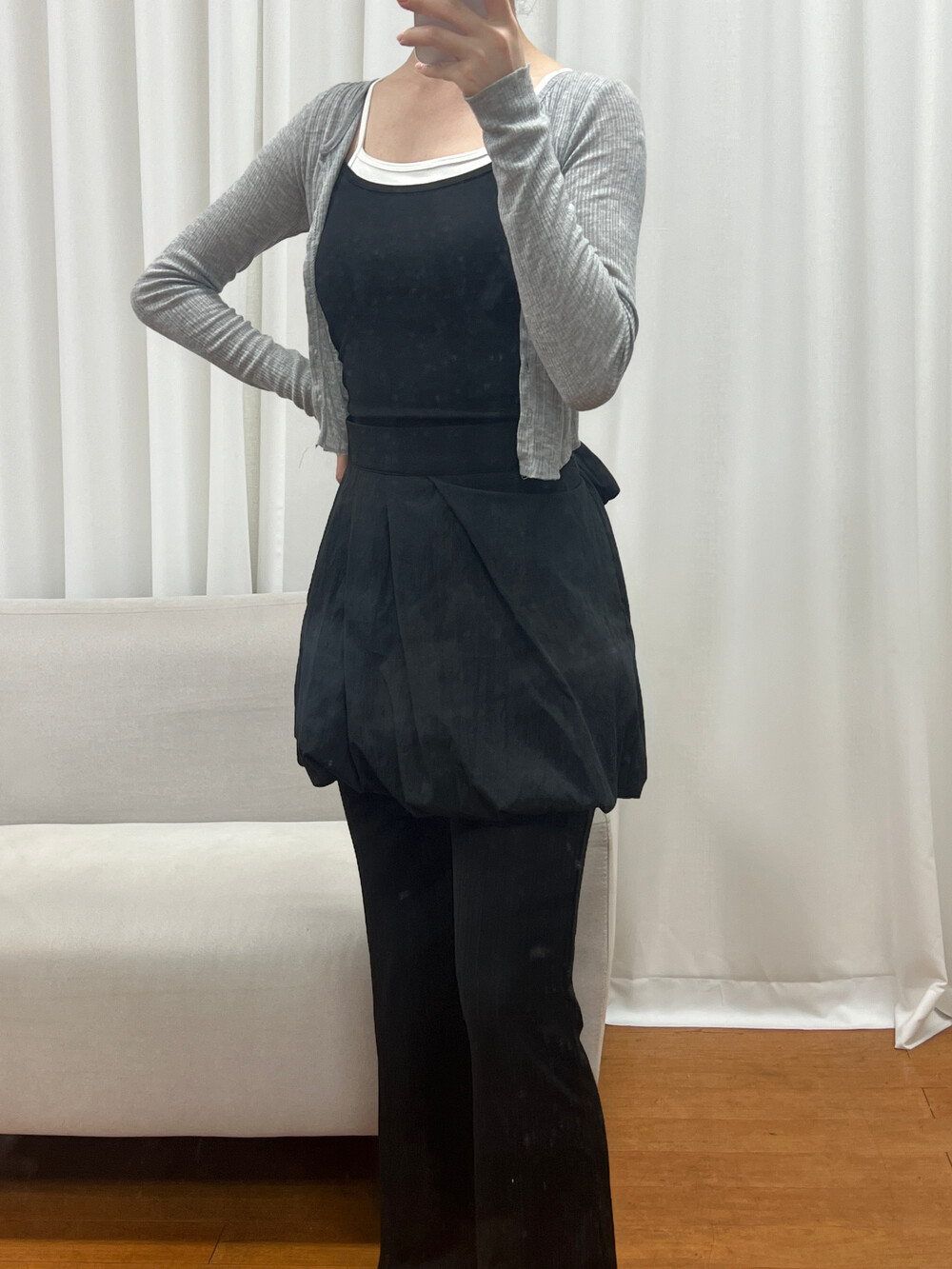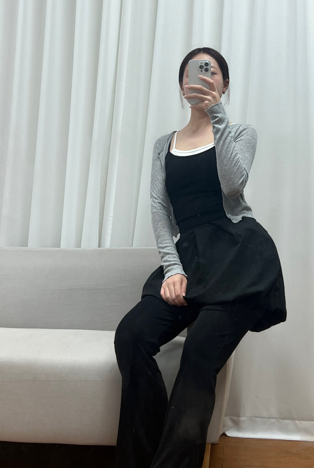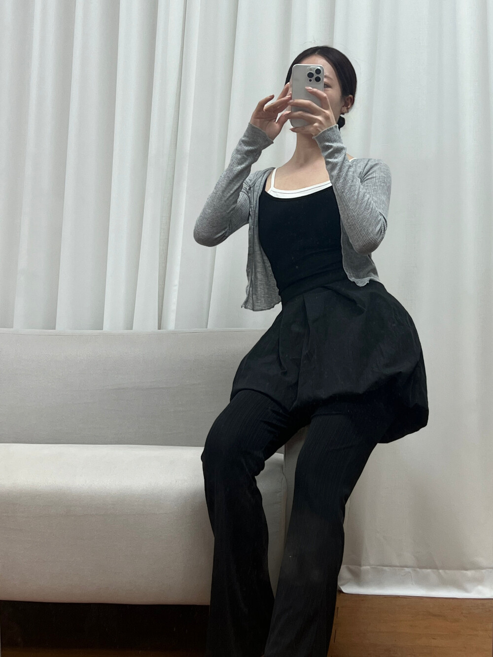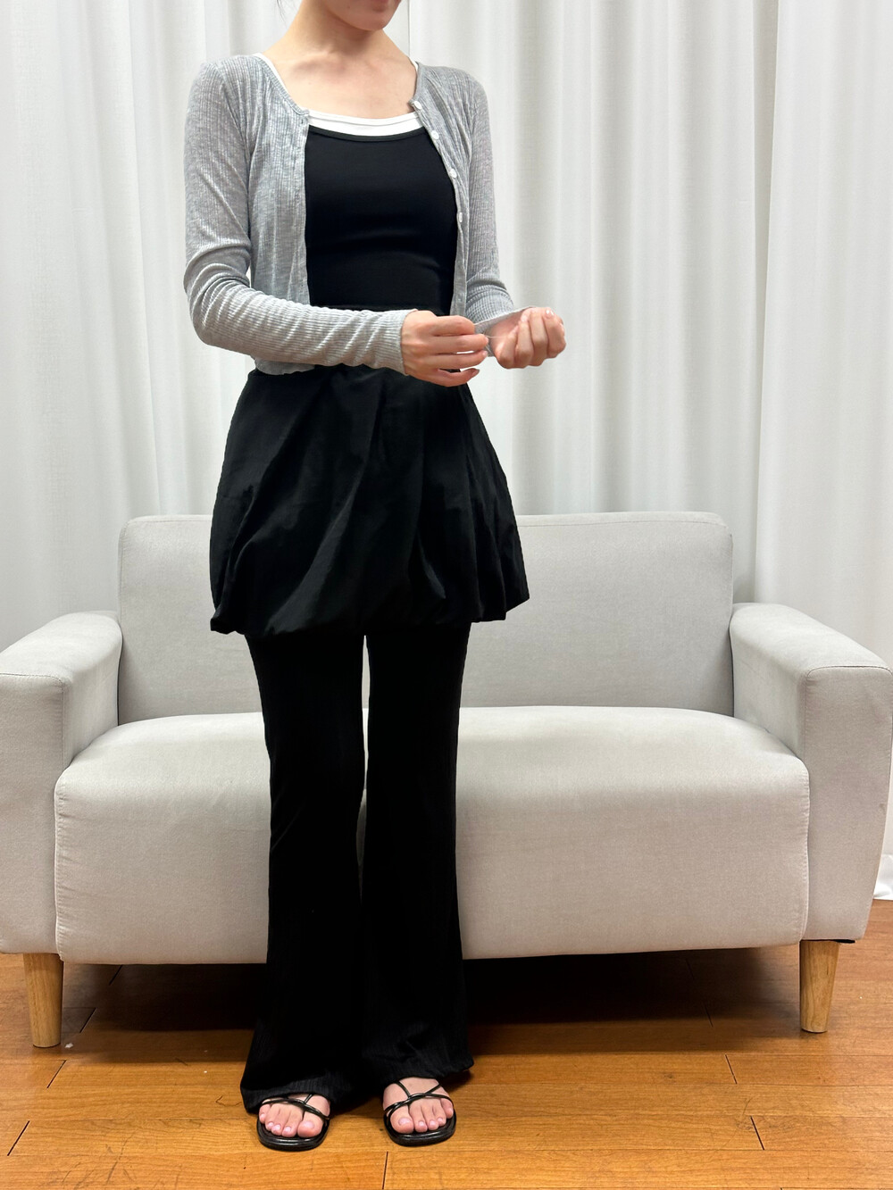 속이 비치는 원피스나 치마 안에 매치하기 좋고 단독으로도 활용 가능한 부츠컷 레깅스예요.