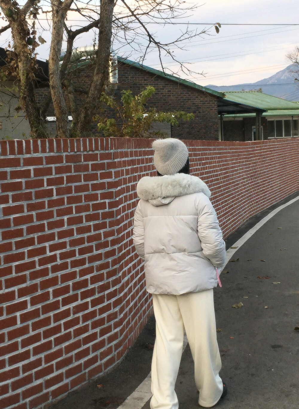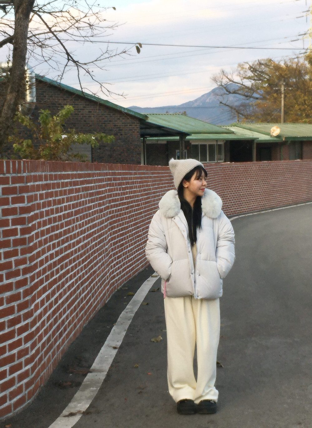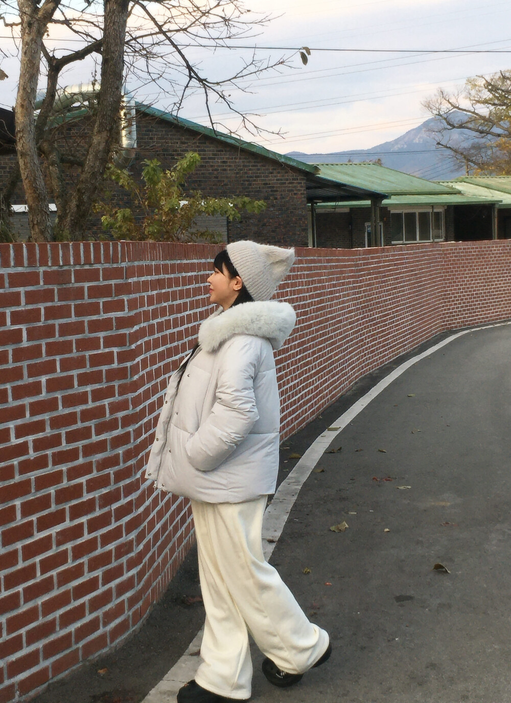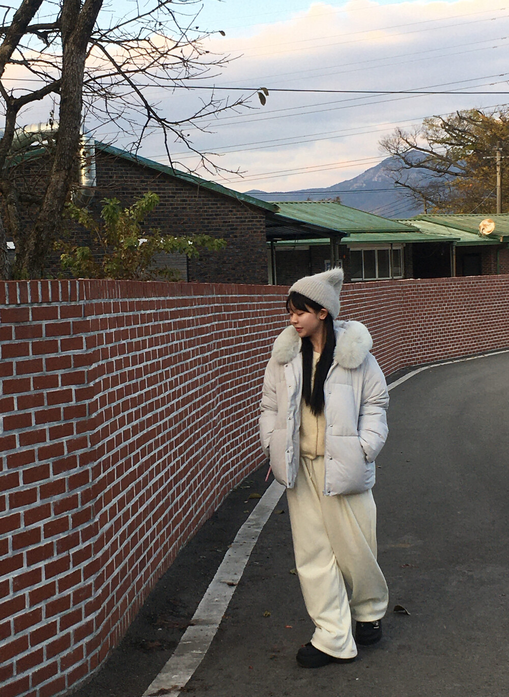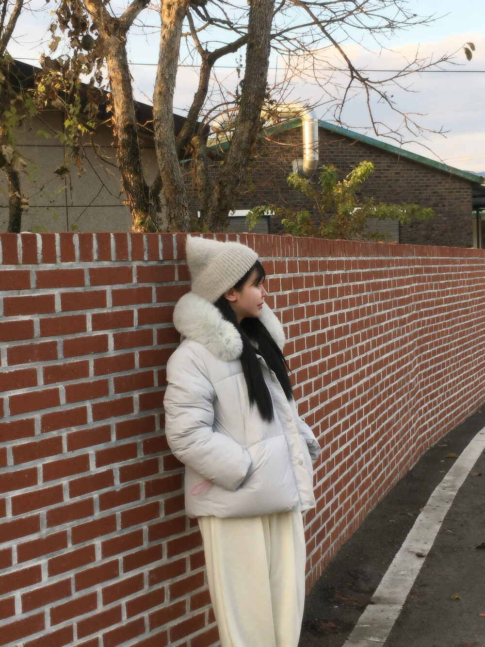 얼굴을 폭 감싸는 큰 모자 디자인 덕분에 한겨울 바람에도 걱정 없이 따뜻하게 즐기기 좋은 겨울 데일리 패딩입니다 :)