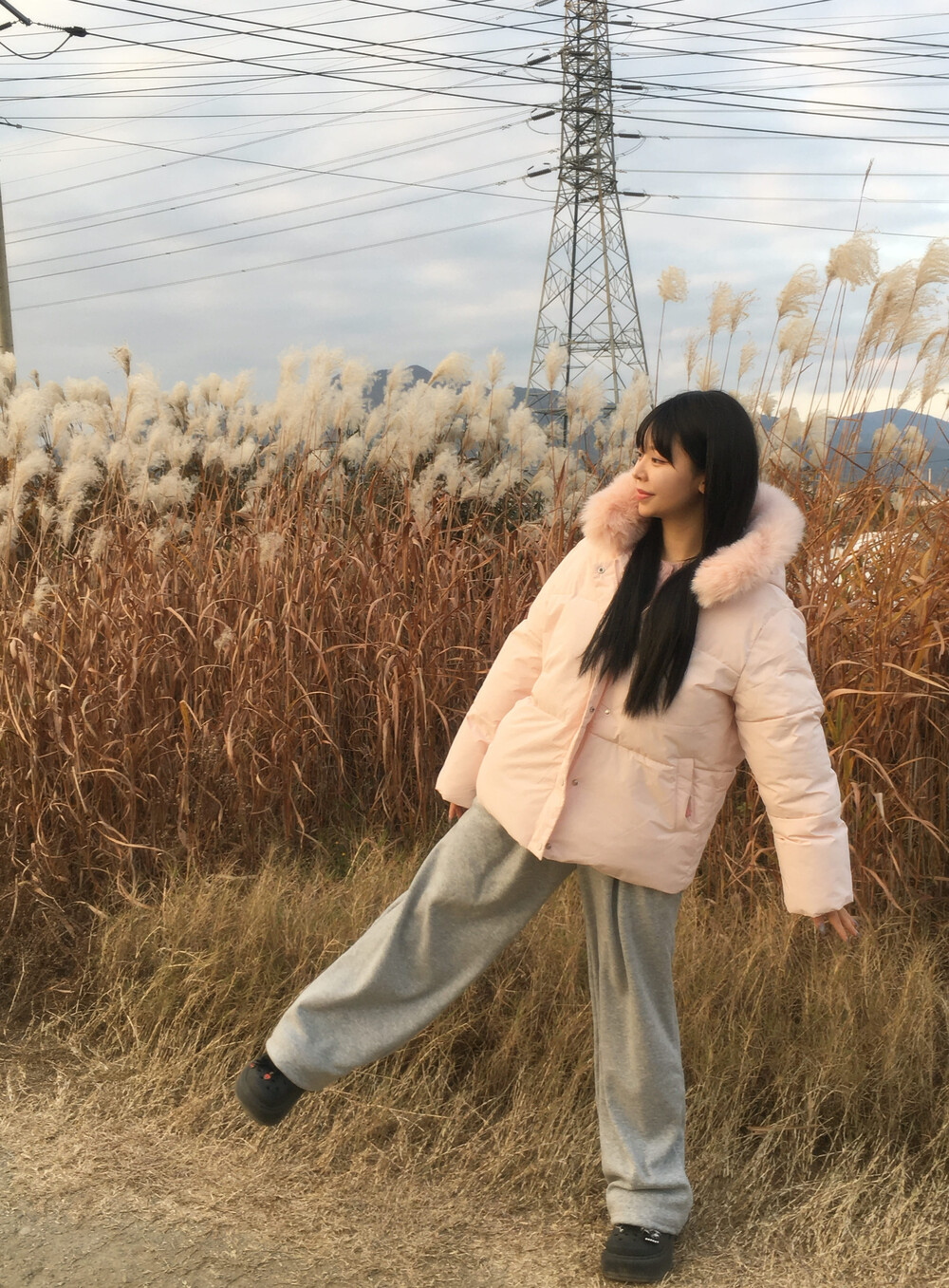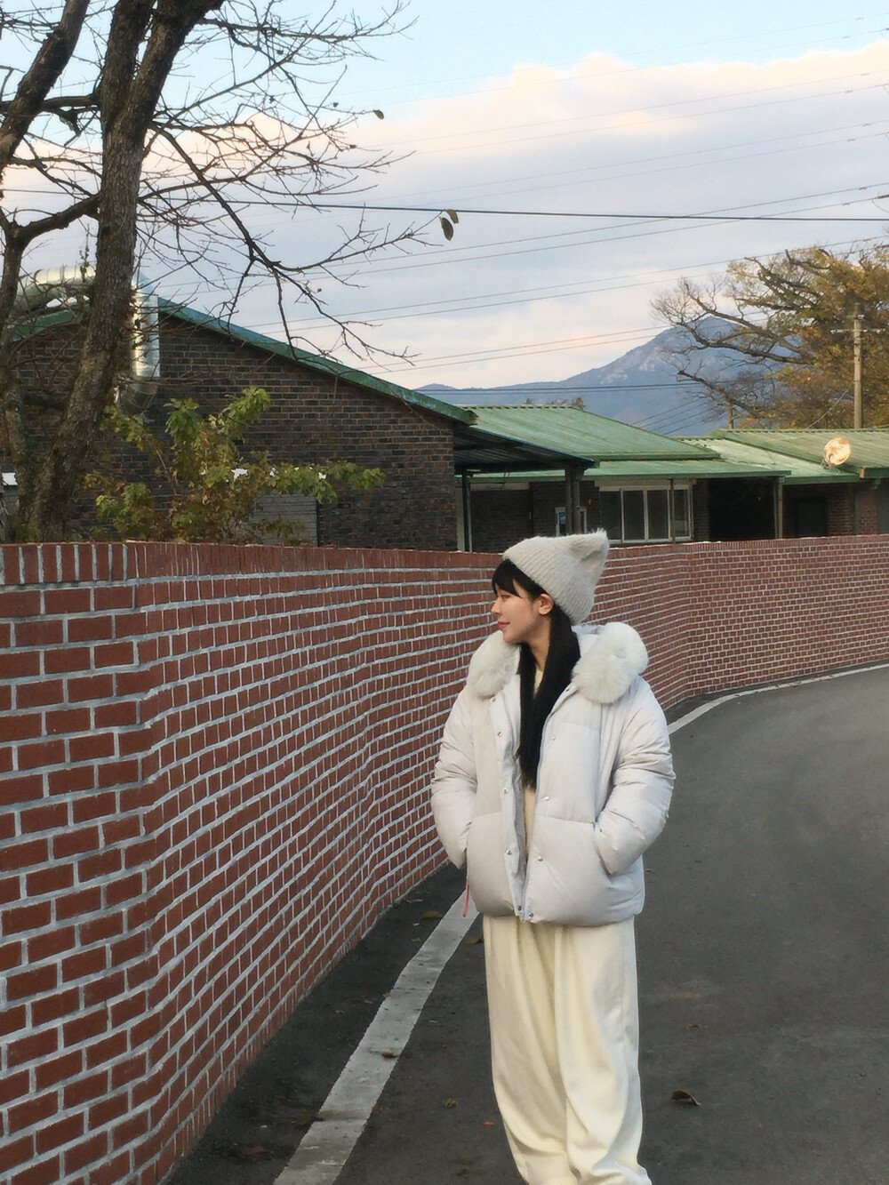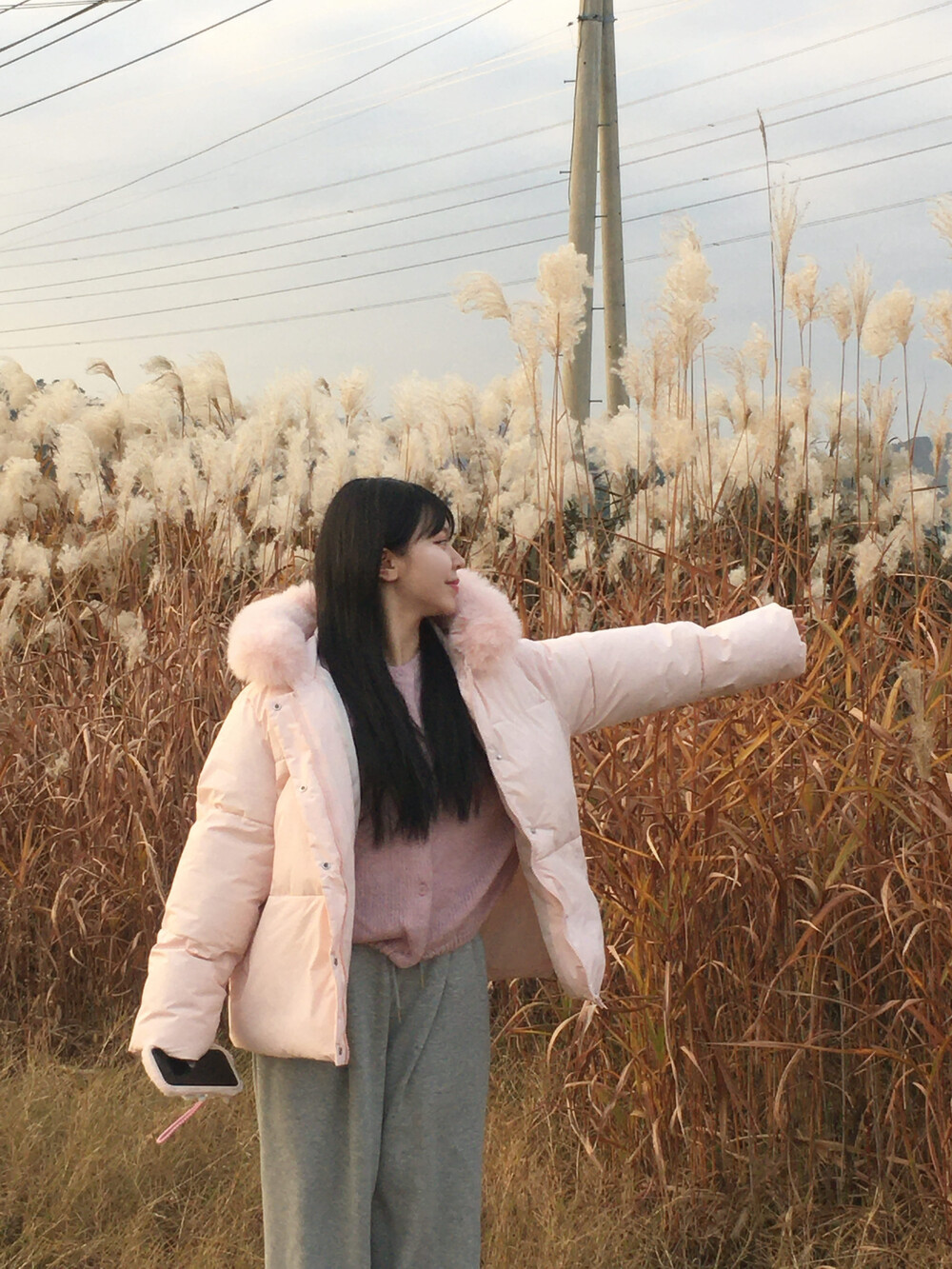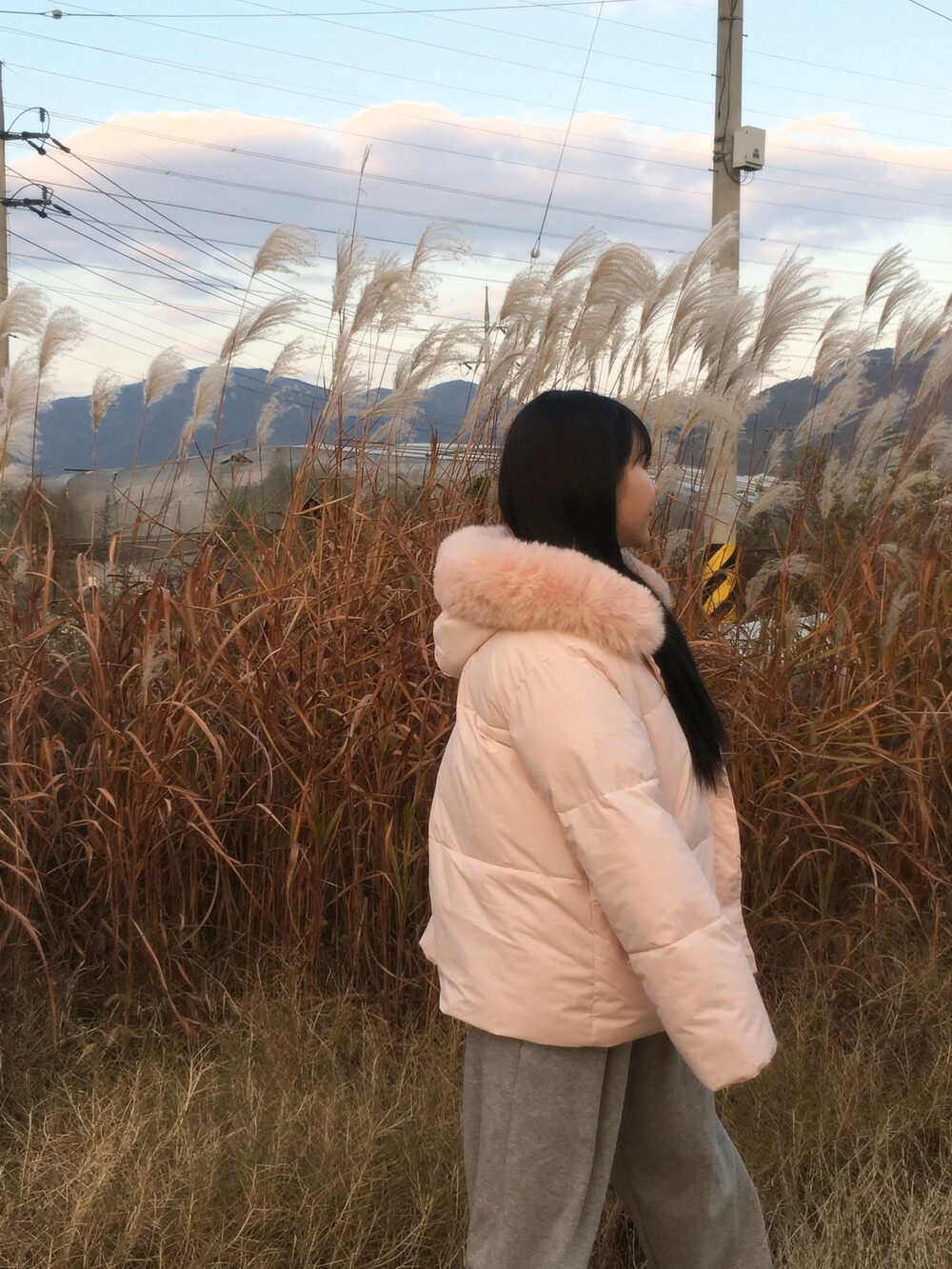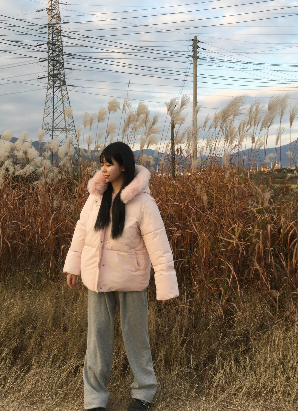 얼굴을 폭 감싸는 큰 모자 디자인 덕분에 한겨울 바람에도 걱정 없이 따뜻하게 즐기기 좋은 겨울 데일리 패딩입니다 :)