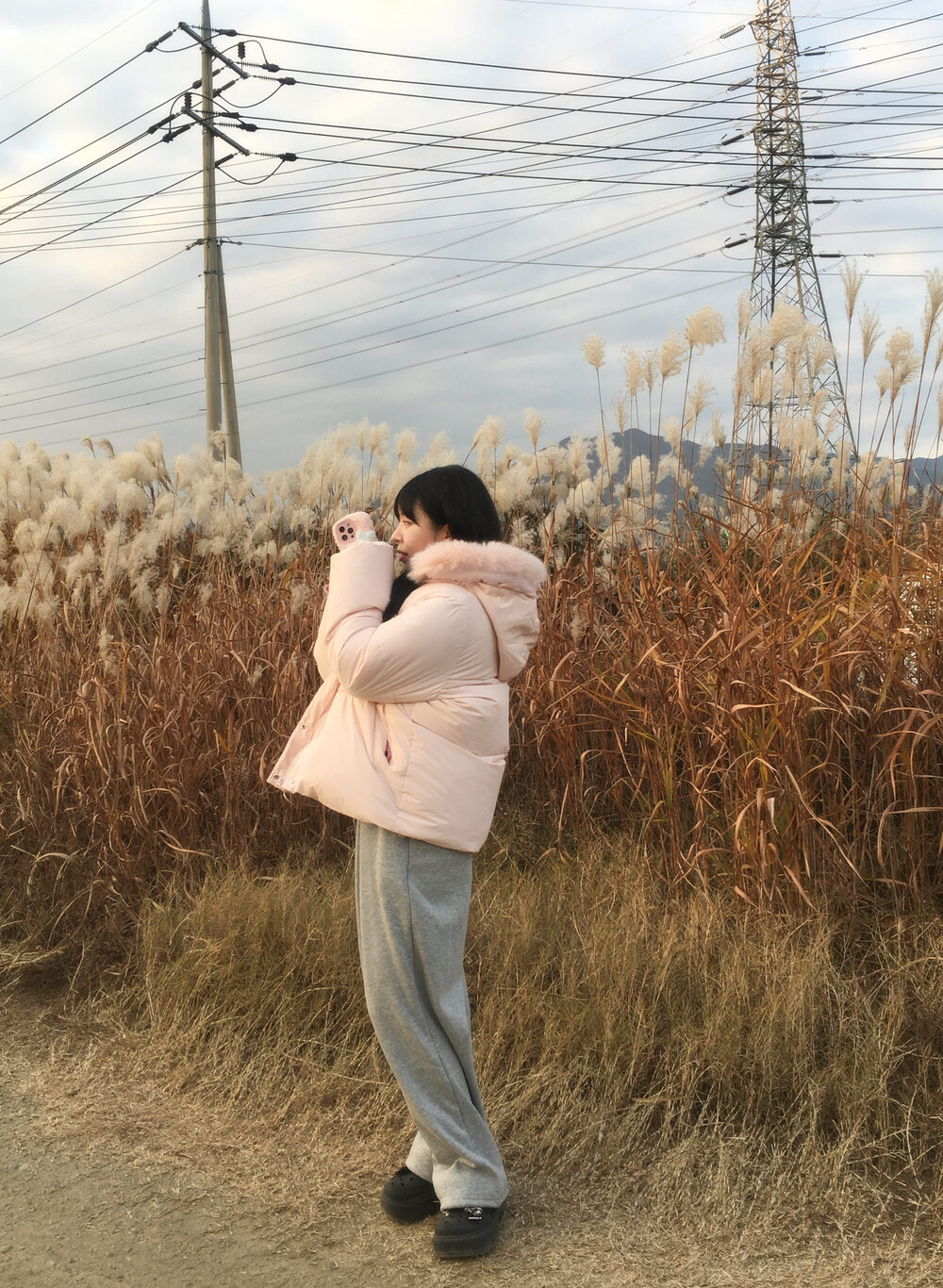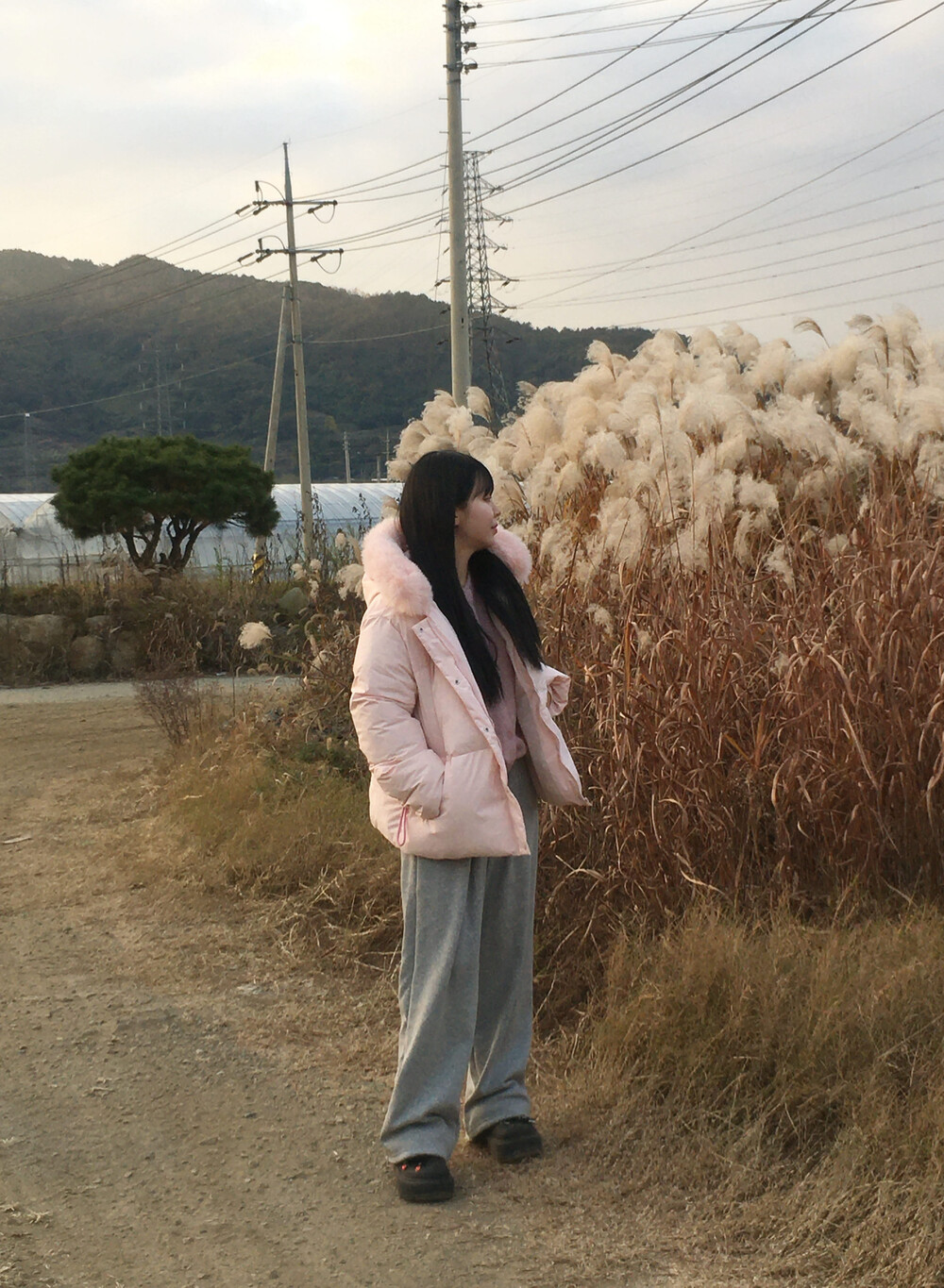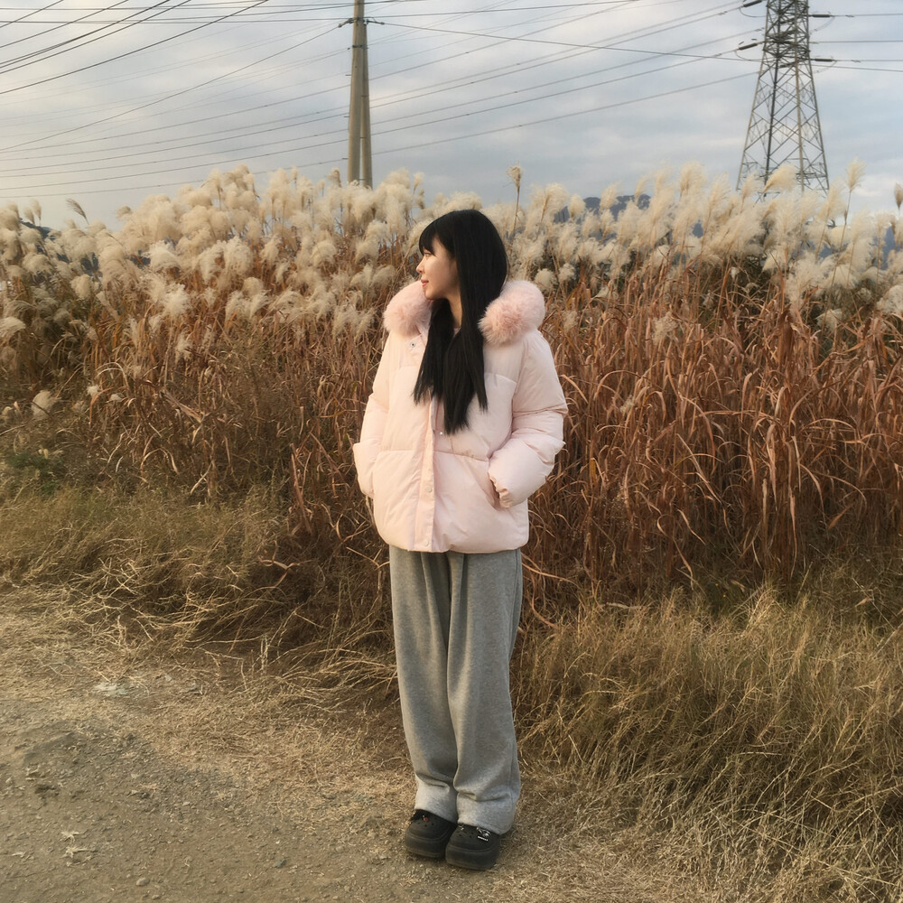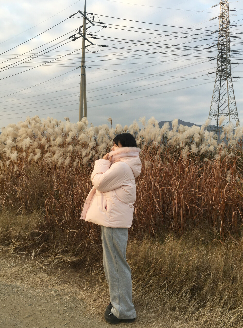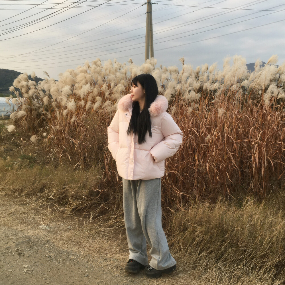 얼굴을 폭 감싸는 큰 모자 디자인 덕분에 한겨울 바람에도 걱정 없이 따뜻하게 즐기기 좋은 겨울 데일리 패딩입니다 :)
