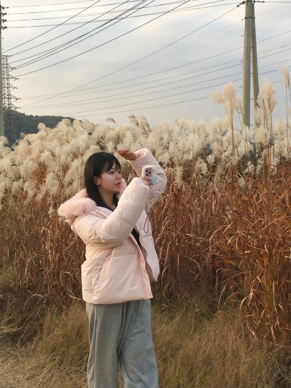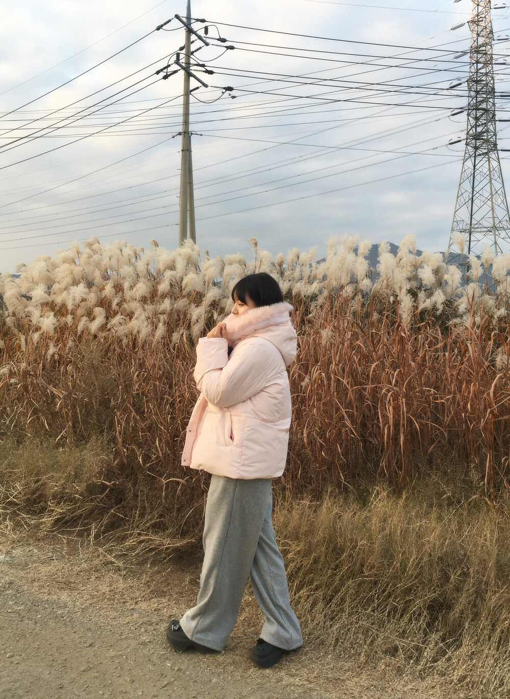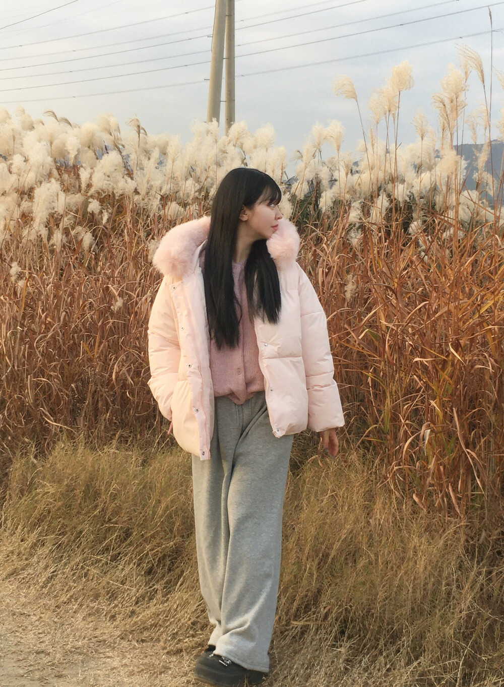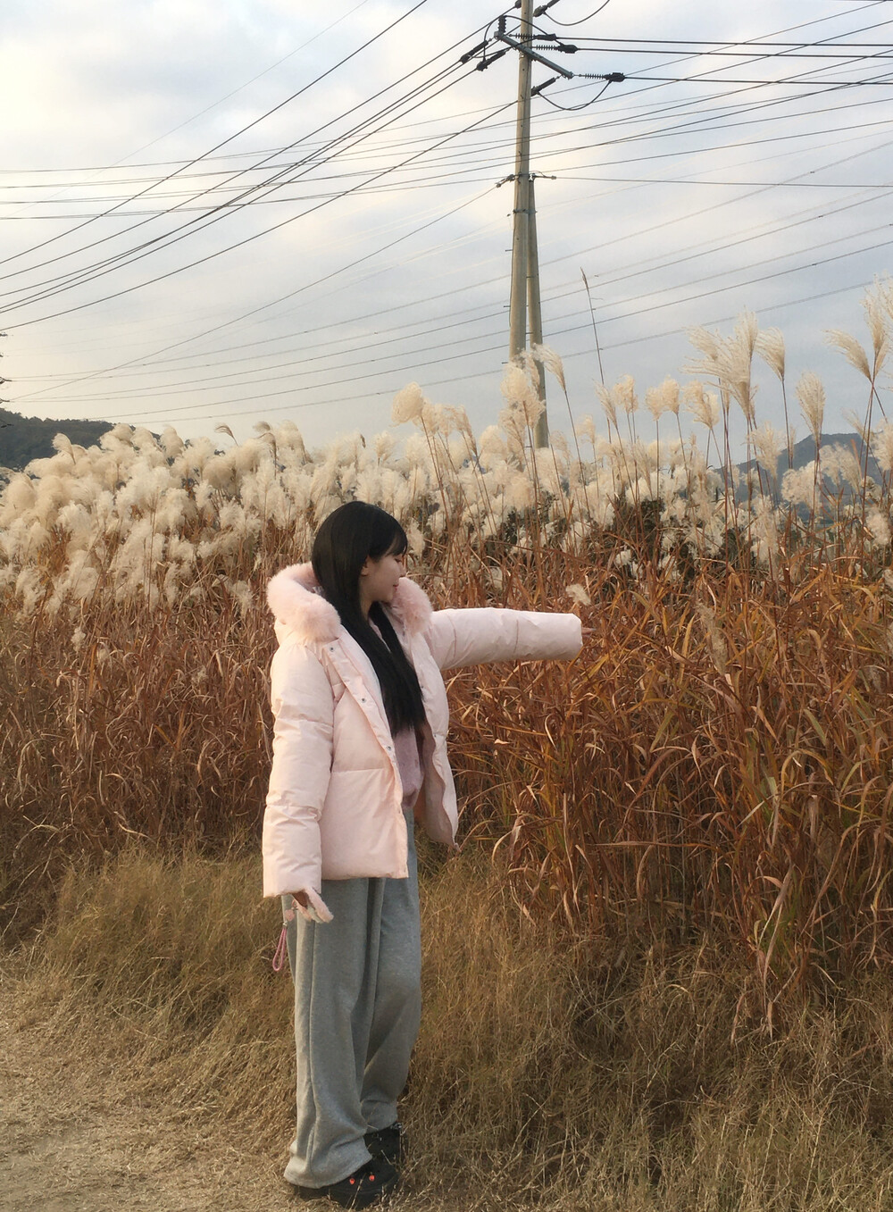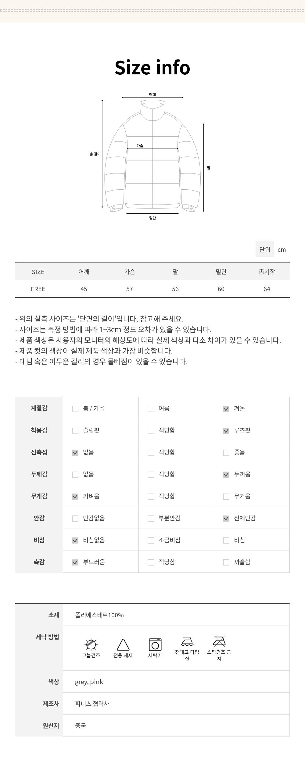 얼굴을 폭 감싸는 큰 모자 디자인 덕분에 한겨울 바람에도 걱정 없이 따뜻하게 즐기기 좋은 겨울 데일리 패딩입니다 :)