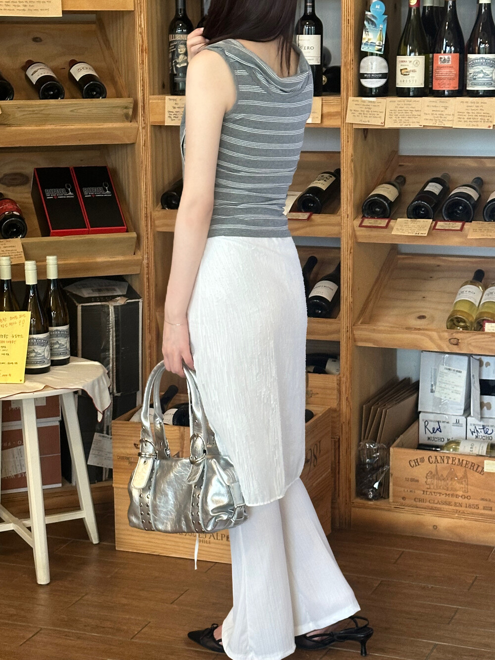 속이 비치는 원피스나 치마 안에 매치하기 좋고 단독으로도 활용 가능한 부츠컷 레깅스예요.