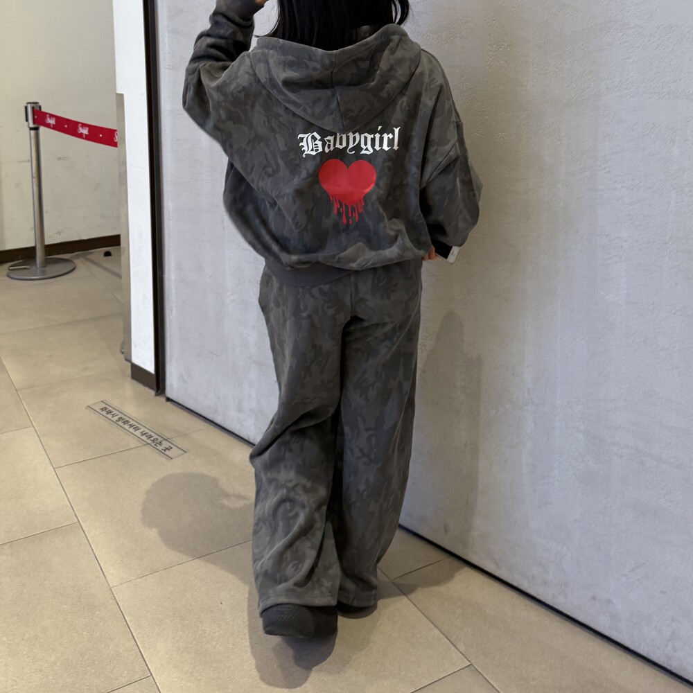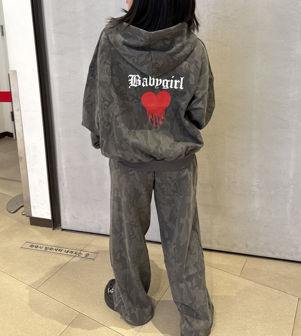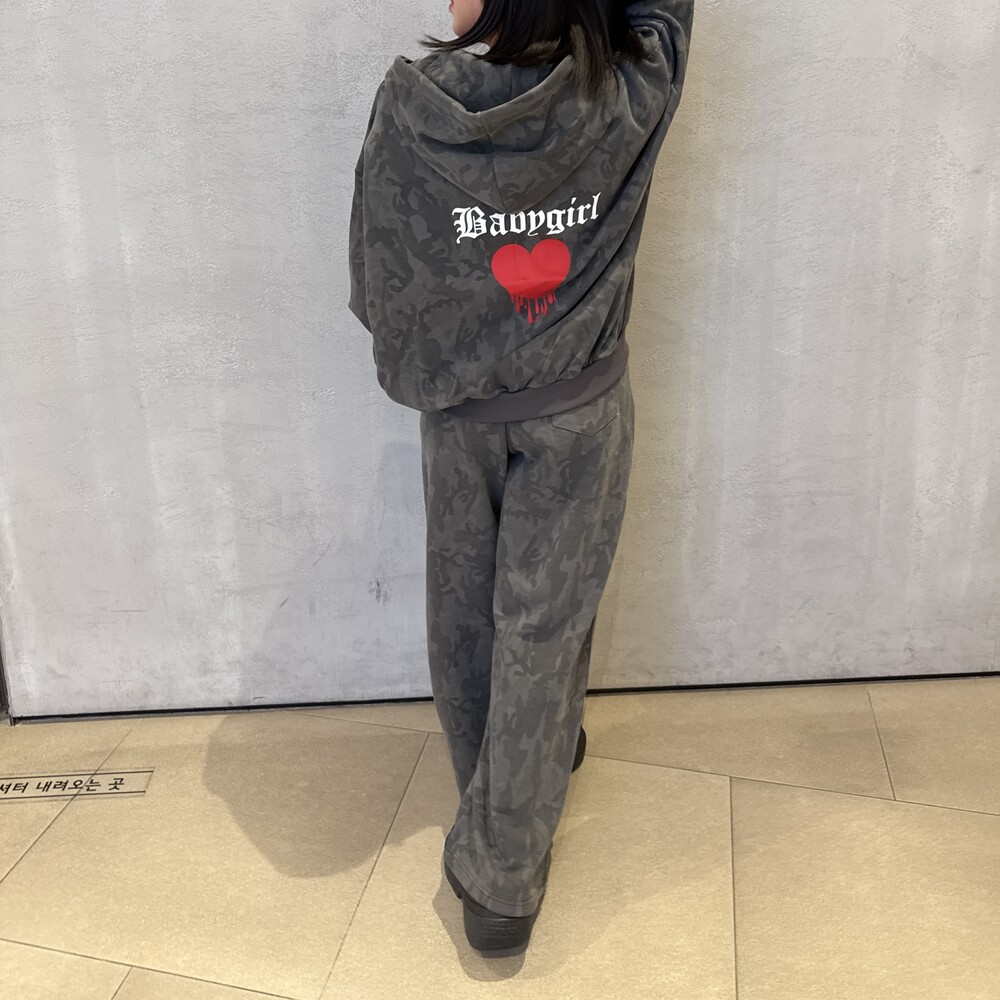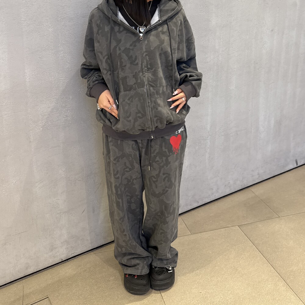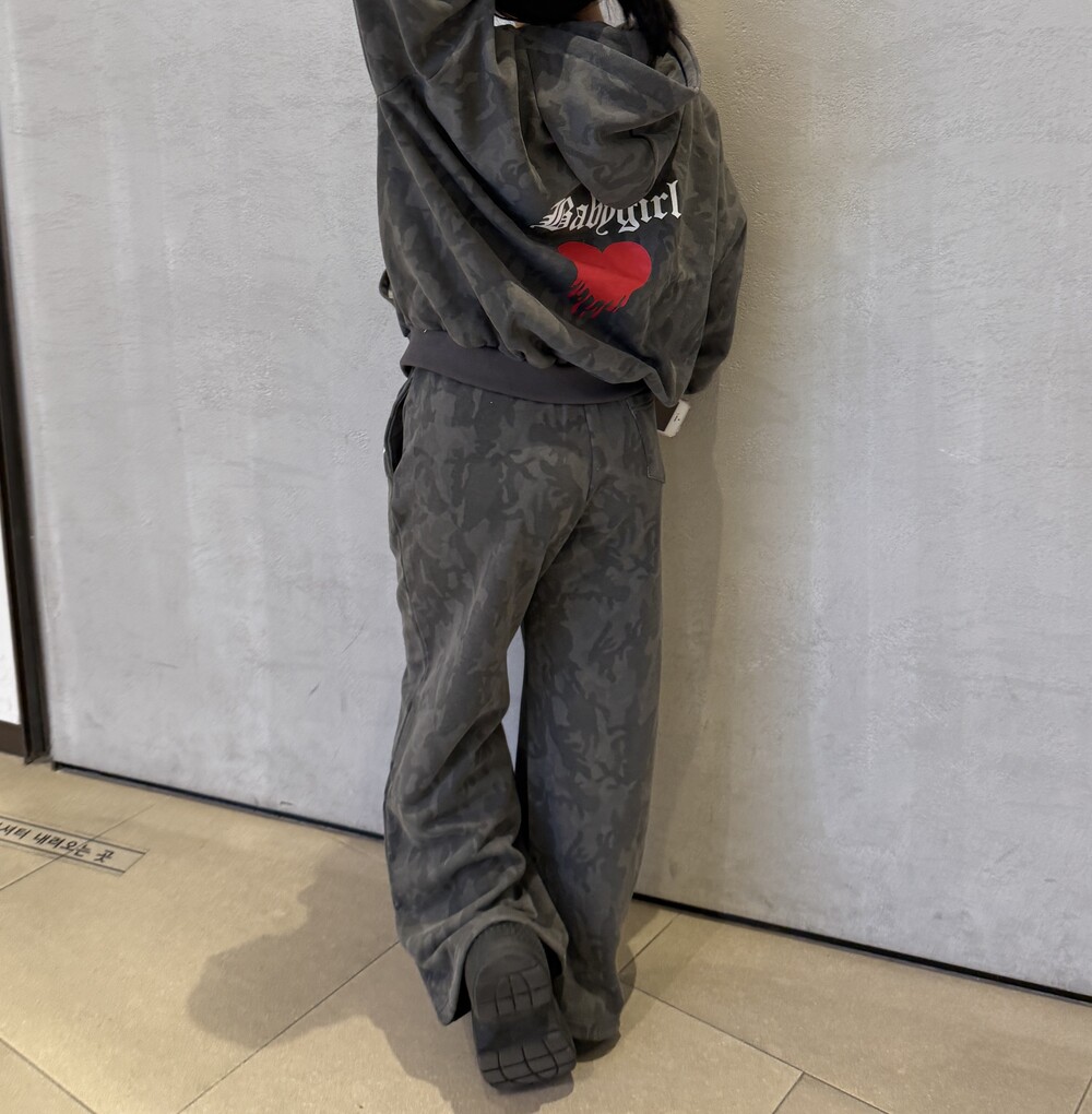 오버핏 카모 후드 집업 & 와이드 팬츠 SET