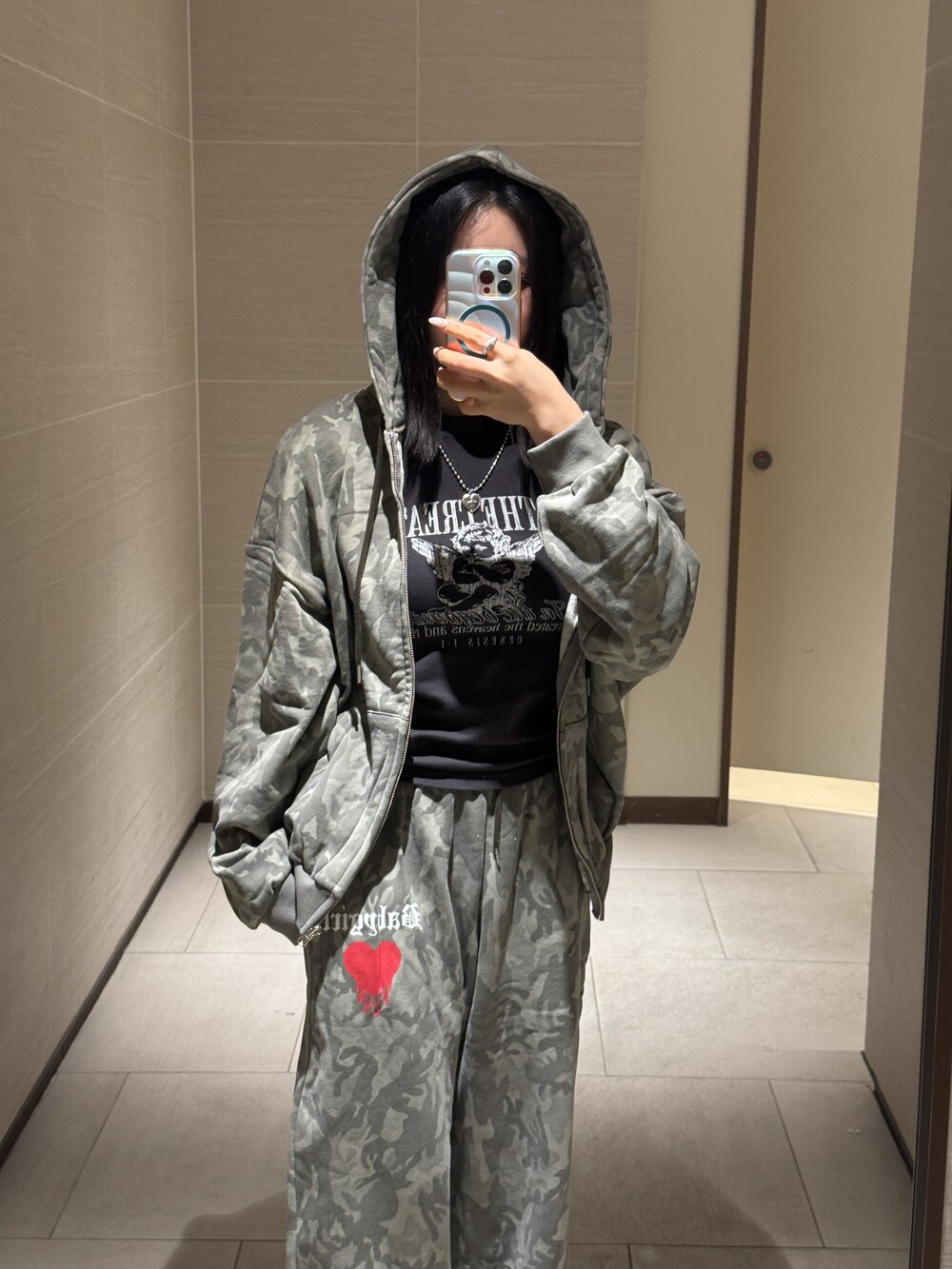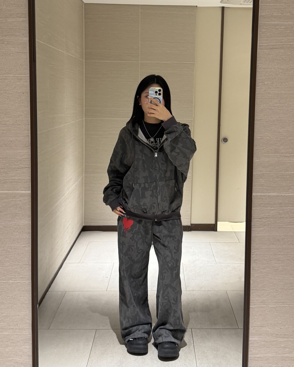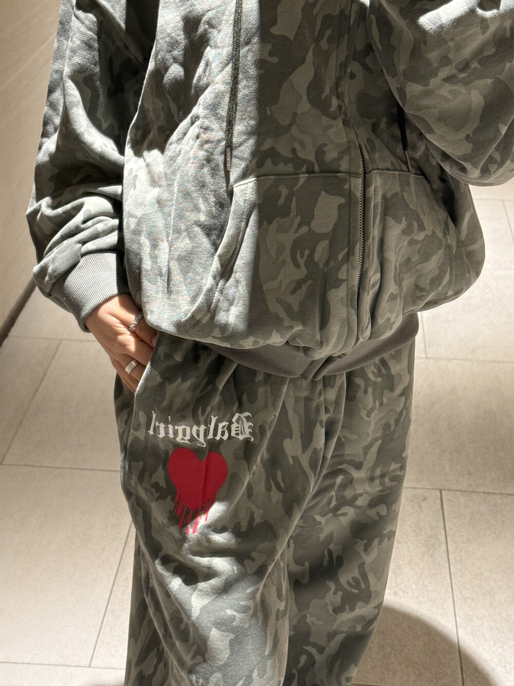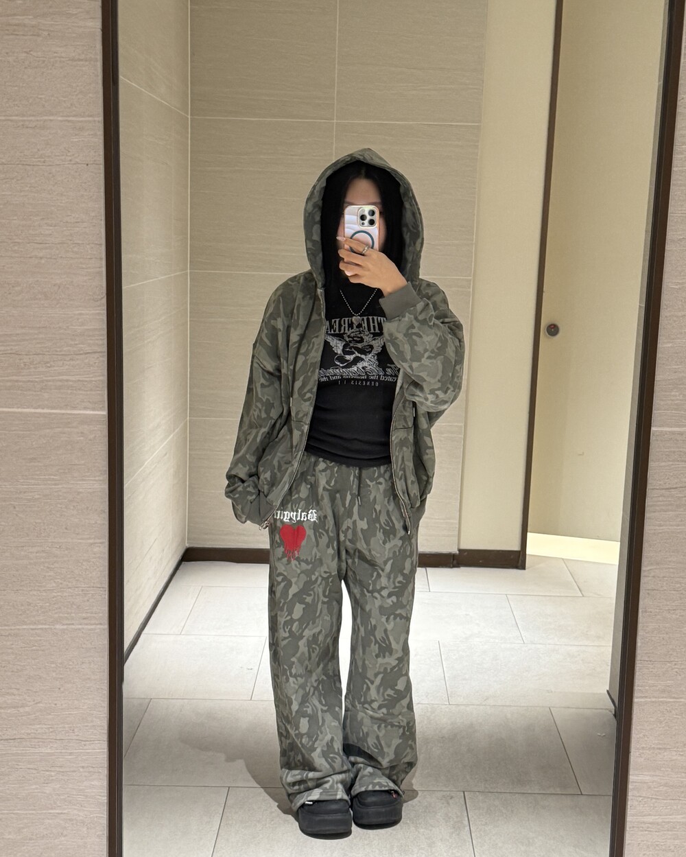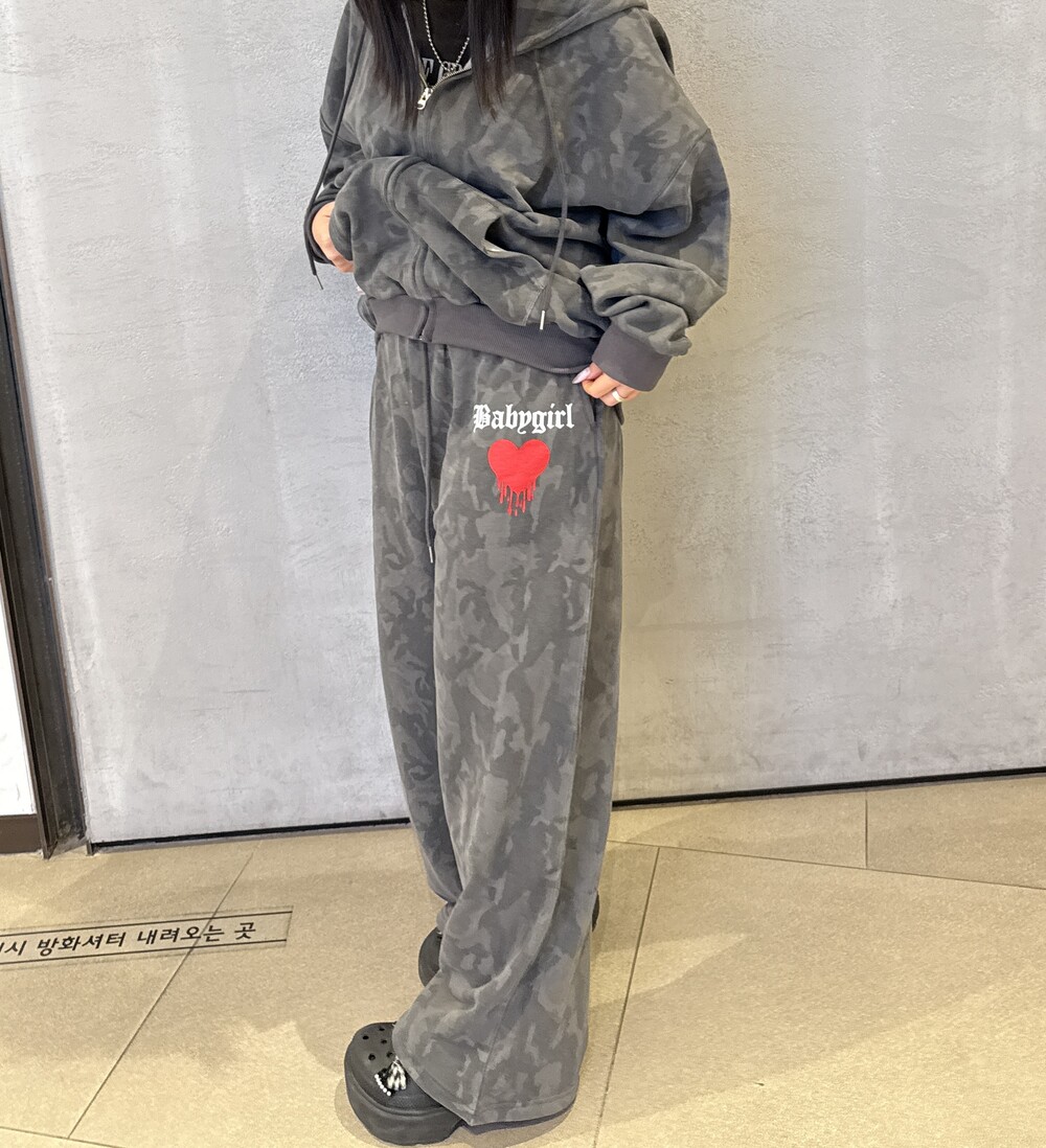 오버핏 카모 후드 집업 & 와이드 팬츠 SET