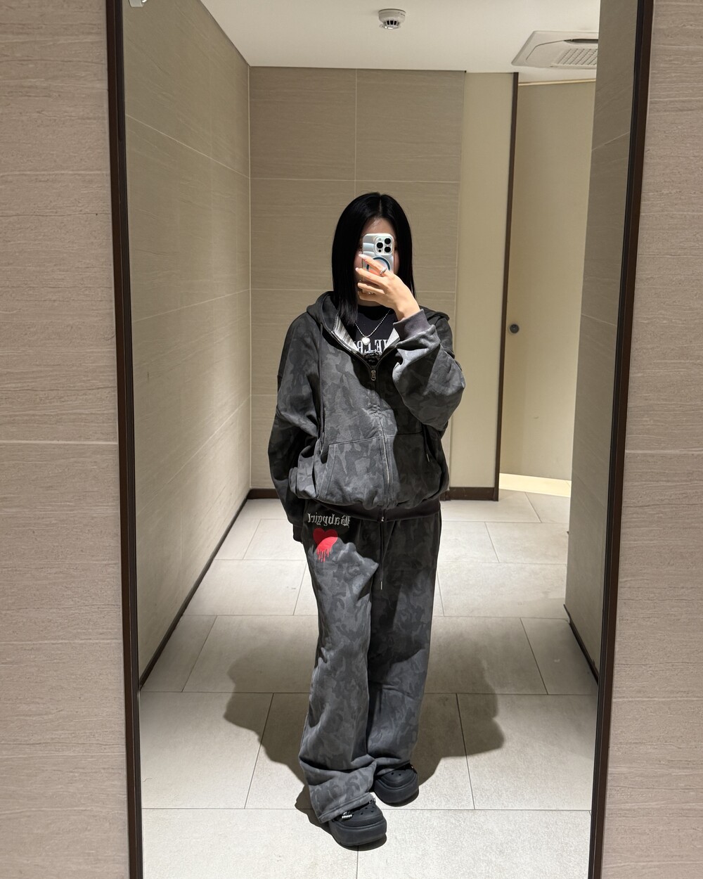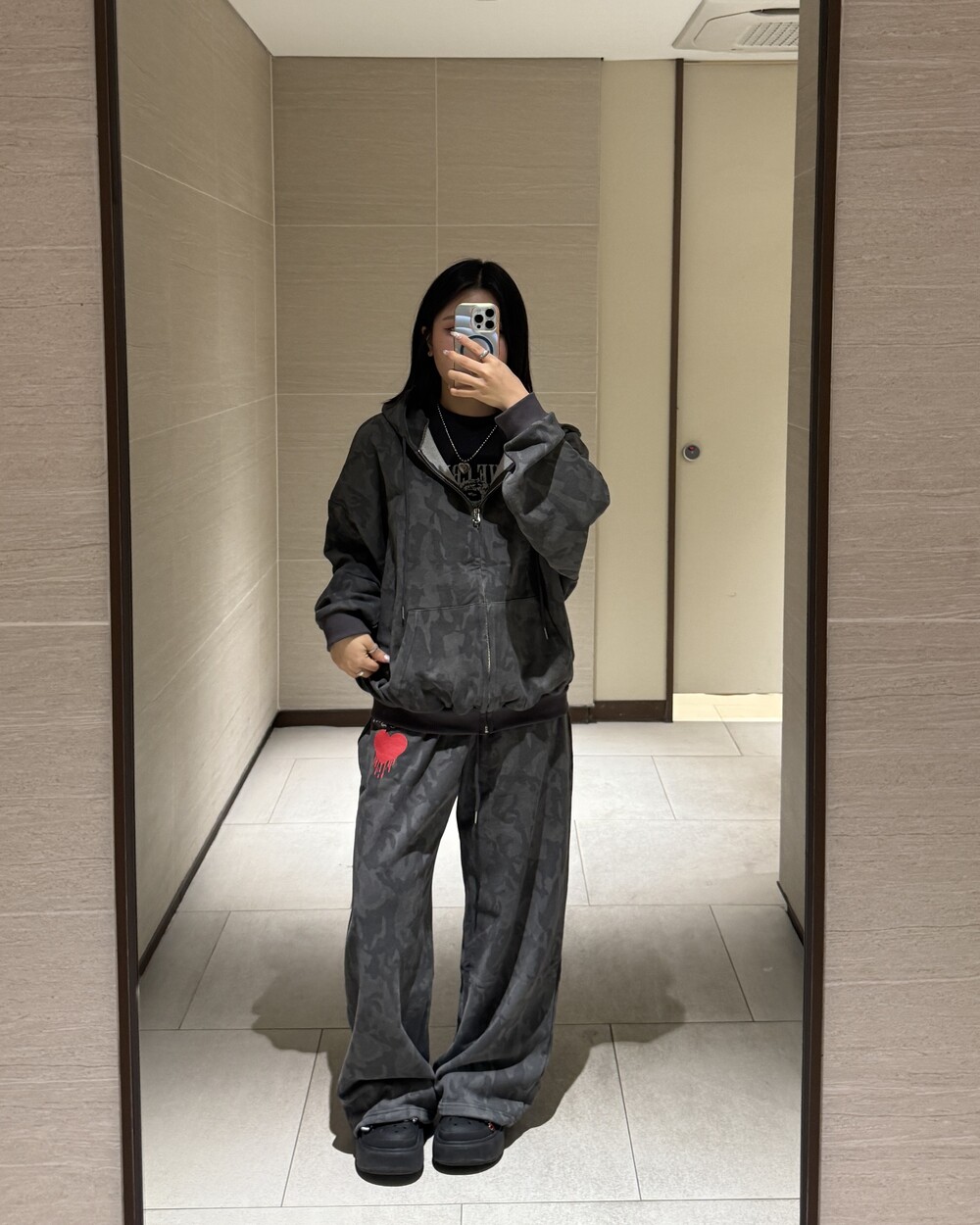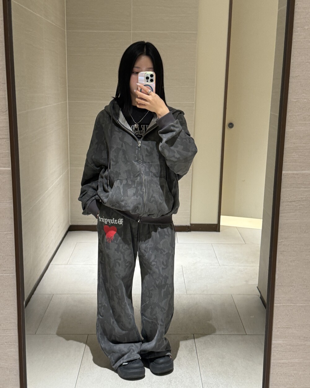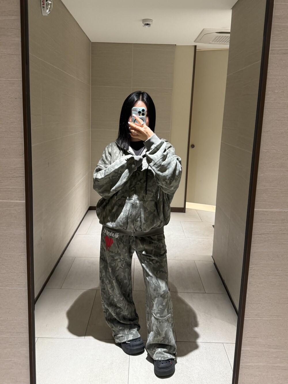 오버핏 카모 후드 집업 & 와이드 팬츠 SET