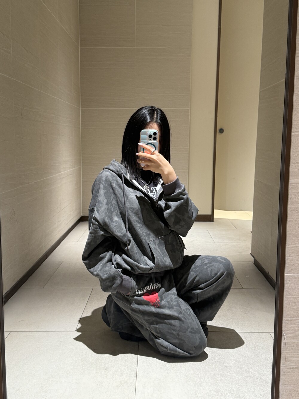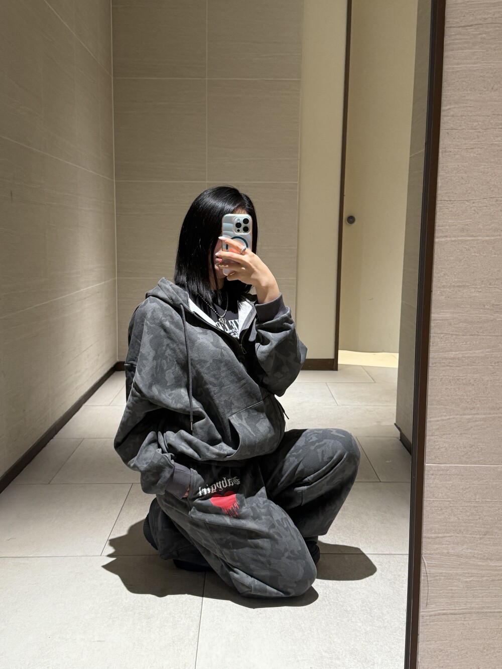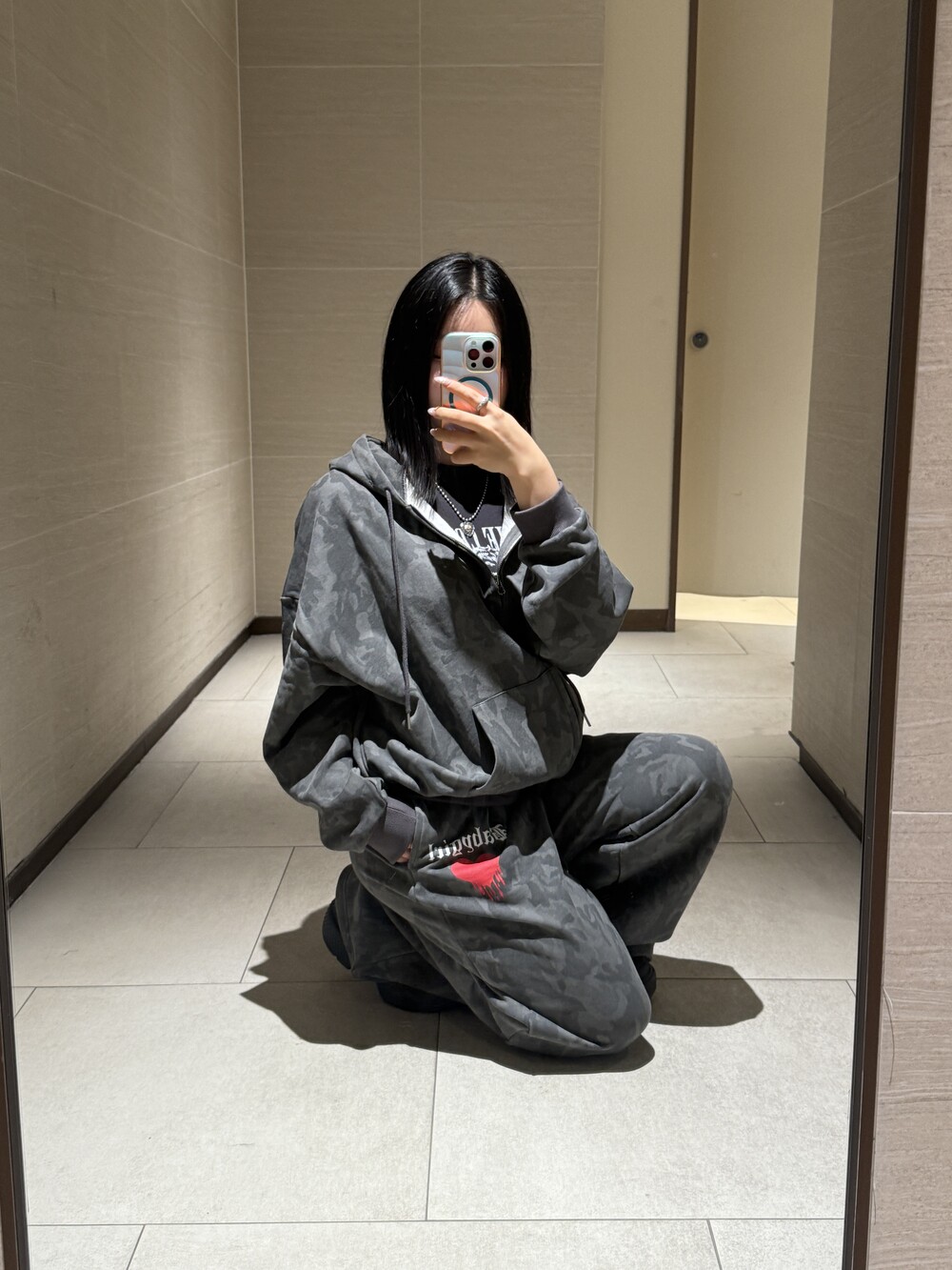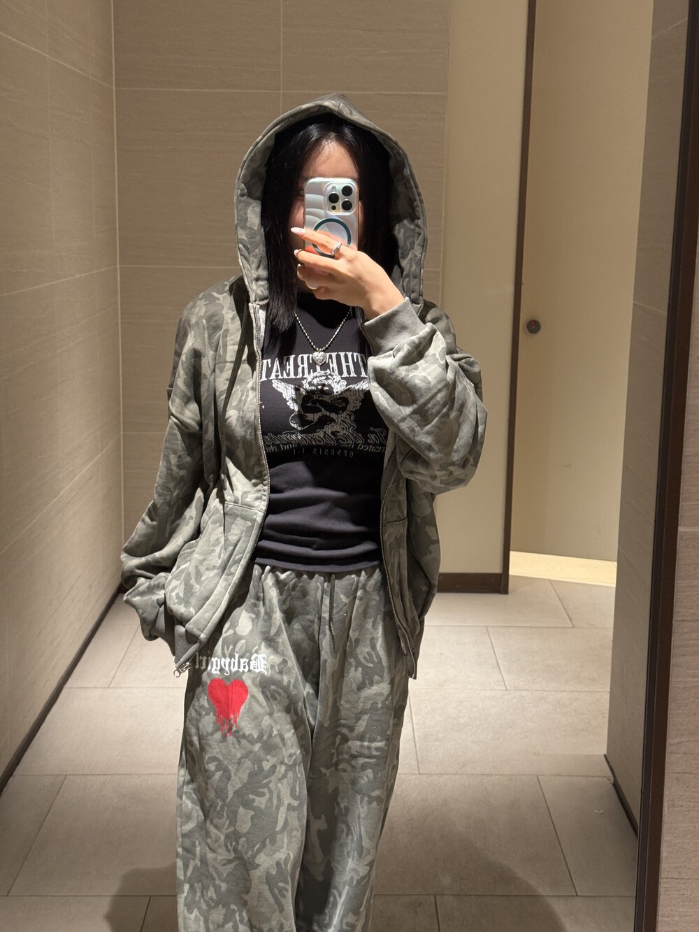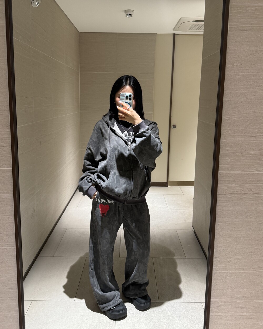오버핏 카모 후드 집업 & 와이드 팬츠 SET