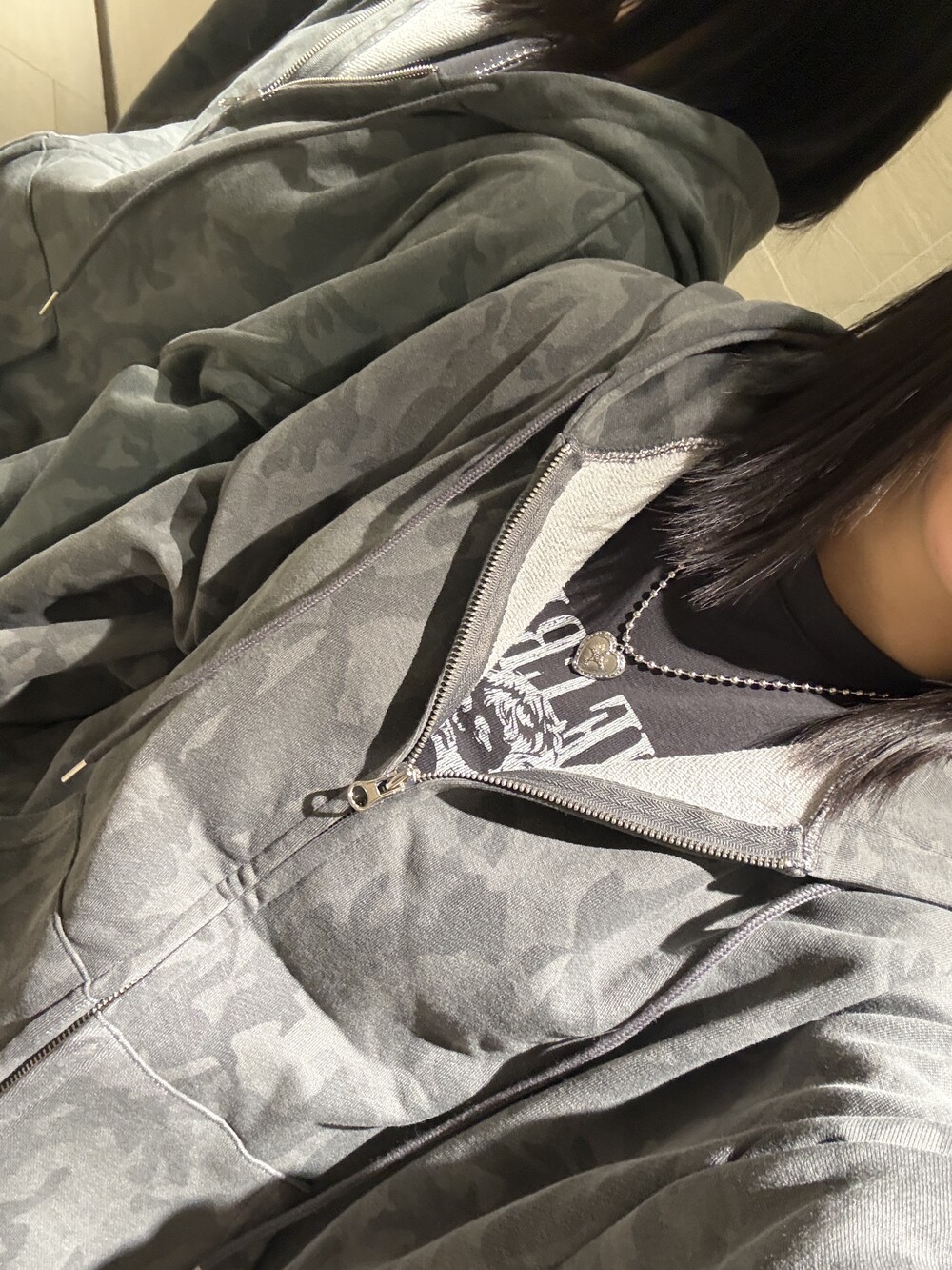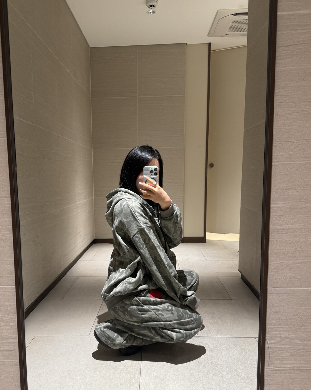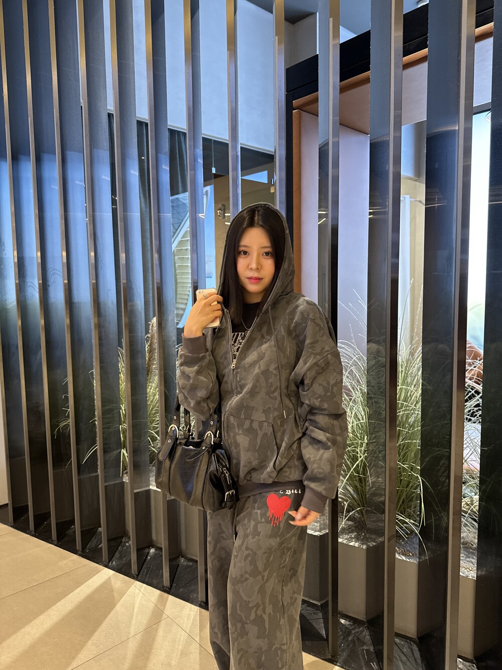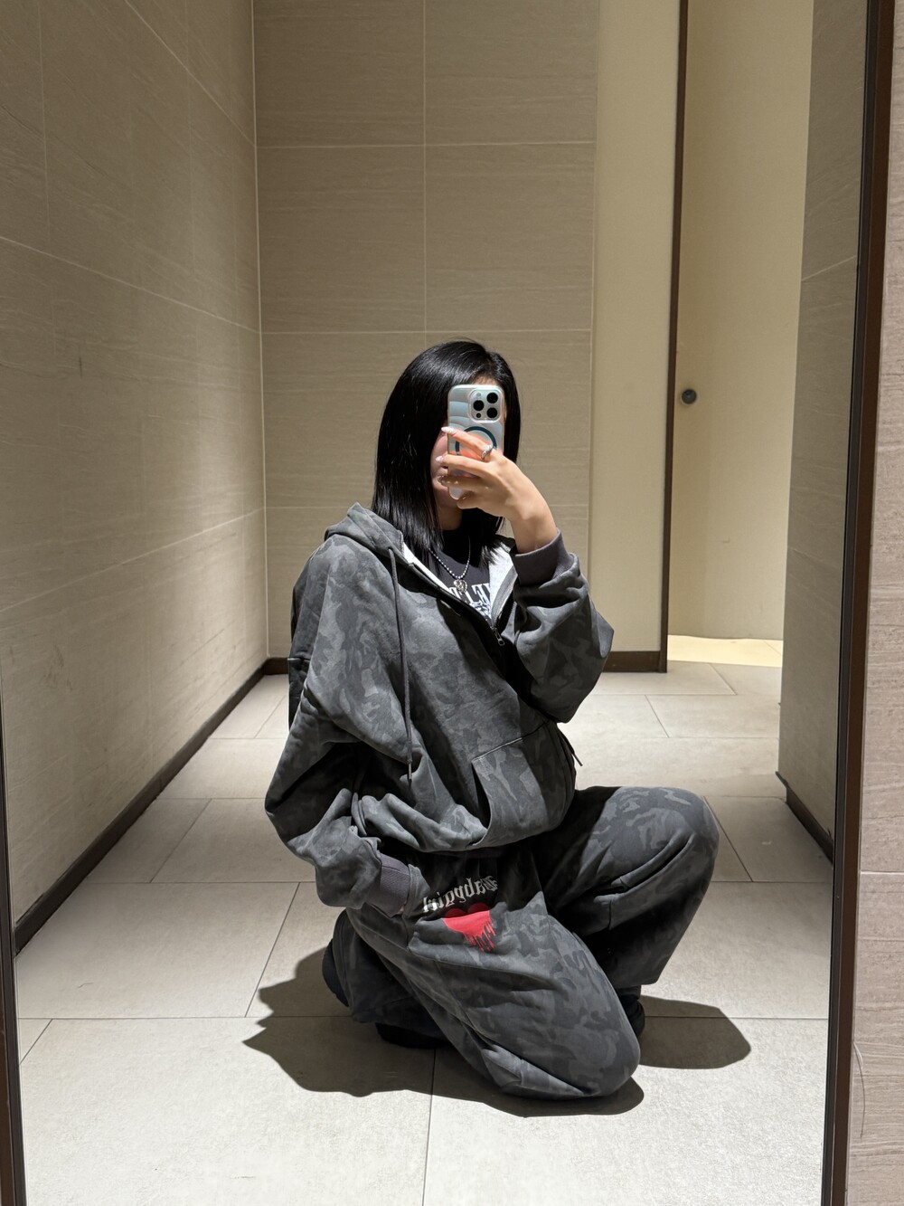 오버핏 카모 후드 집업 & 와이드 팬츠 SET