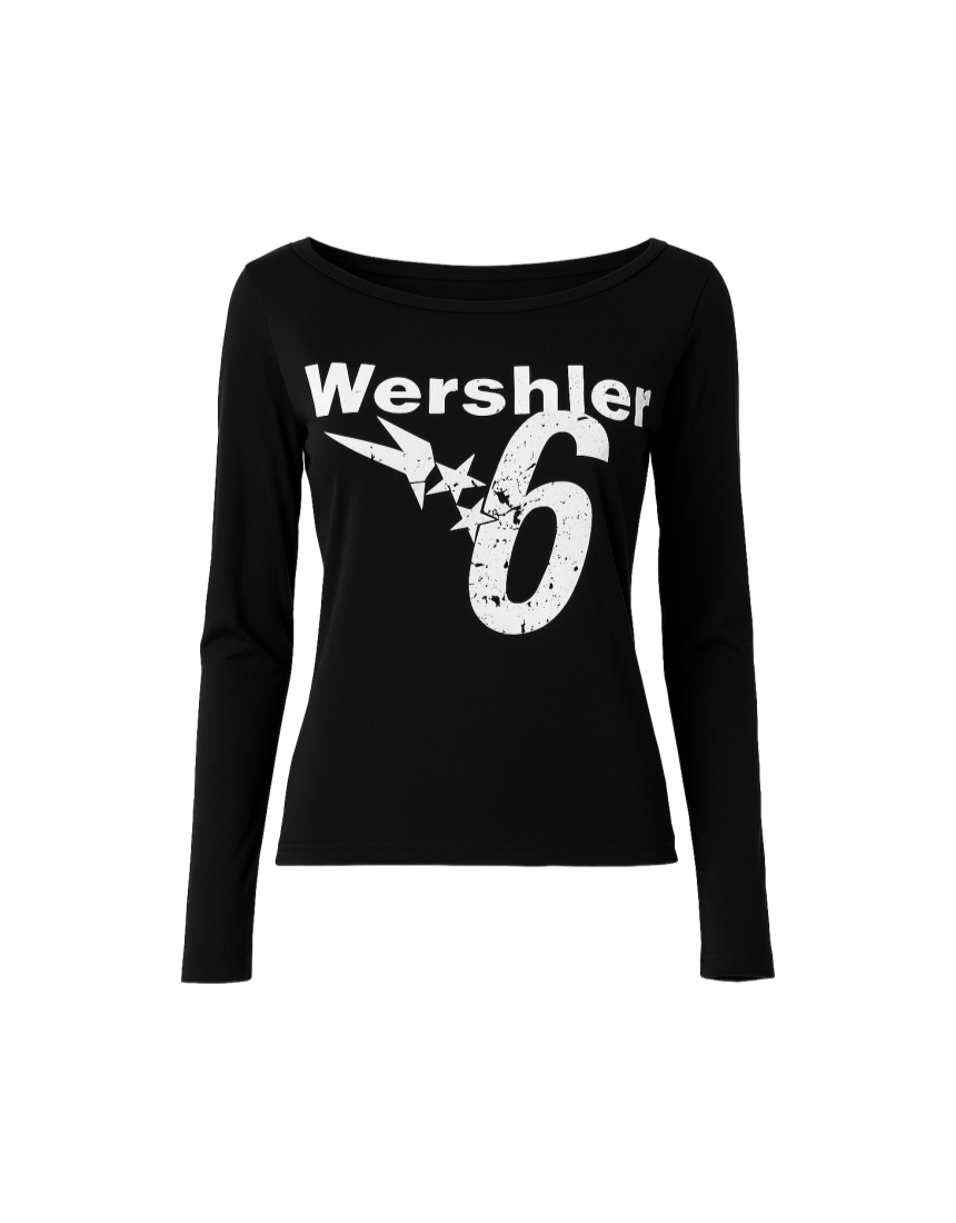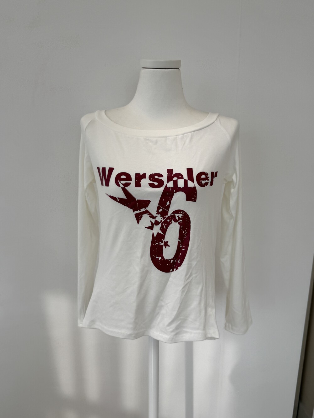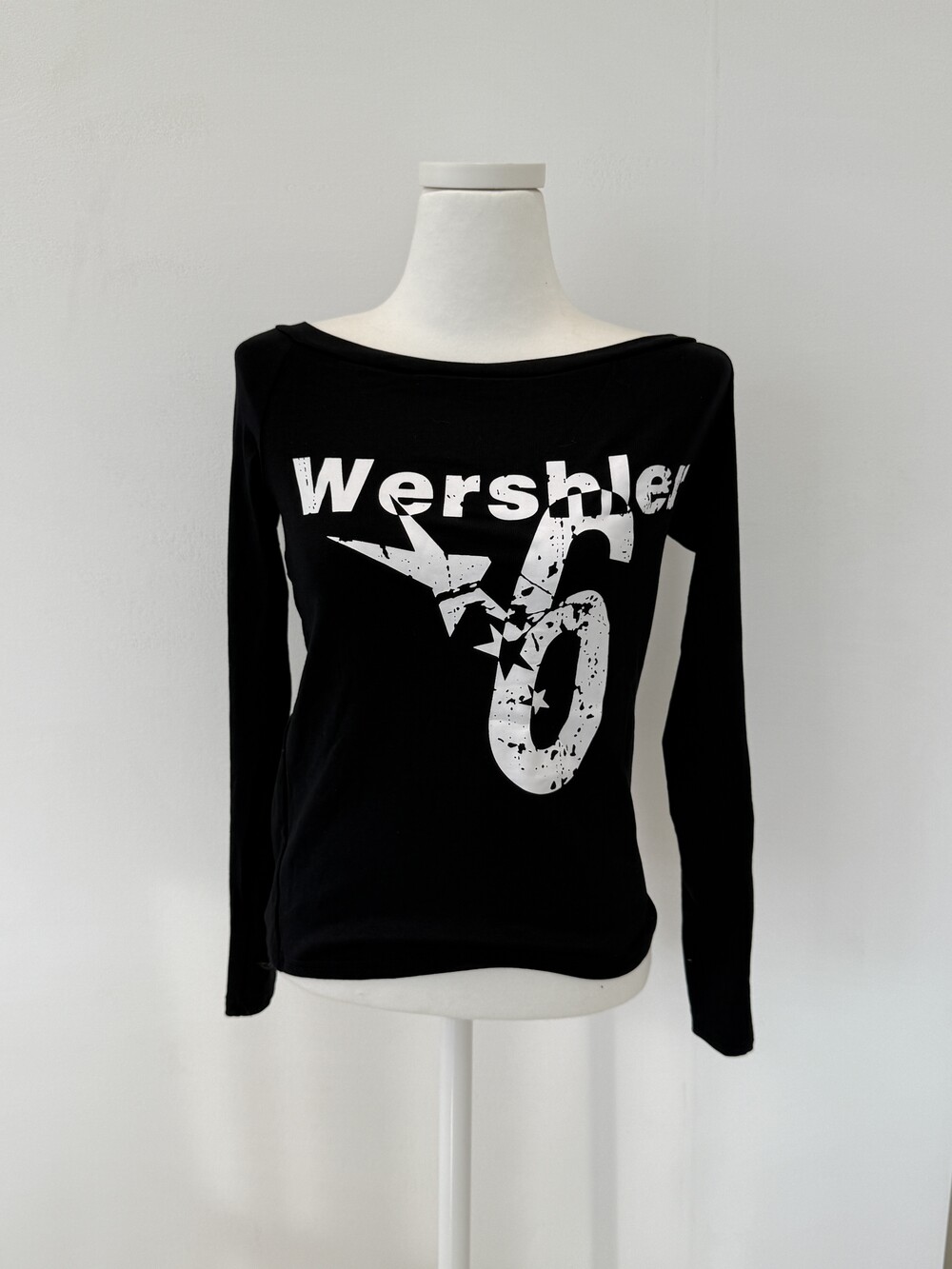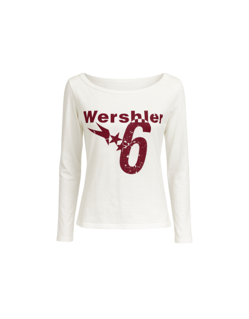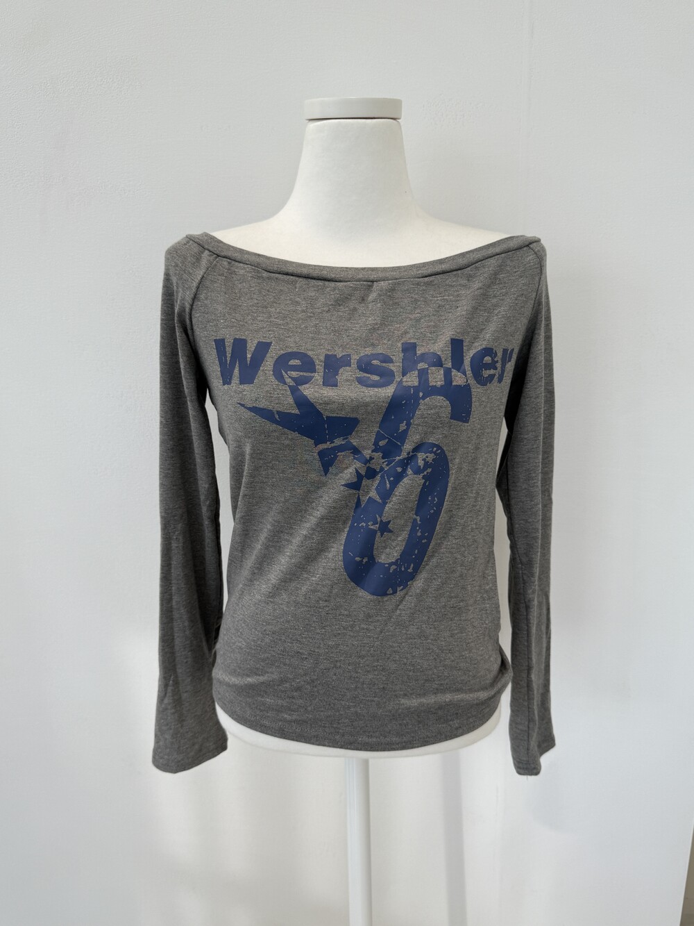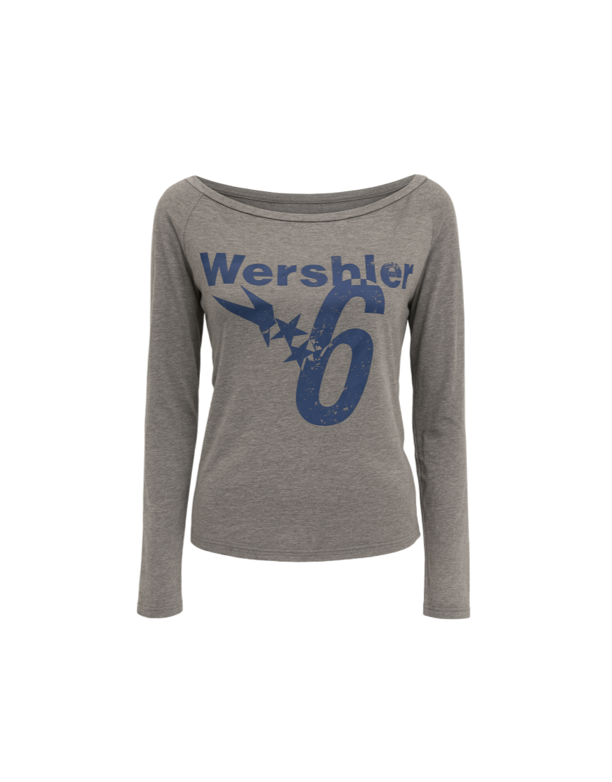 빈티지하면서도 힙한 무드의 오프숄더 티셔츠예요.