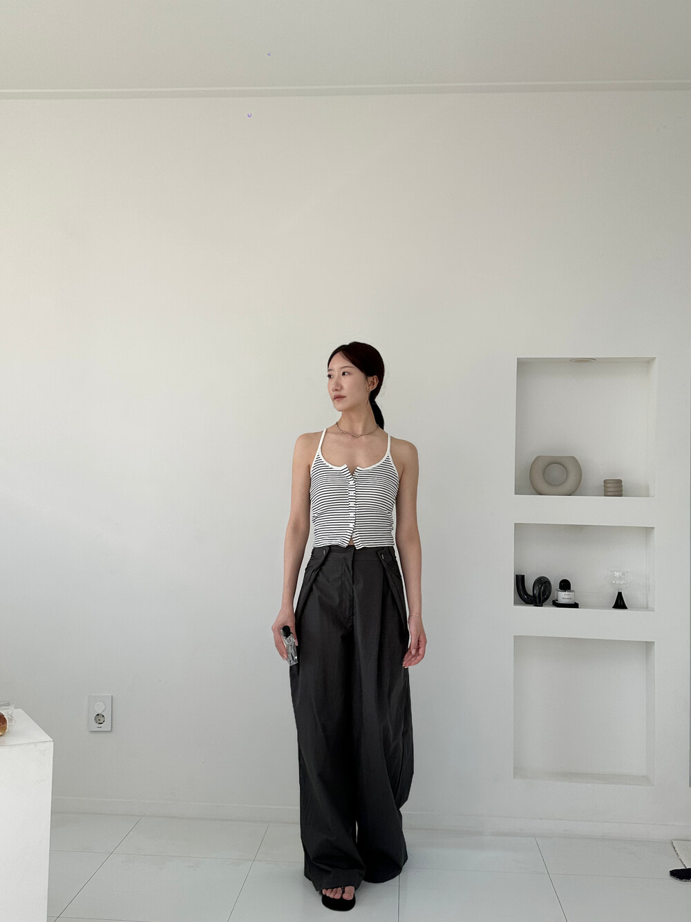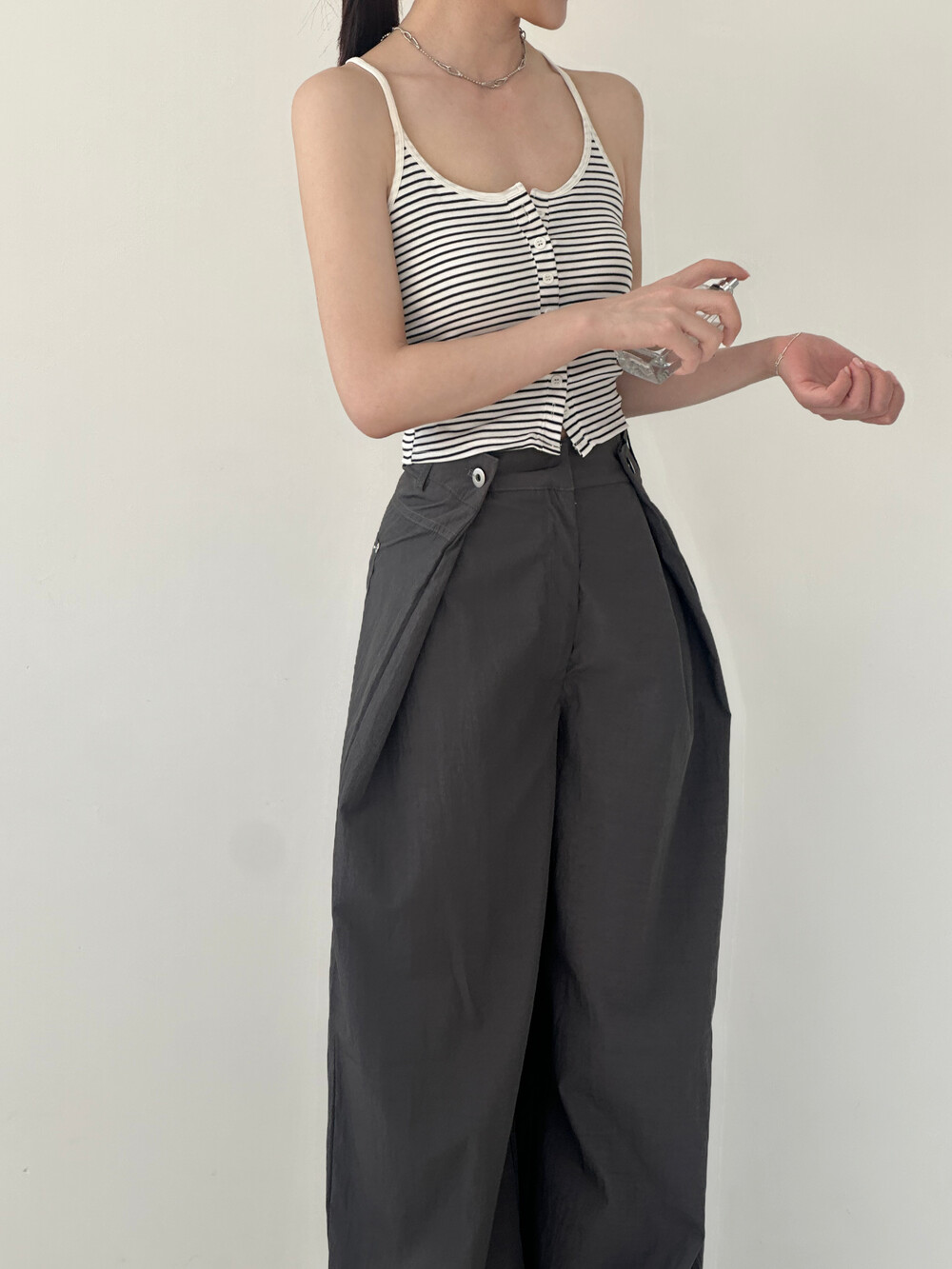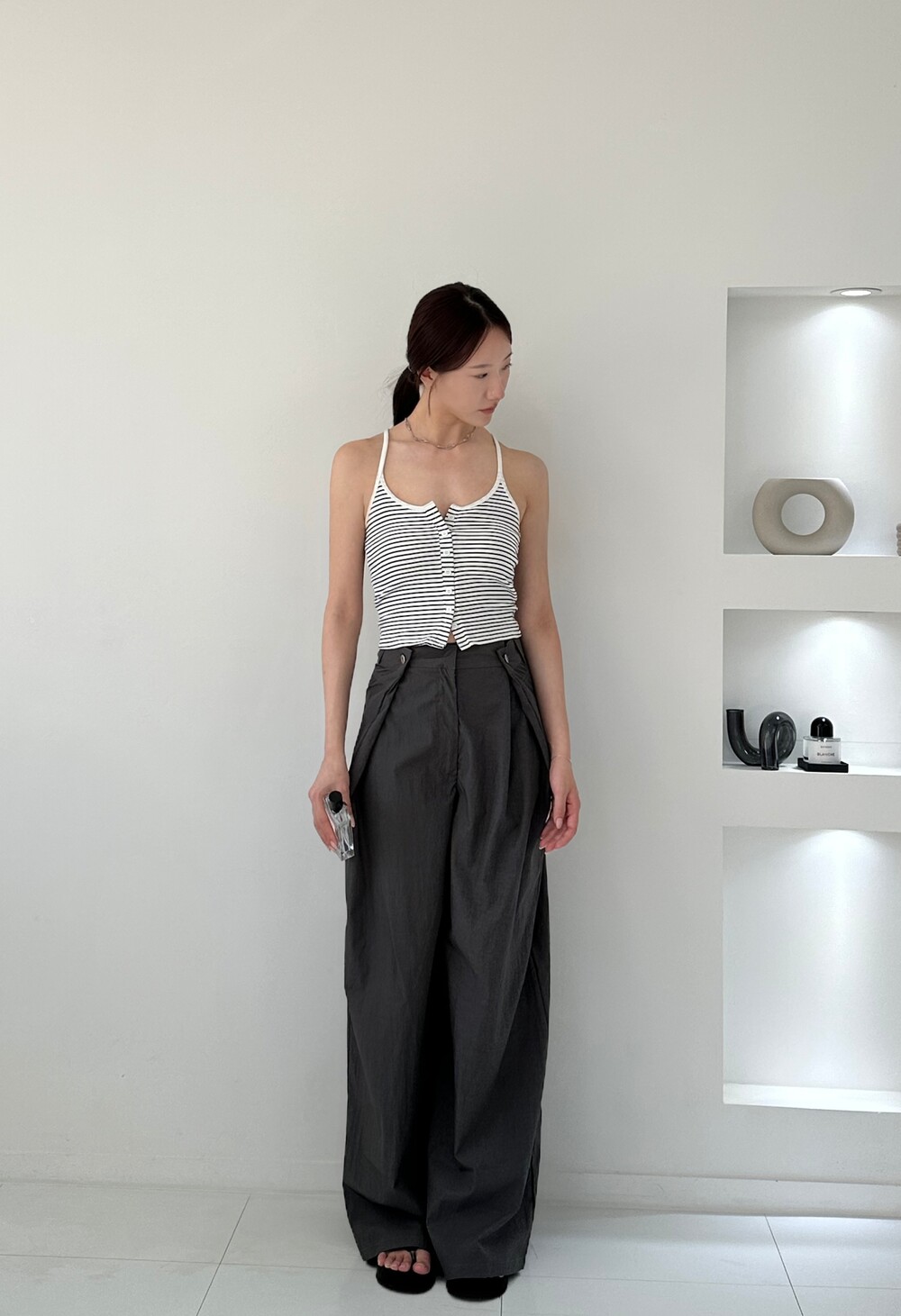 Daily Stripe Button Tank (white)