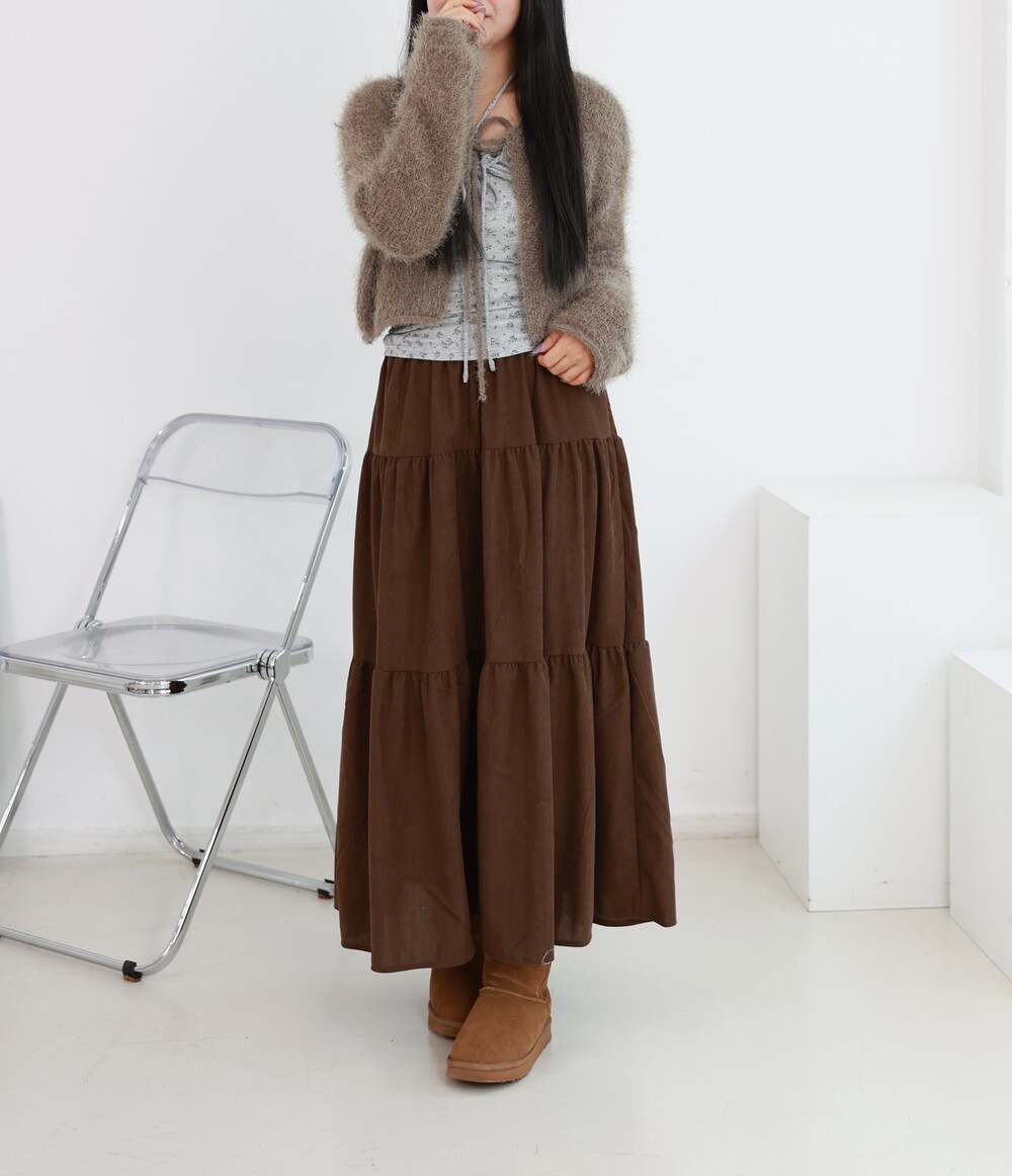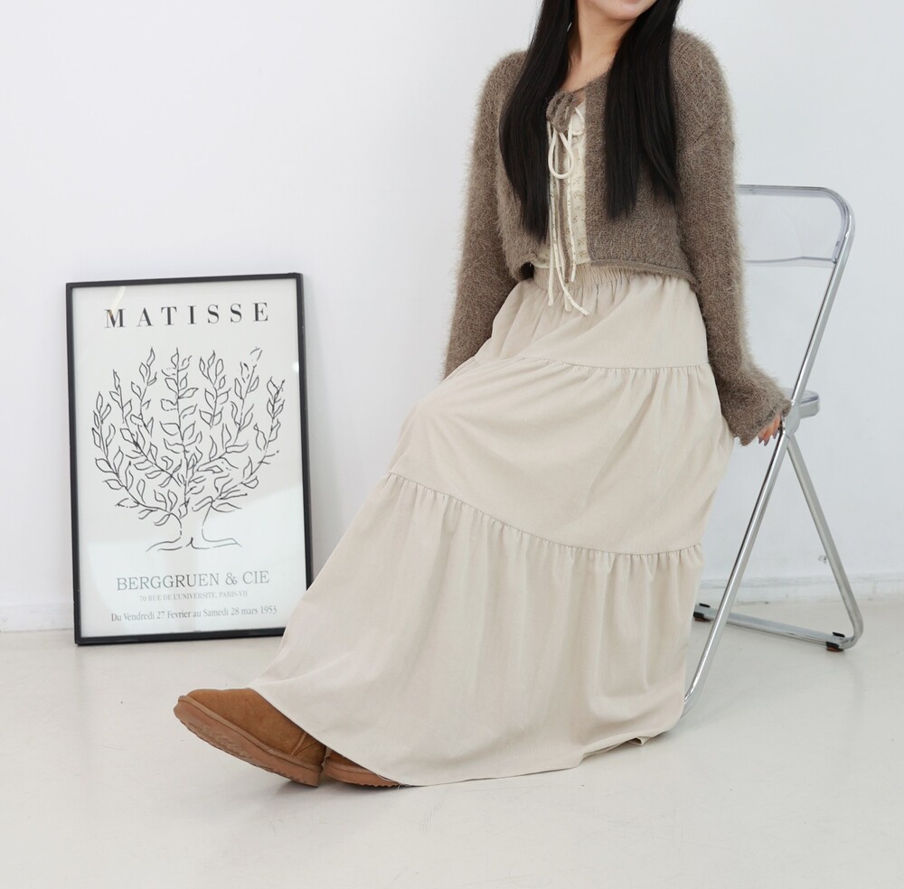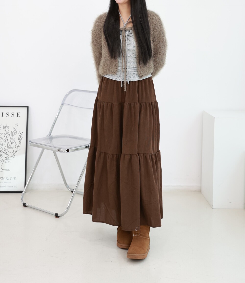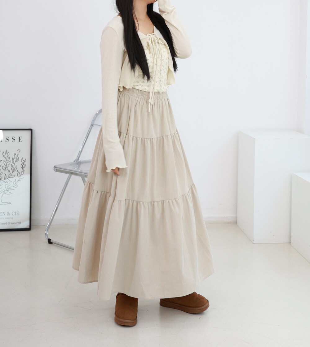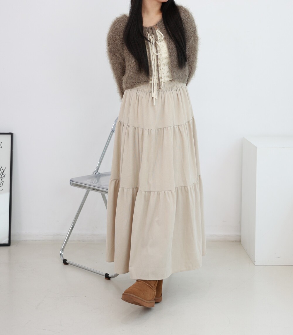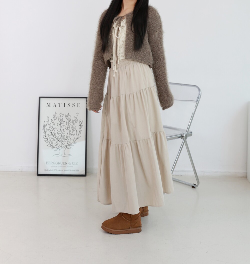 포근한 무드가 그대로 느껴지는 3단 캉캉 스커트예요.