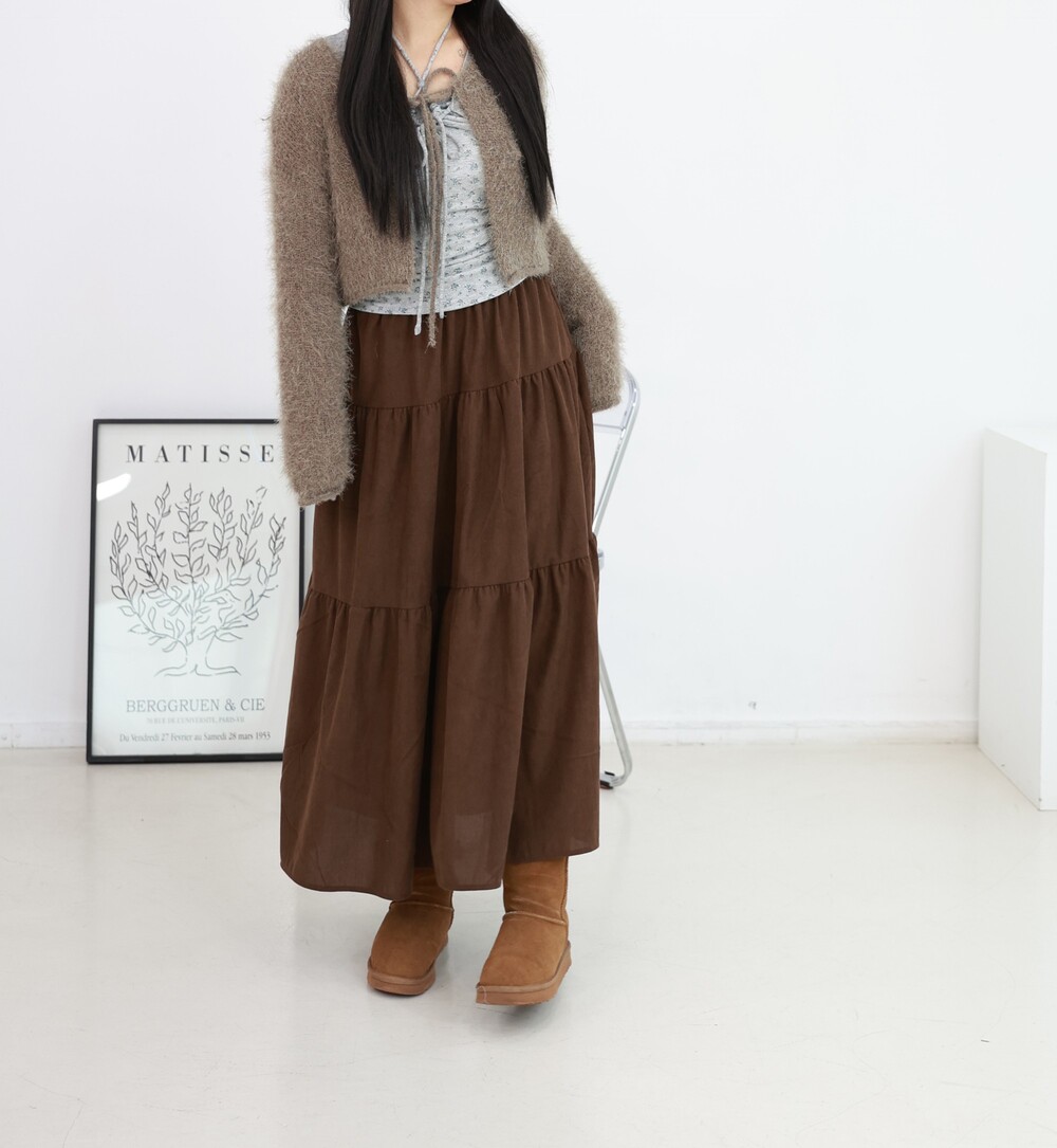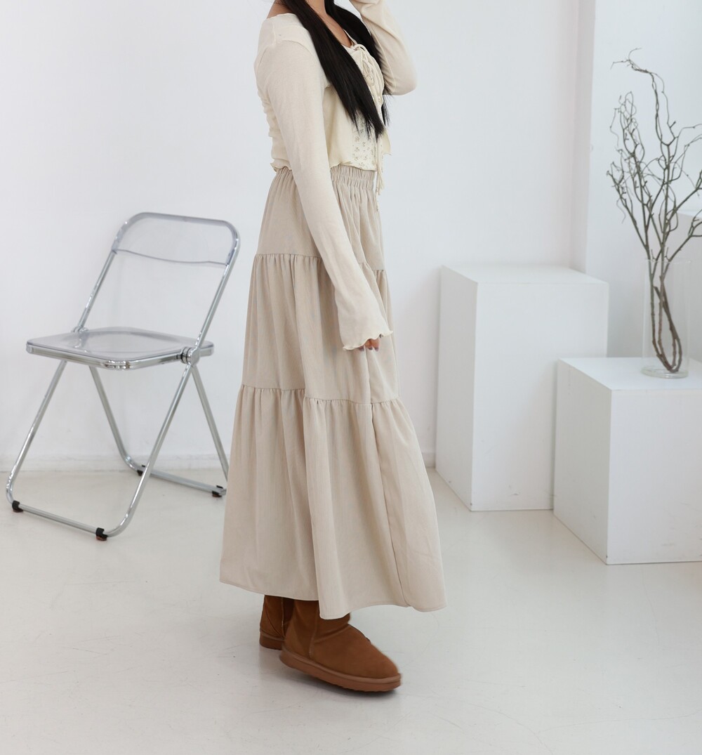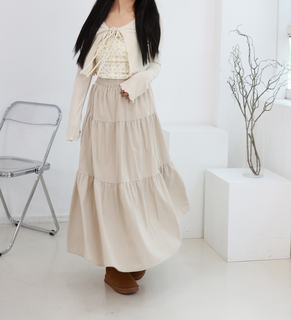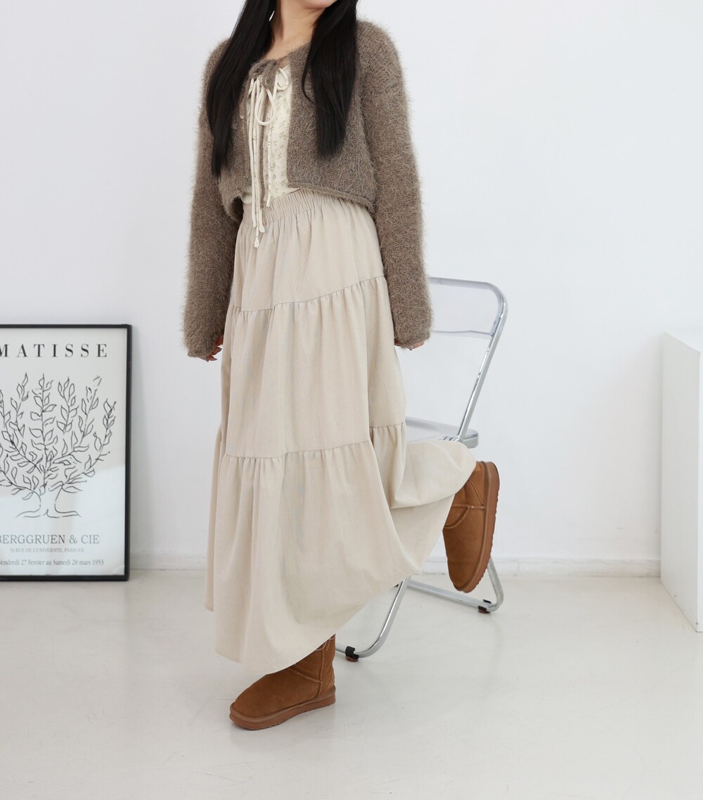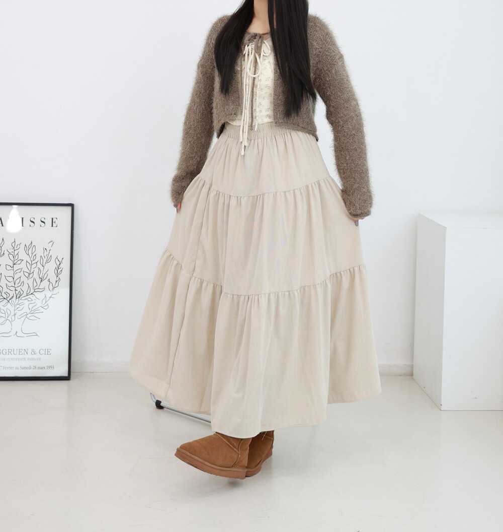 포근한 무드가 그대로 느껴지는 3단 캉캉 스커트예요.