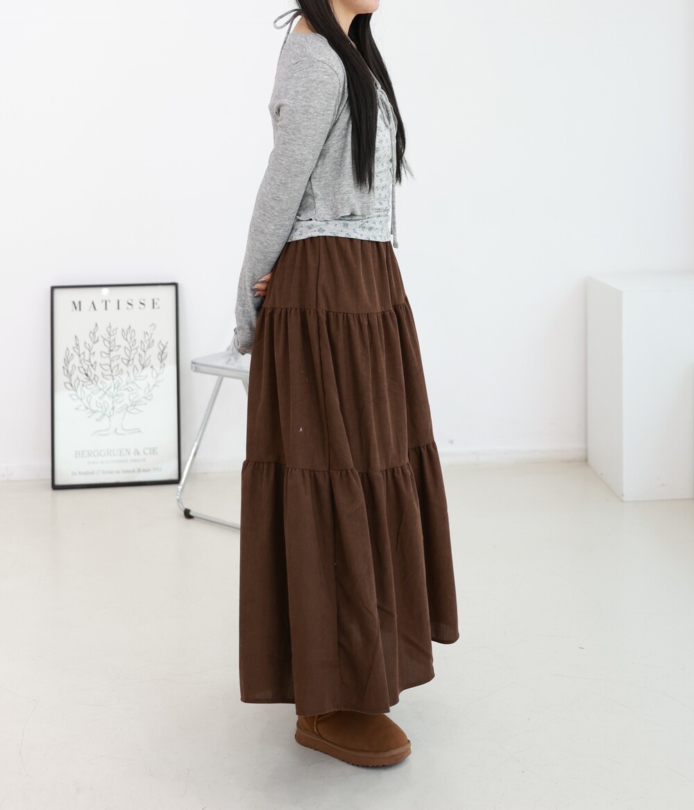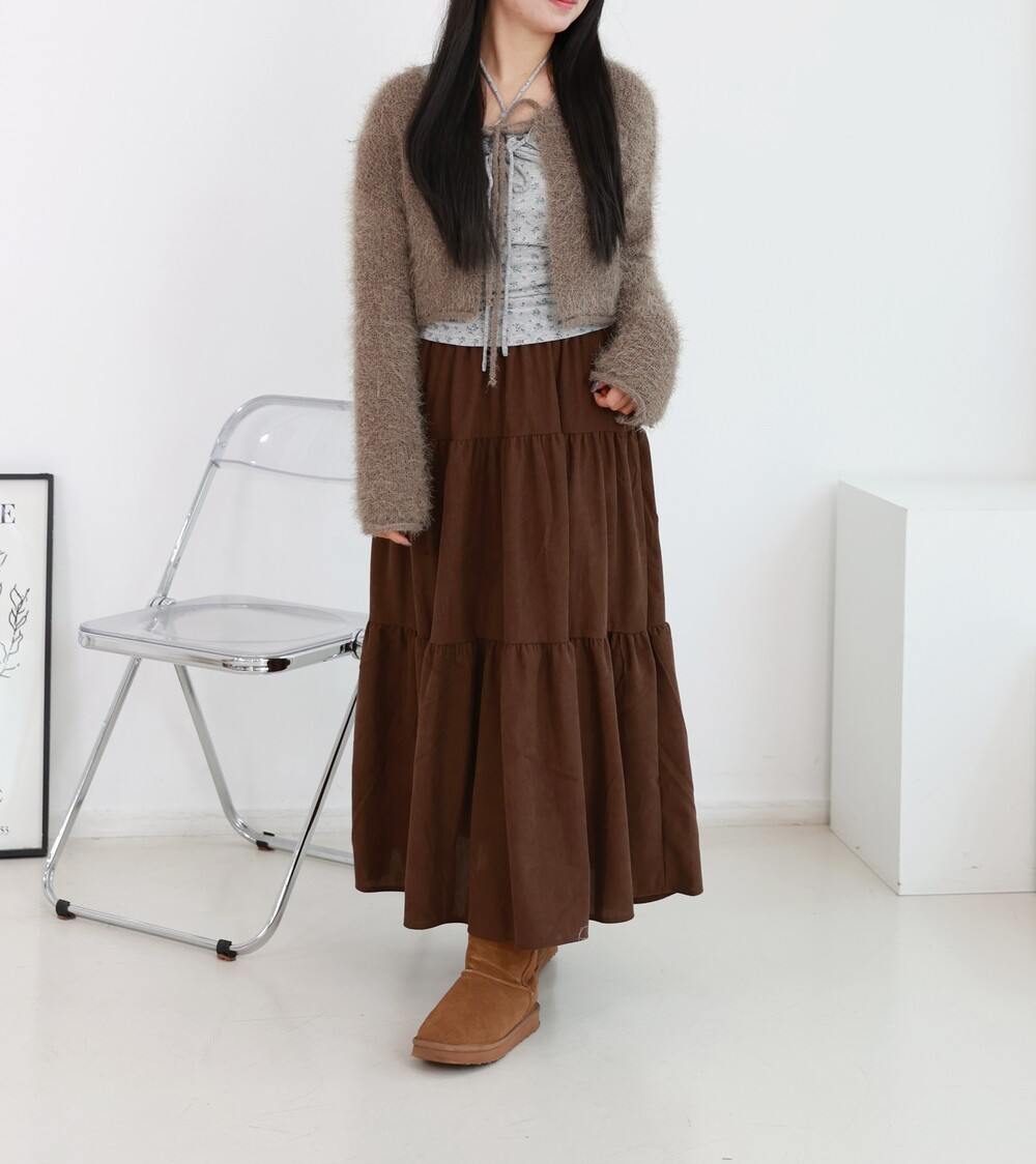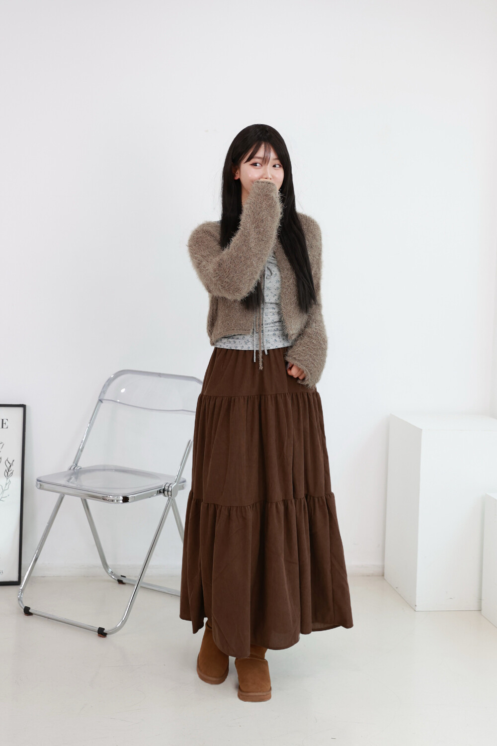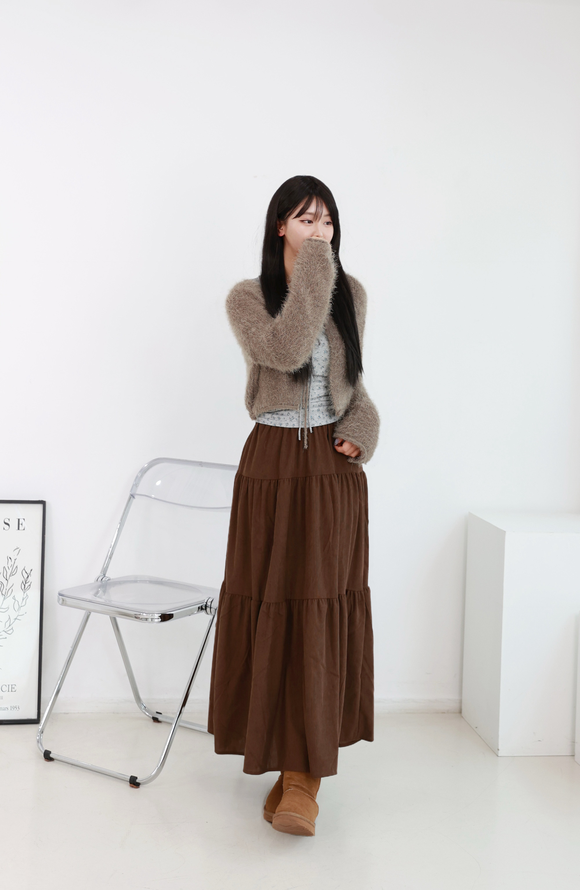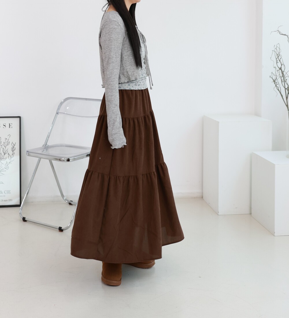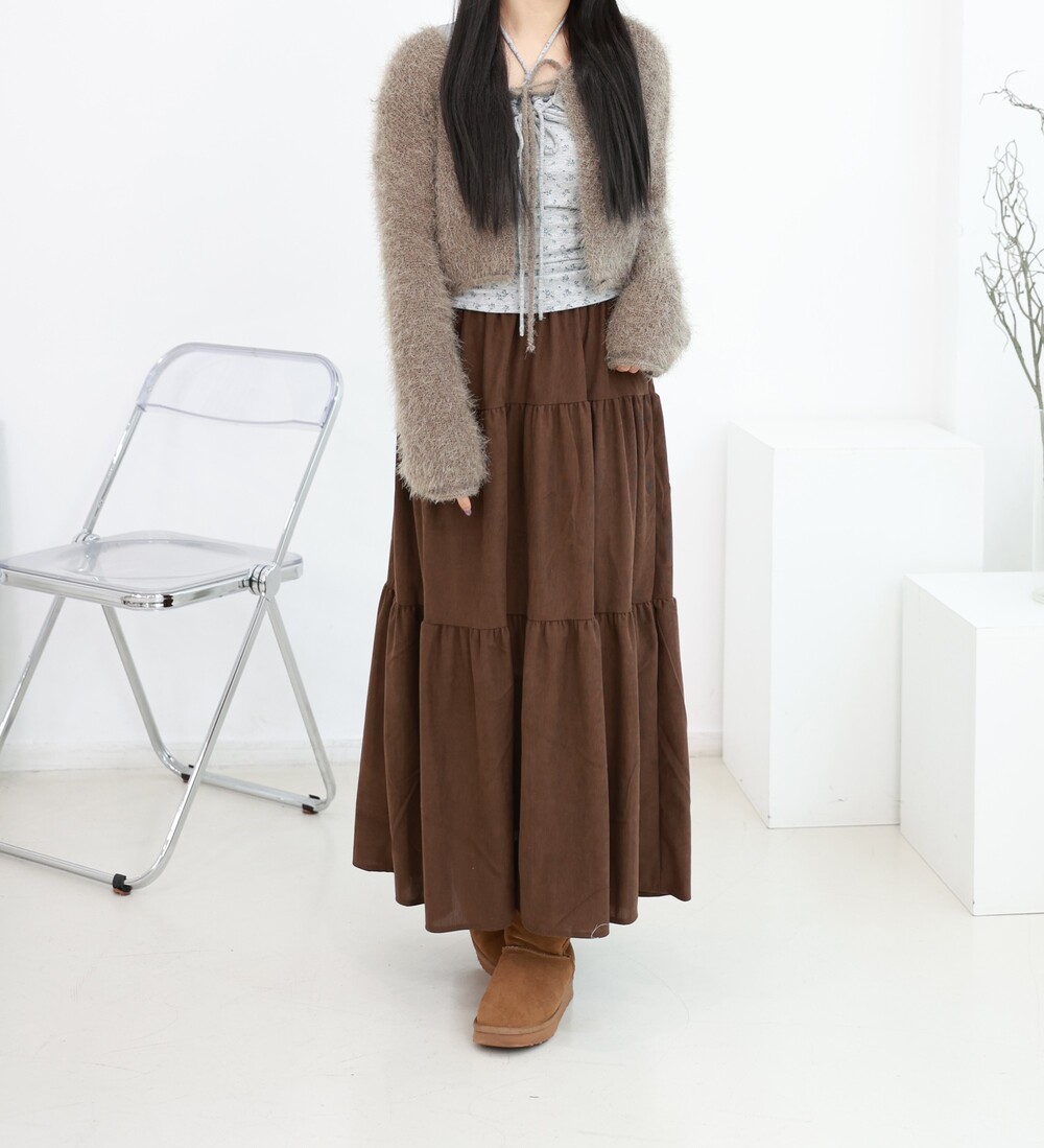 포근한 무드가 그대로 느껴지는 3단 캉캉 스커트예요.