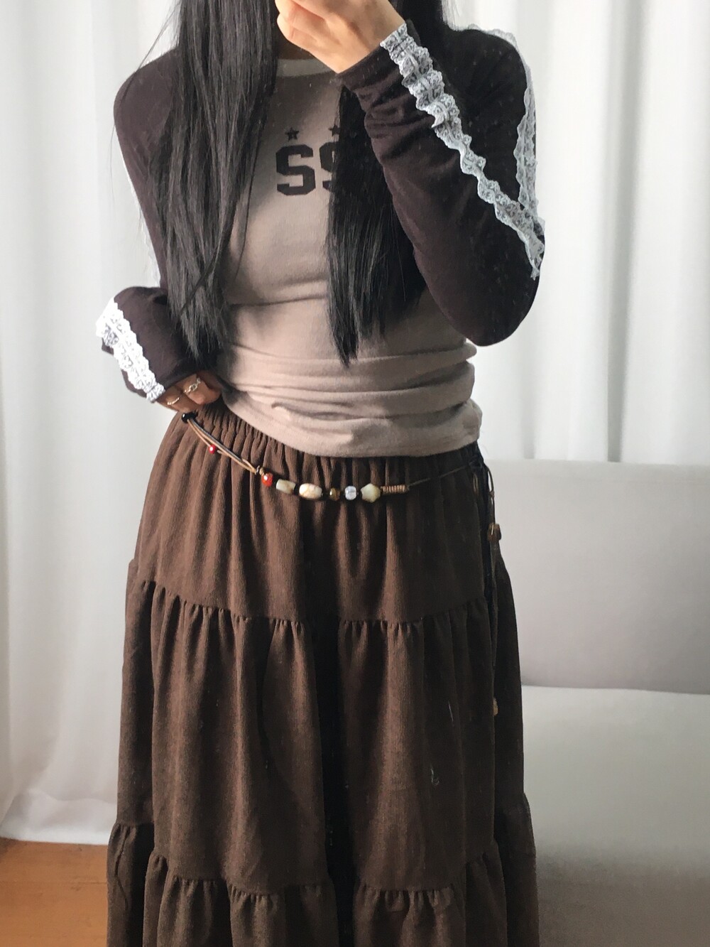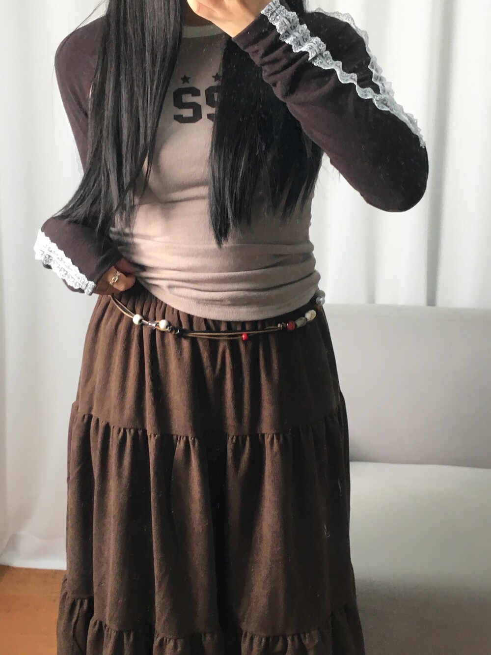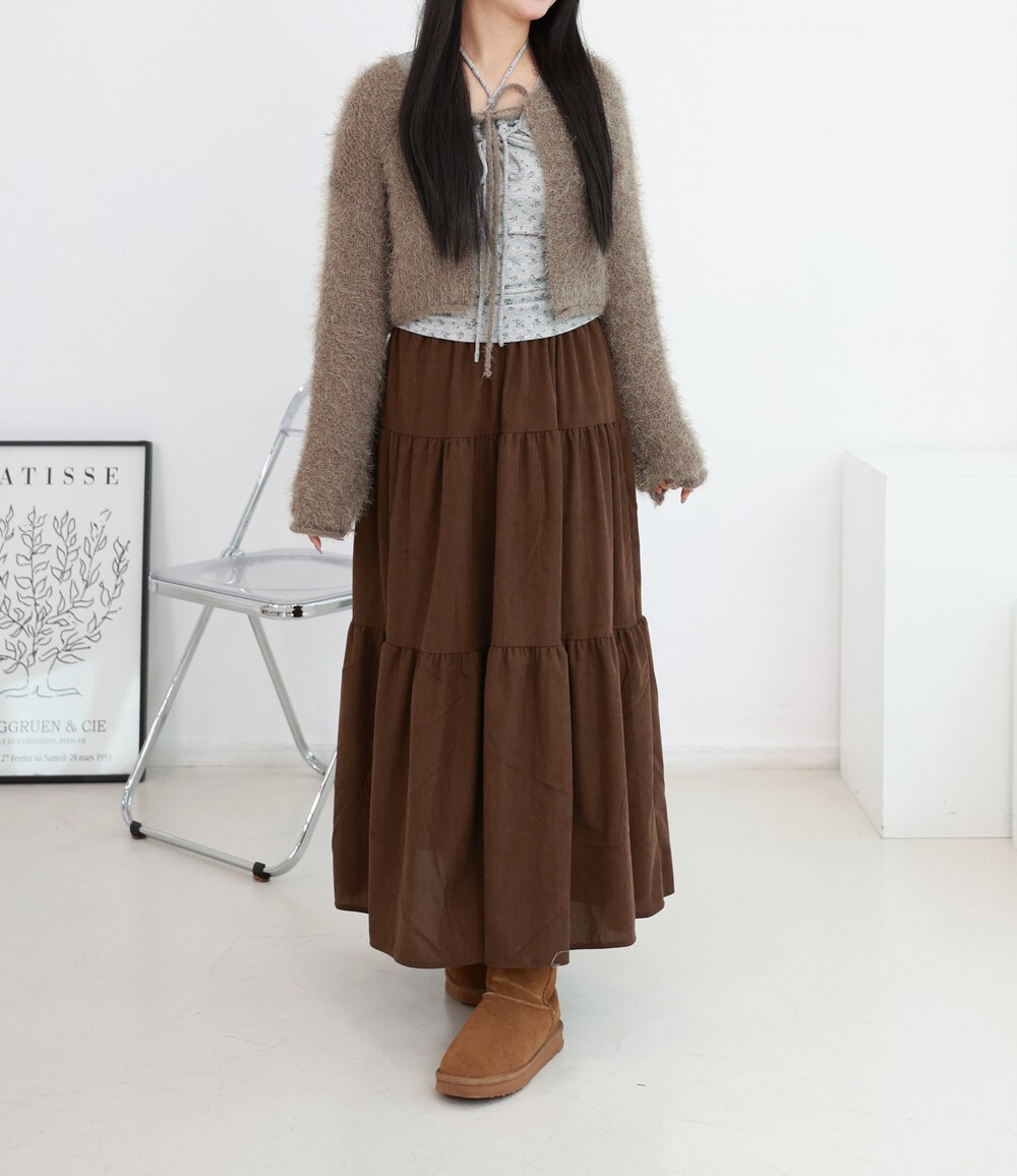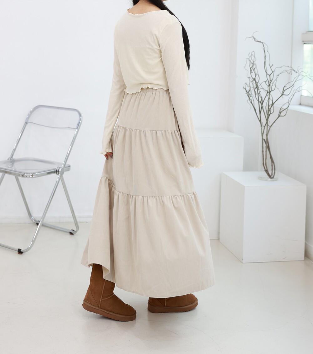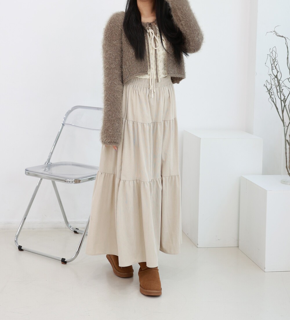 포근한 무드가 그대로 느껴지는 3단 캉캉 스커트예요.