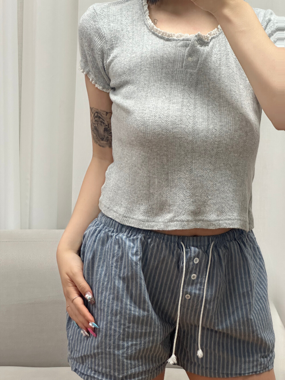 네크라인에 들어간 하트 버튼 디테일이 귀여움을 톡톡히 더해준답니다.