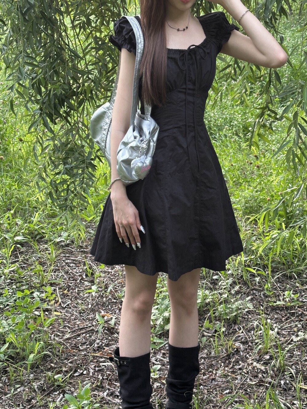 Ribbon Puff Dress (black)