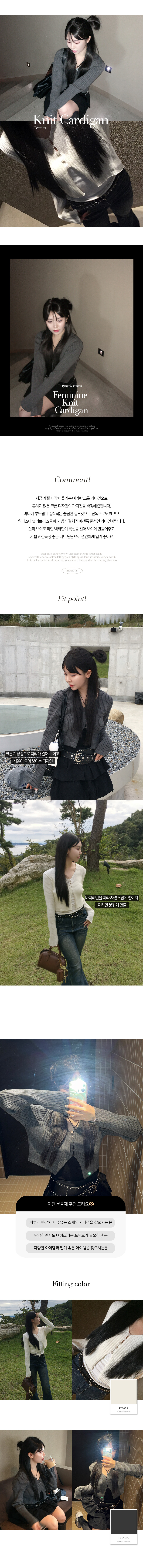 원피스나 슬리브리스 위에 가볍게 걸치면 에겐룩 완성인 가디건이랍니다.