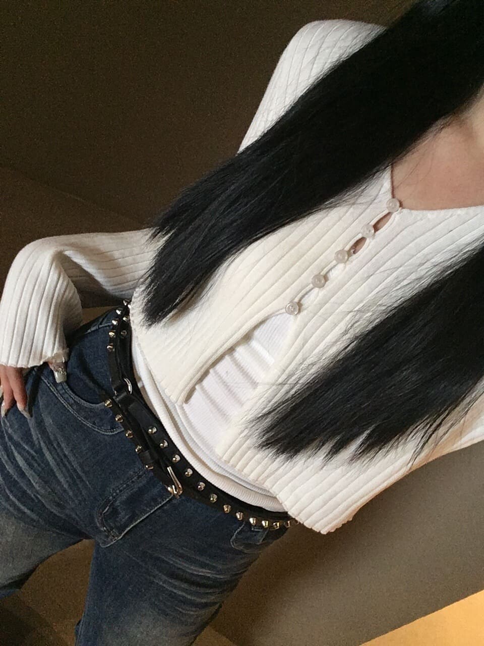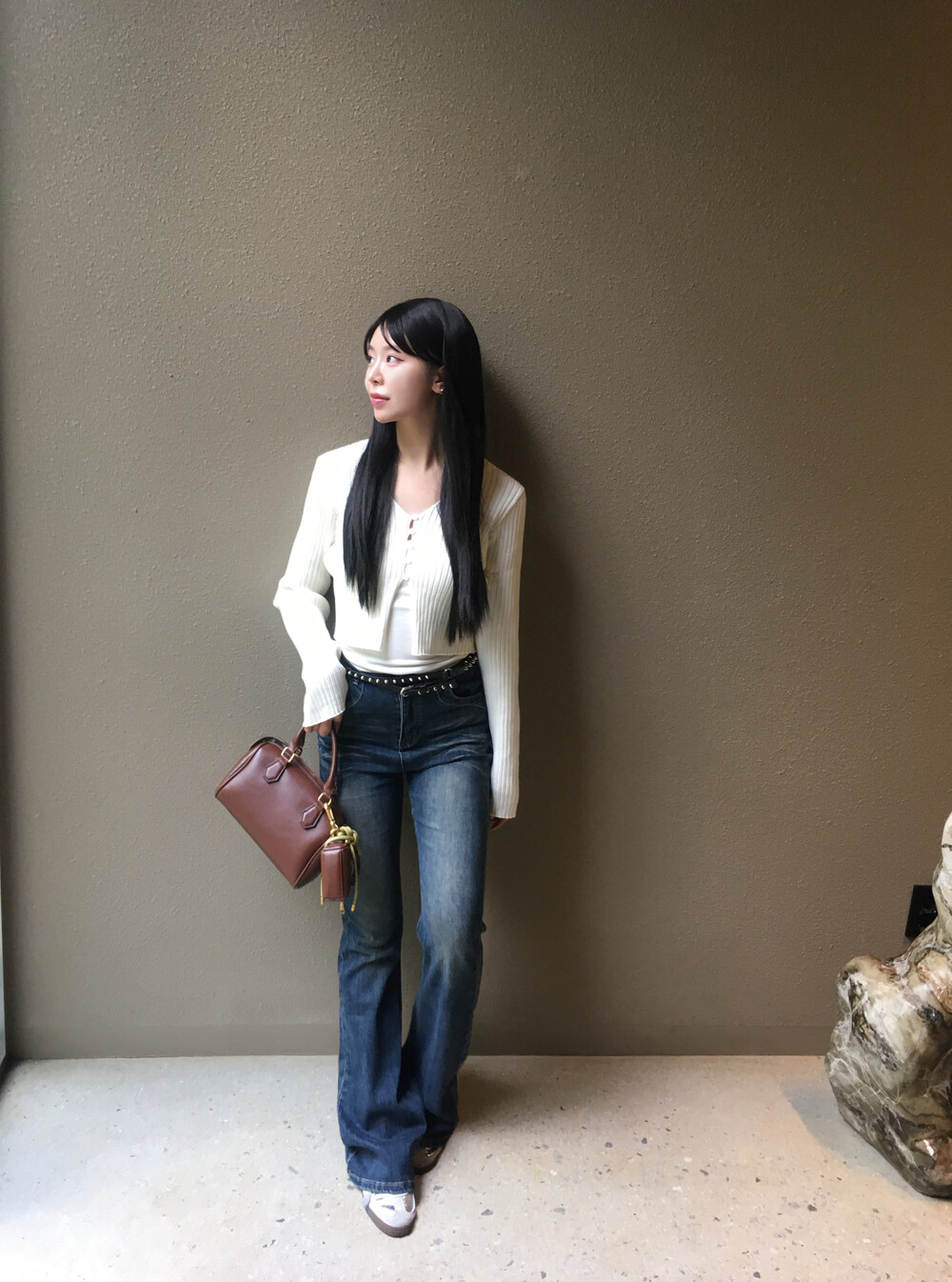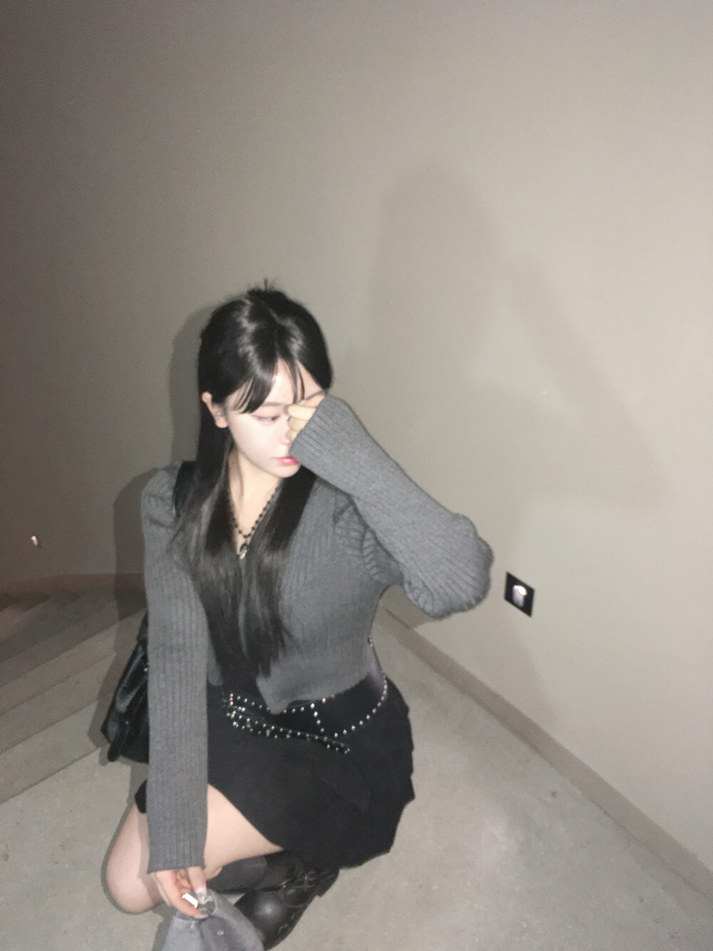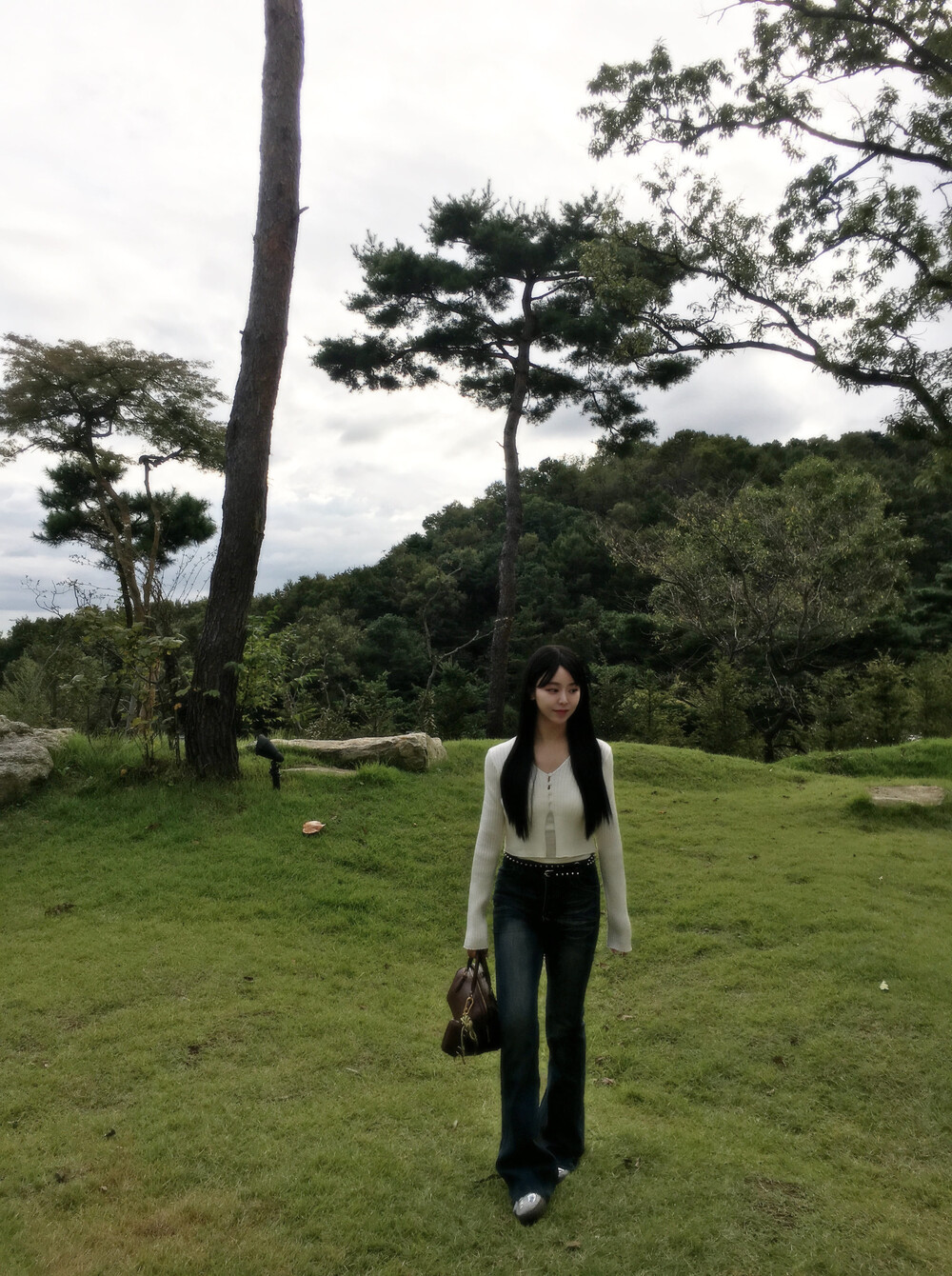 살짝 브이로 파인 넥라인이 목선을 길어 보이게 만들어주고