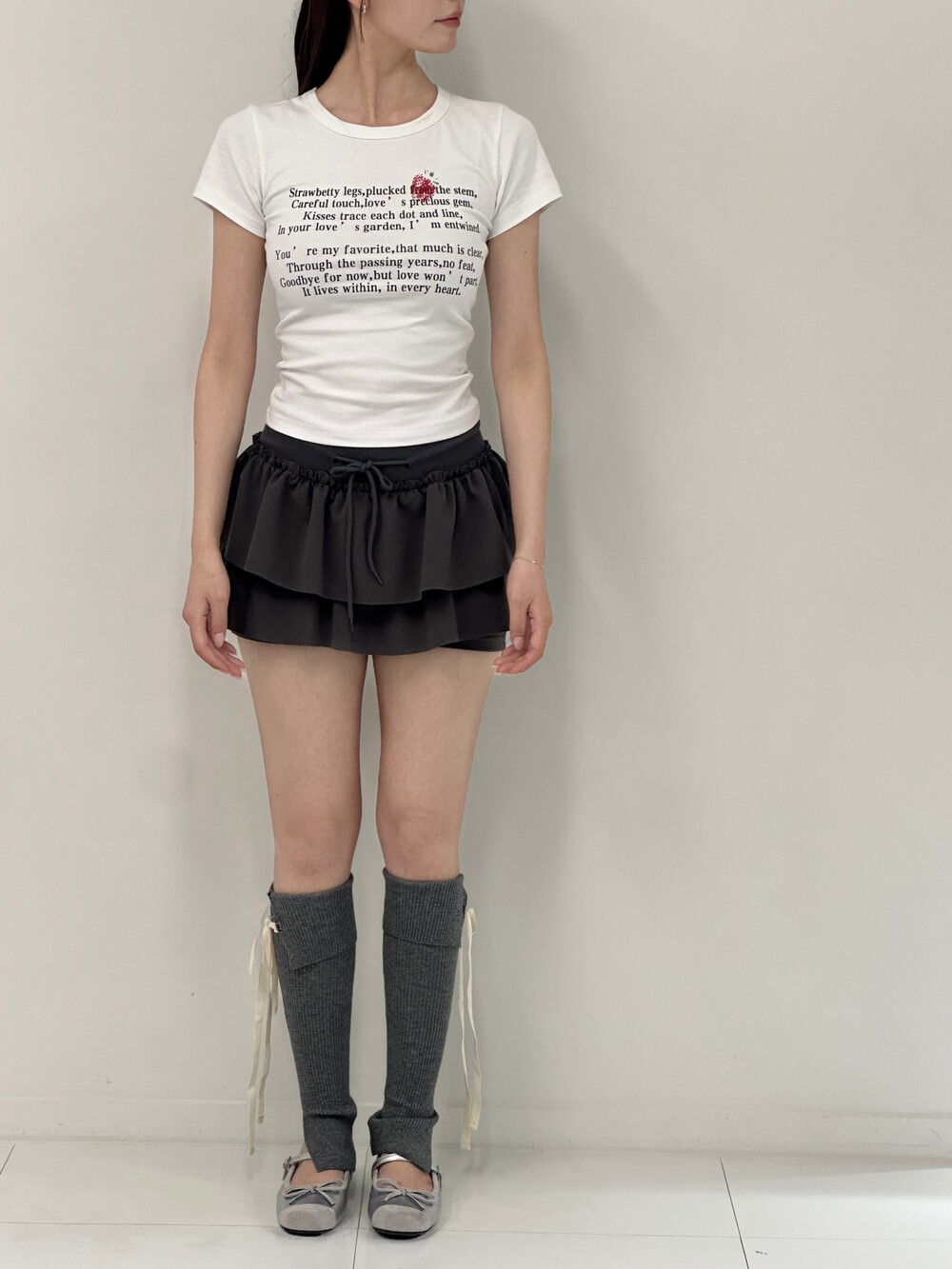 풍성하게 떨어지는 프릴 레이어가 러블리한 무드를 더해주는 스커트 팬츠예요.