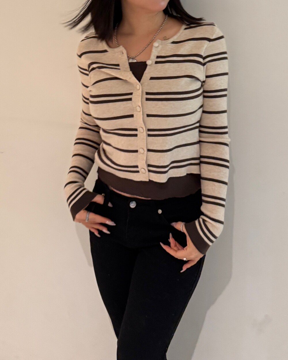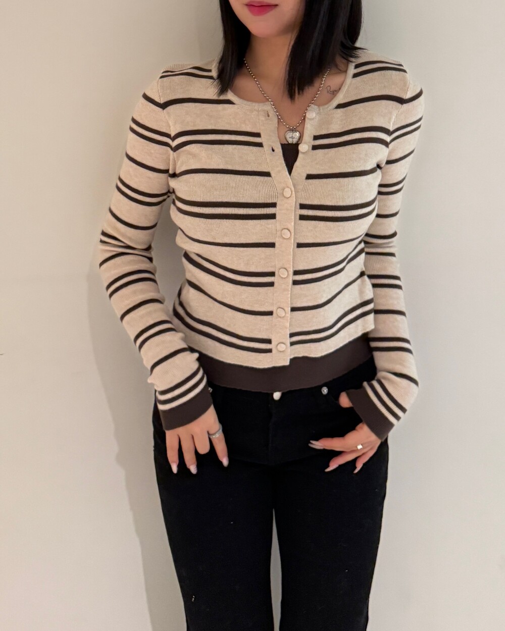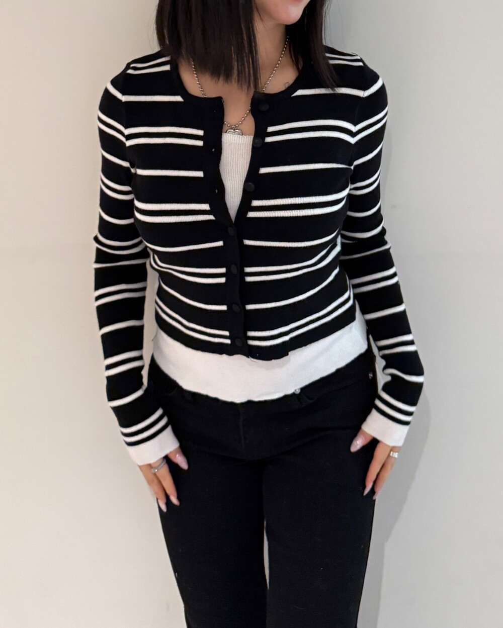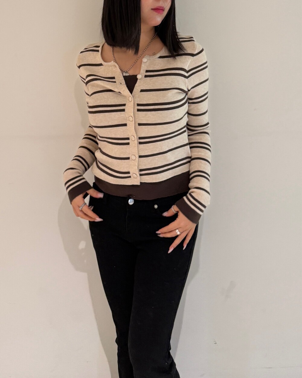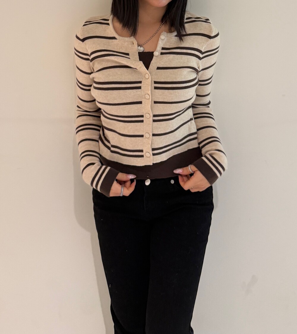 • 슬림한 실루엣의 배색 스트라이프 가디건