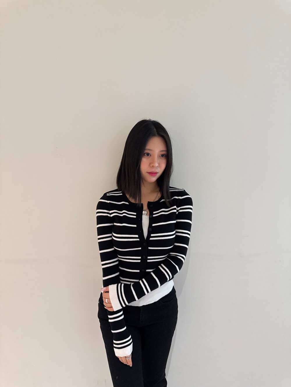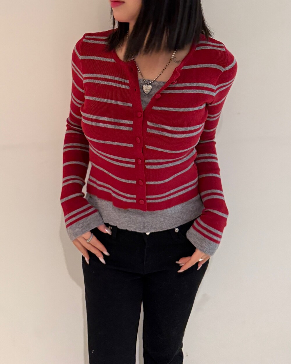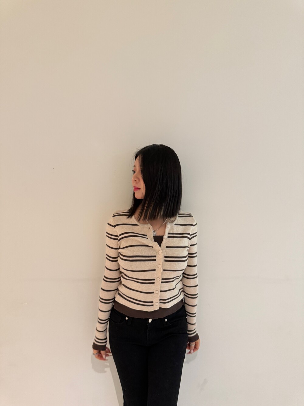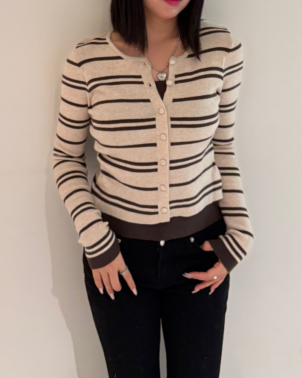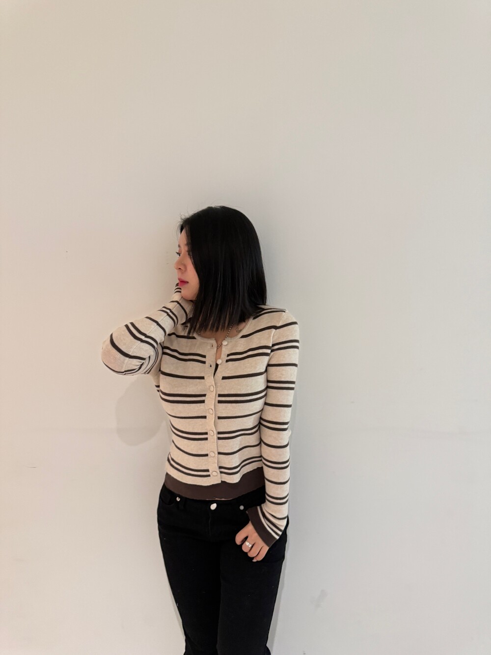 • 슬림한 실루엣의 배색 스트라이프 가디건