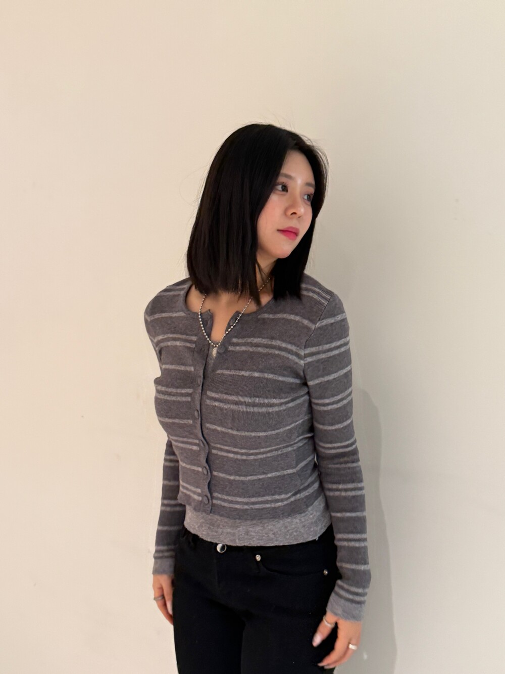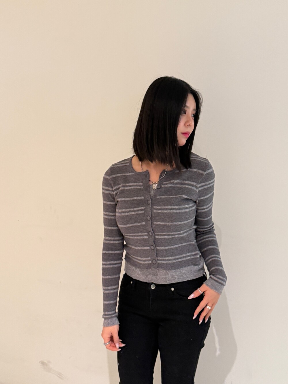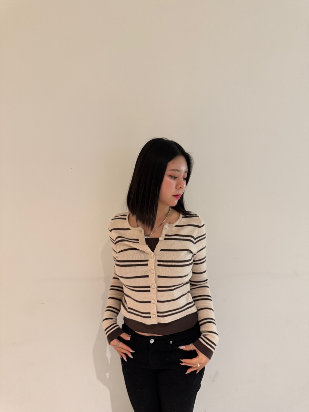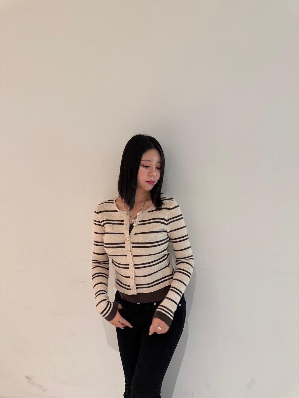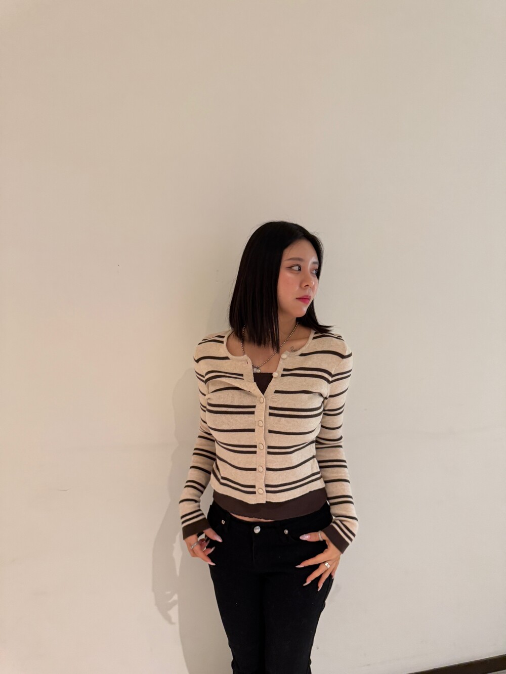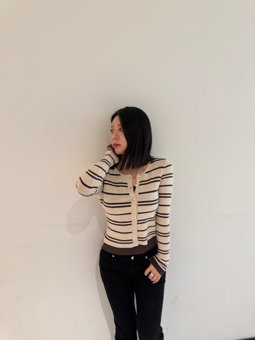 • 슬림한 실루엣의 배색 스트라이프 가디건