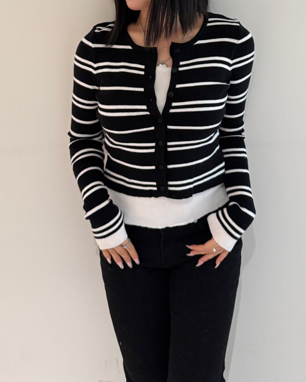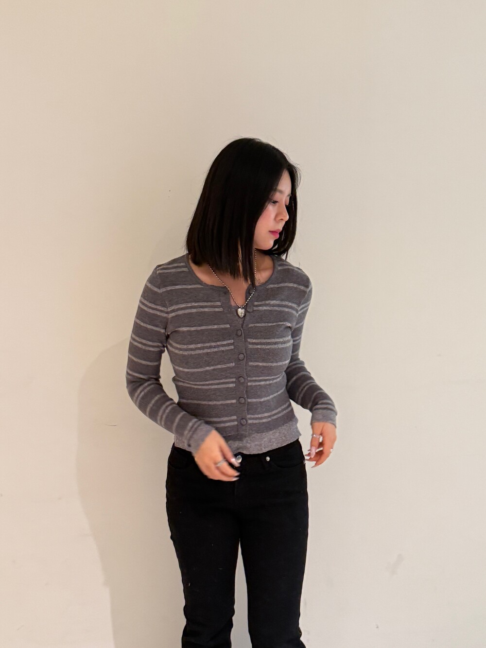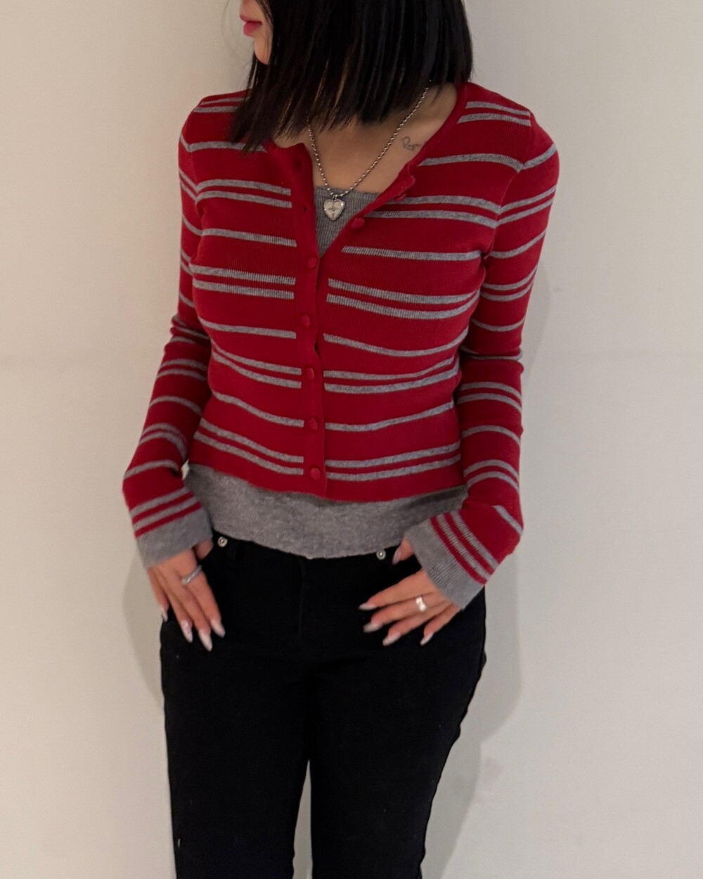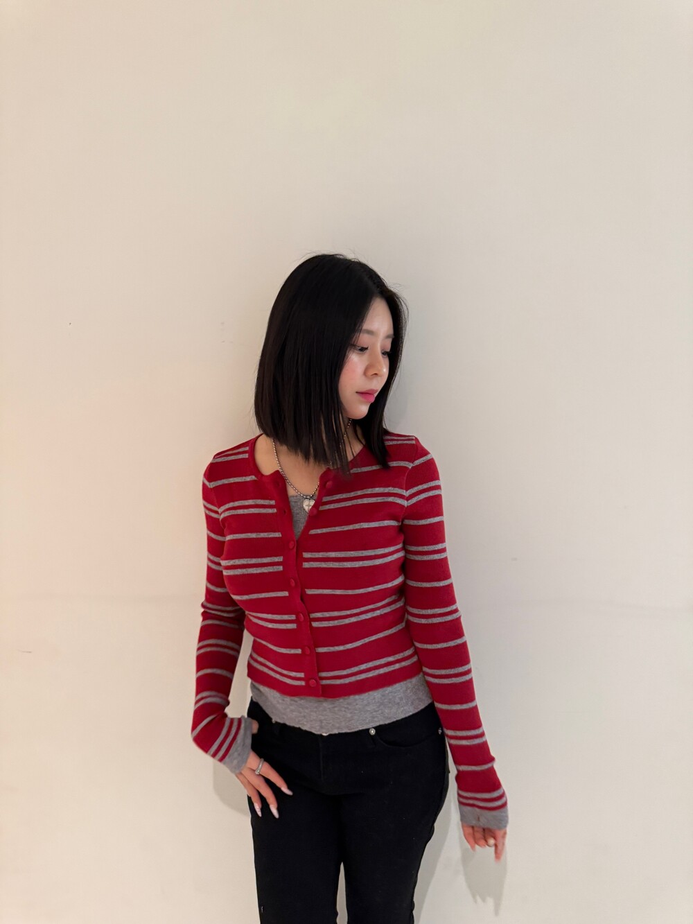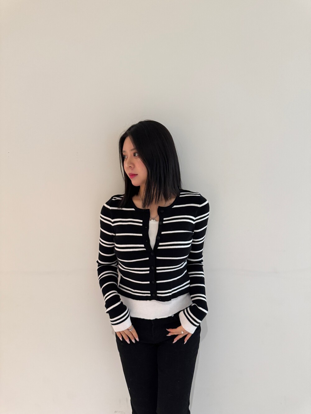 • 슬림한 실루엣의 배색 스트라이프 가디건