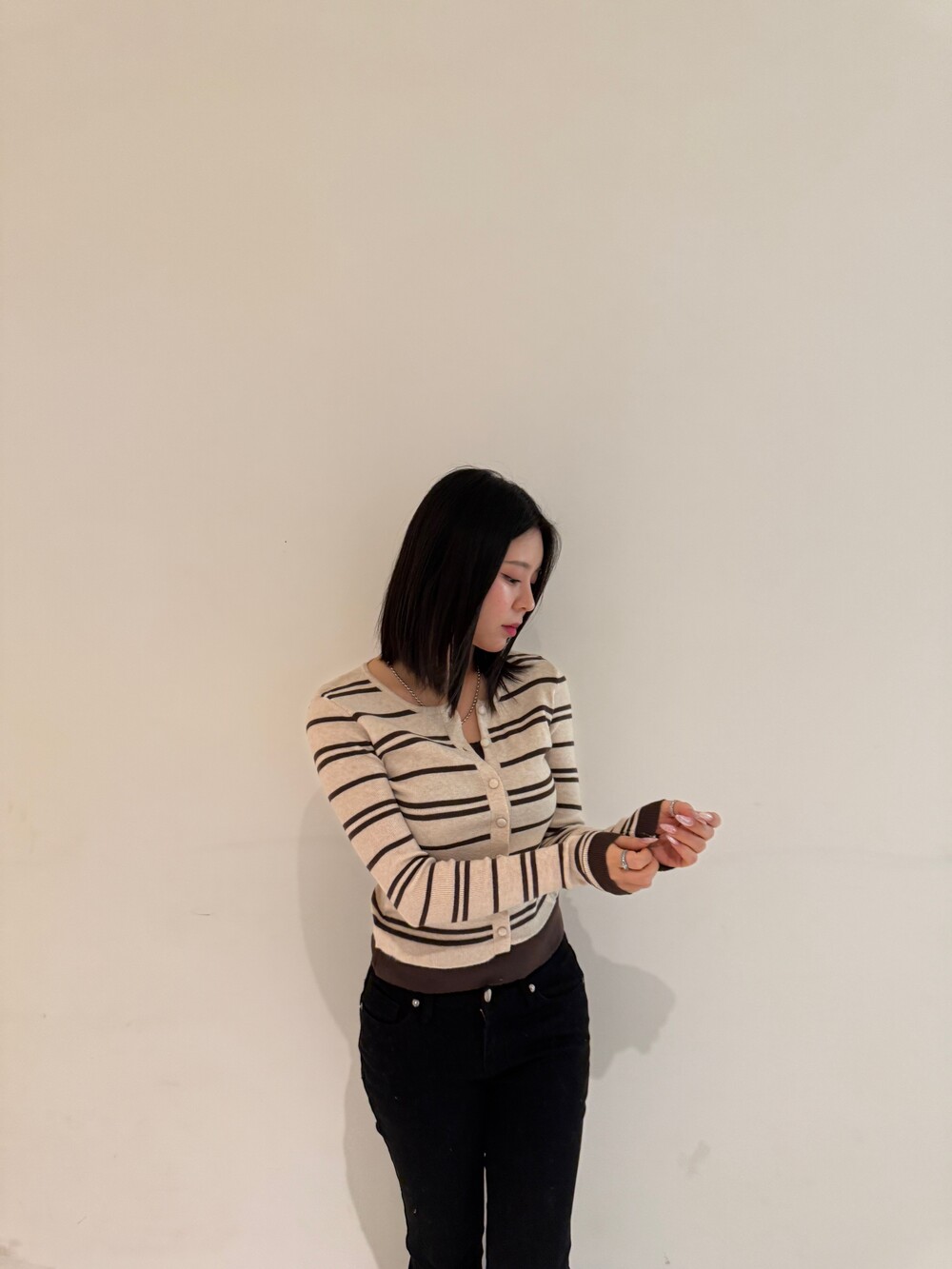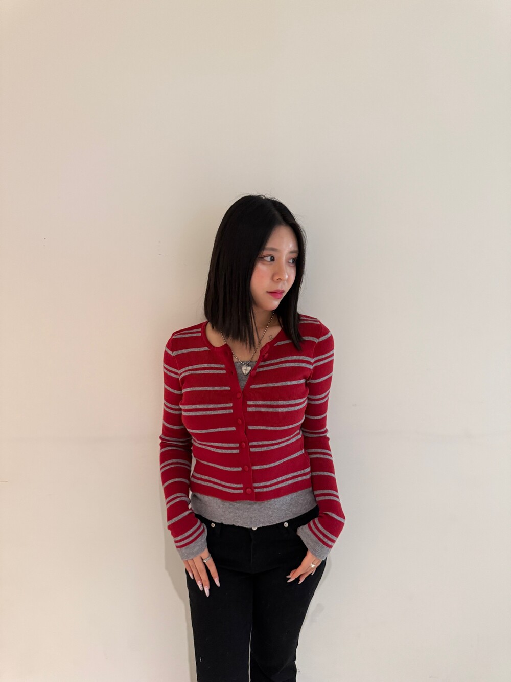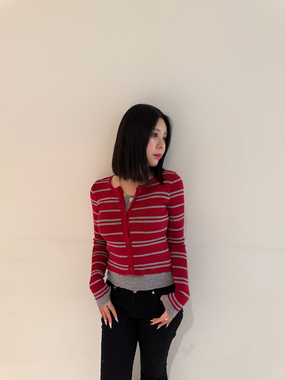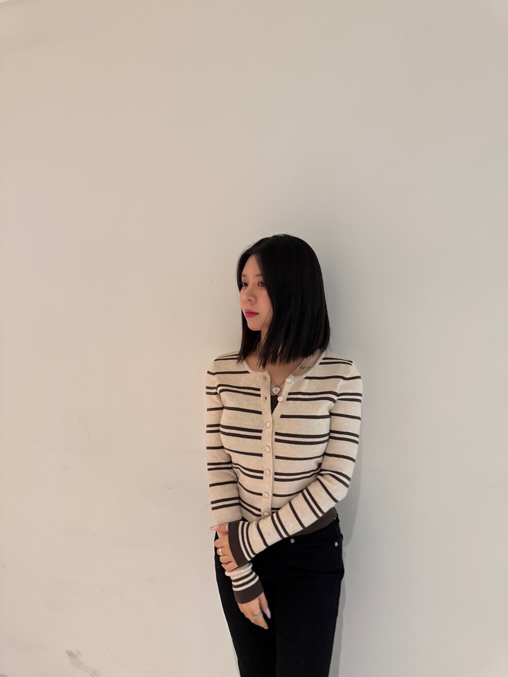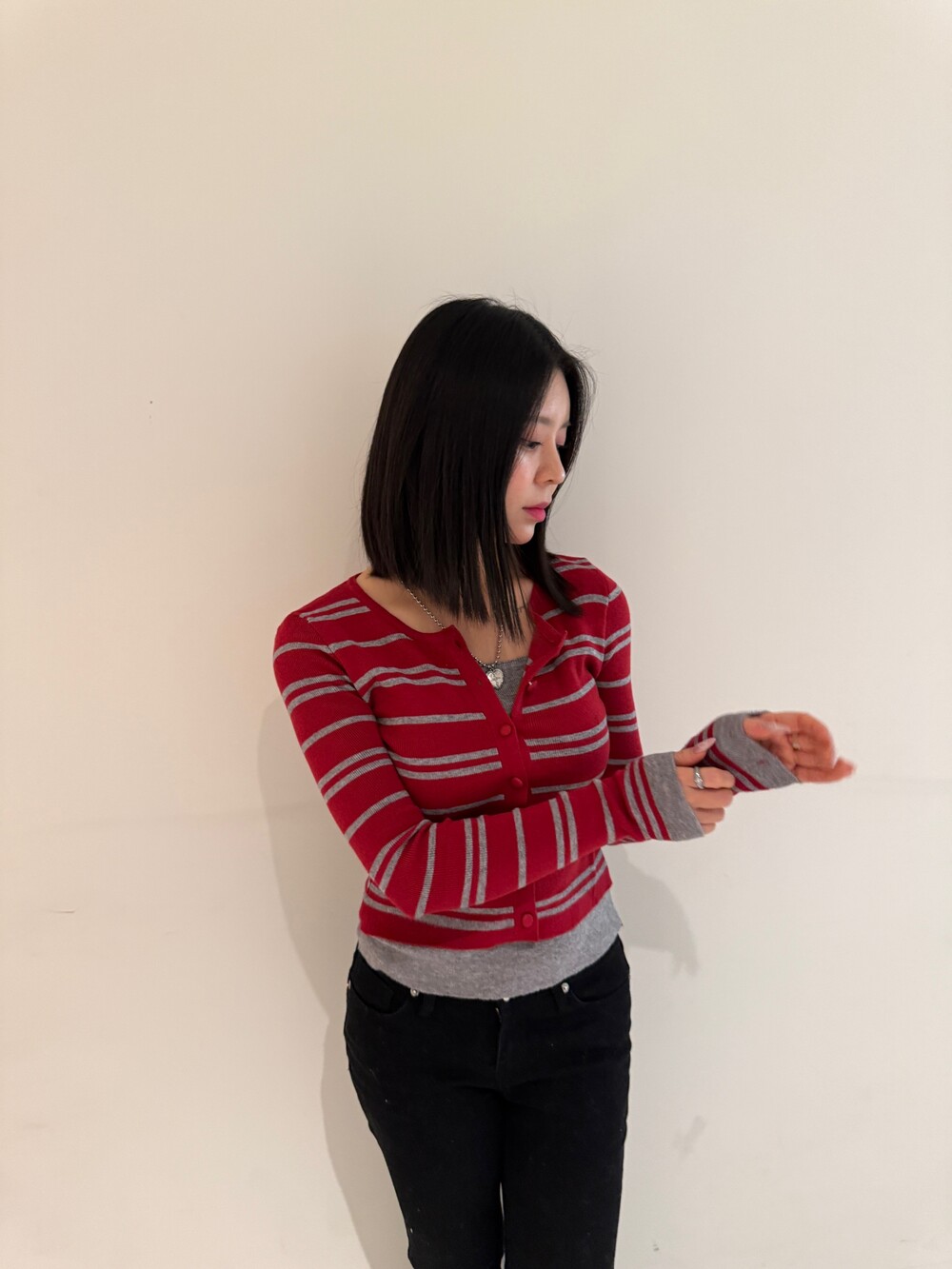 • 슬림한 실루엣의 배색 스트라이프 가디건