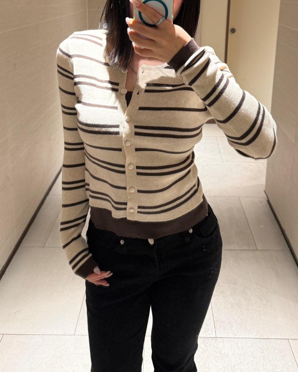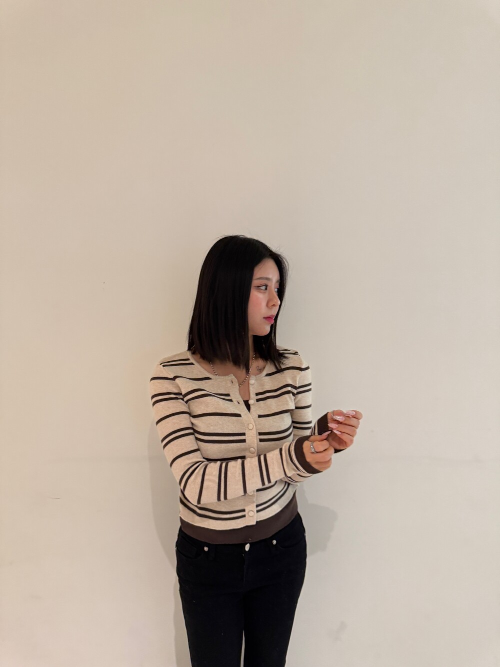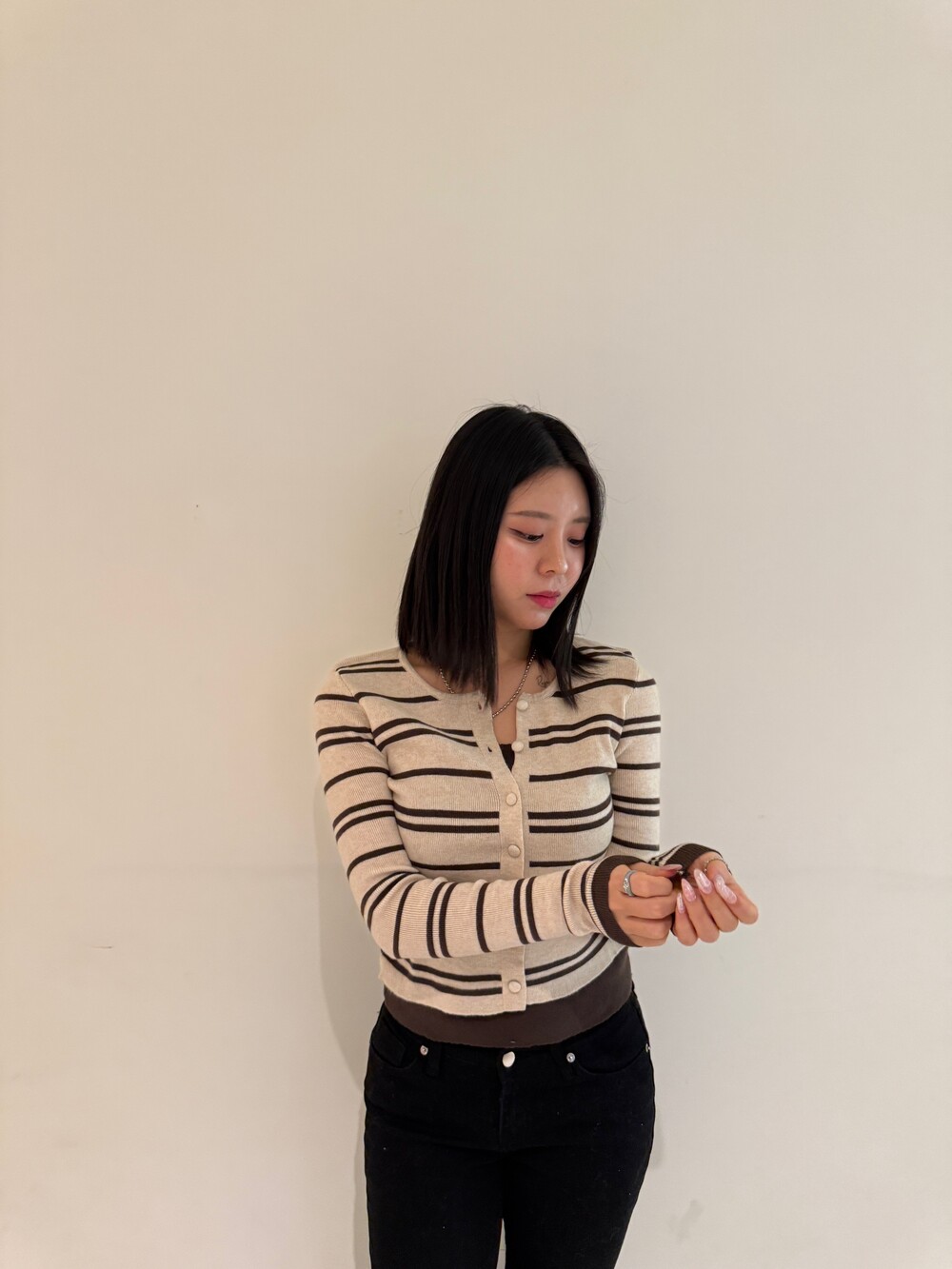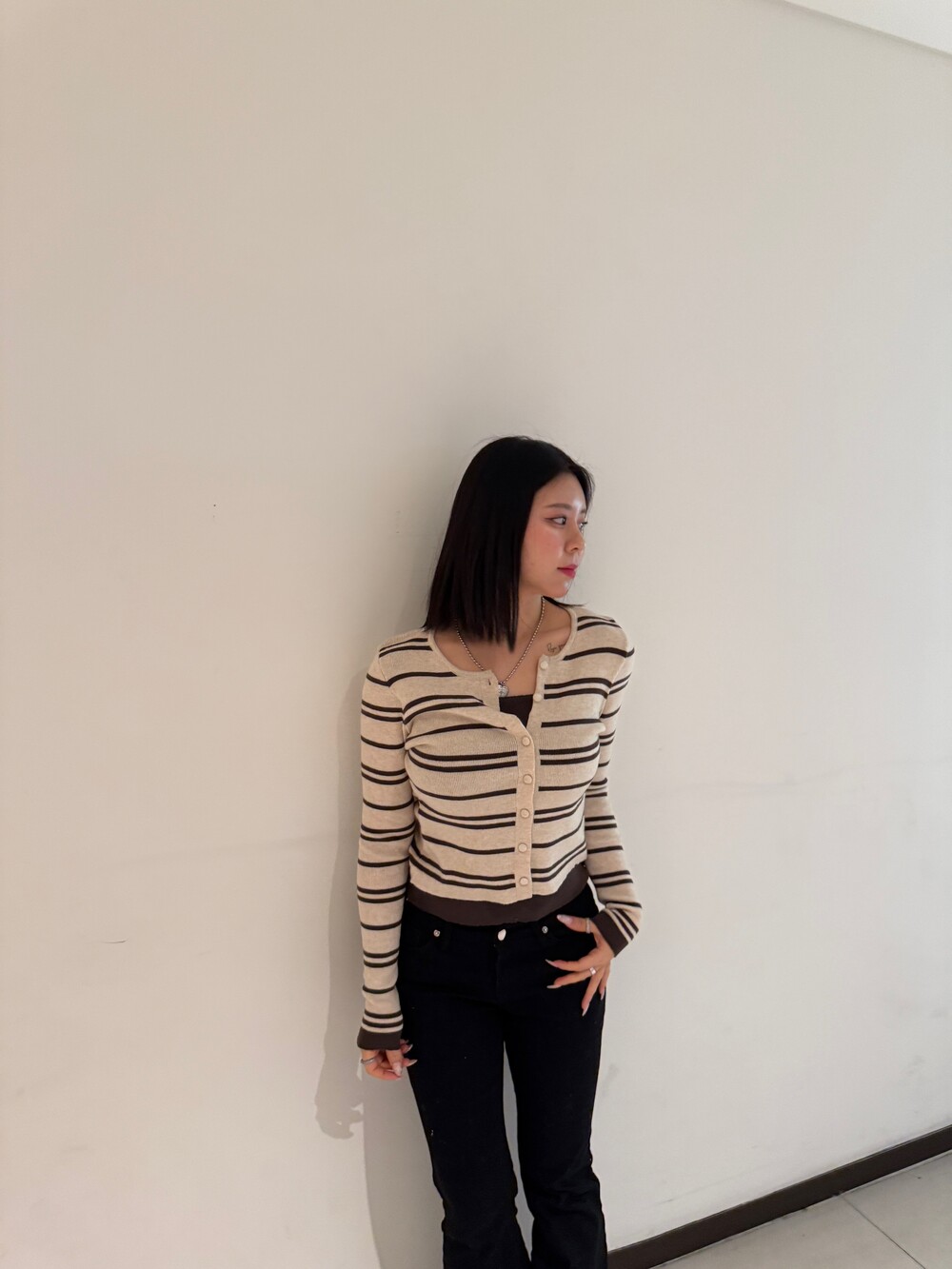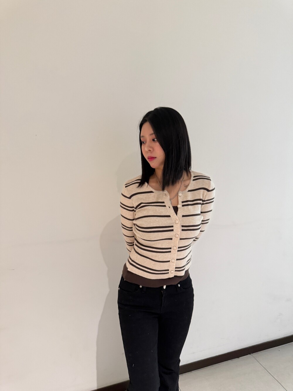 • 슬림한 실루엣의 배색 스트라이프 가디건