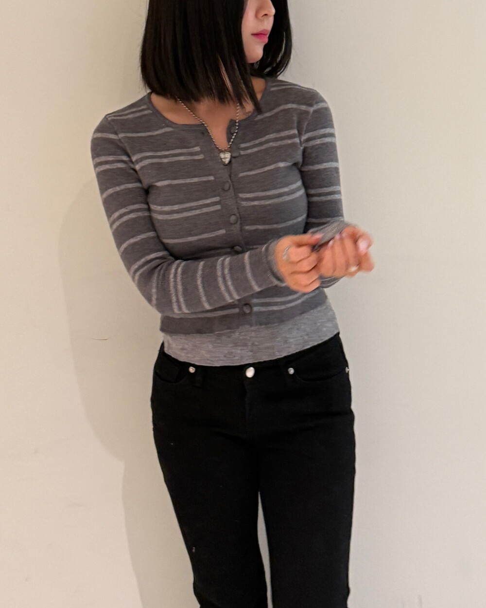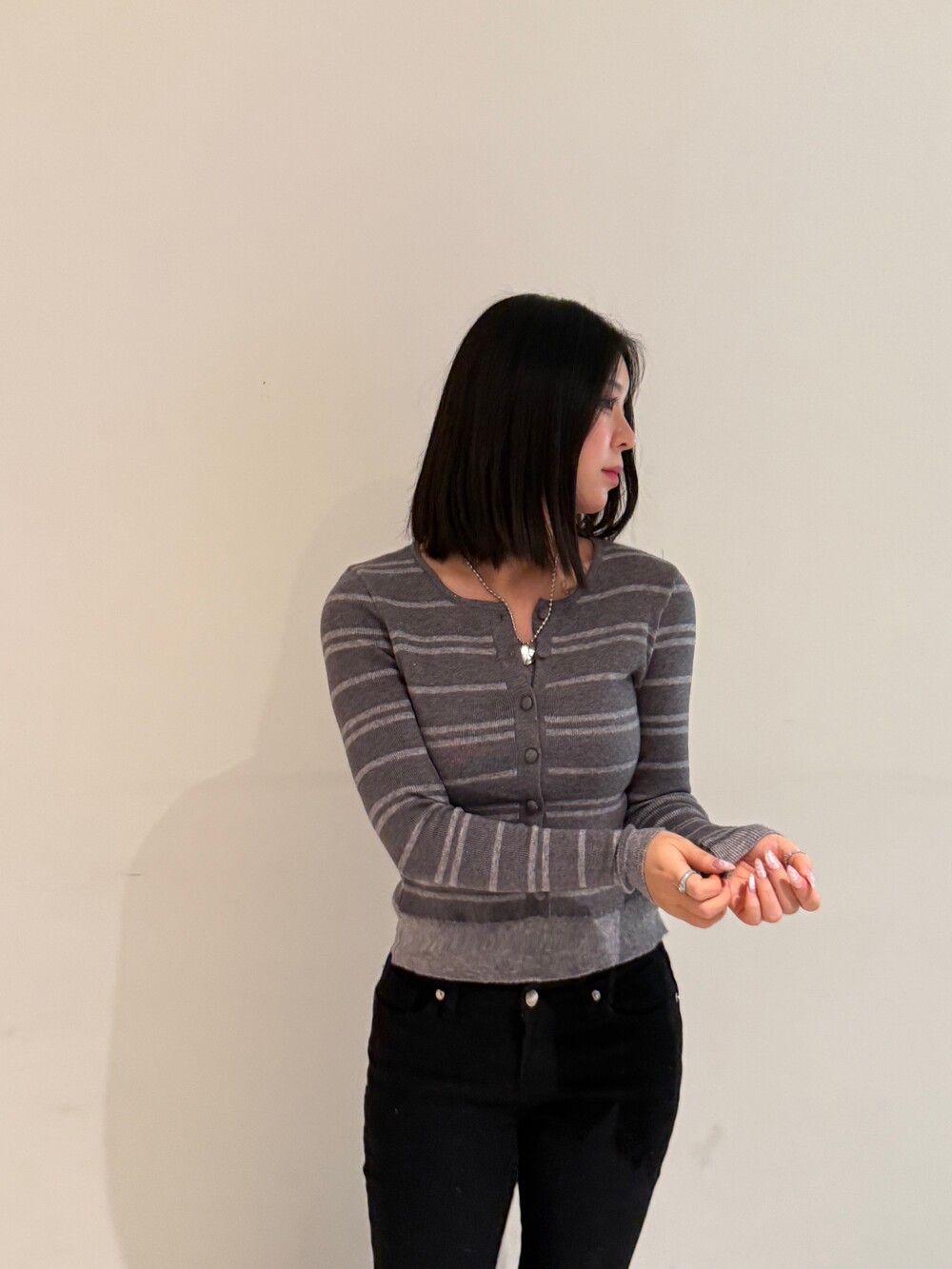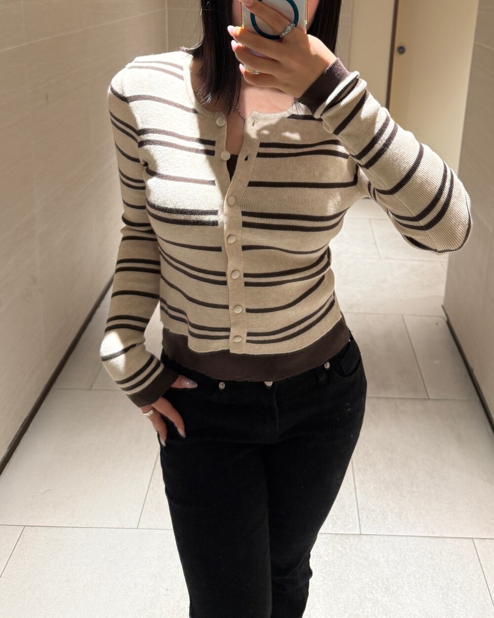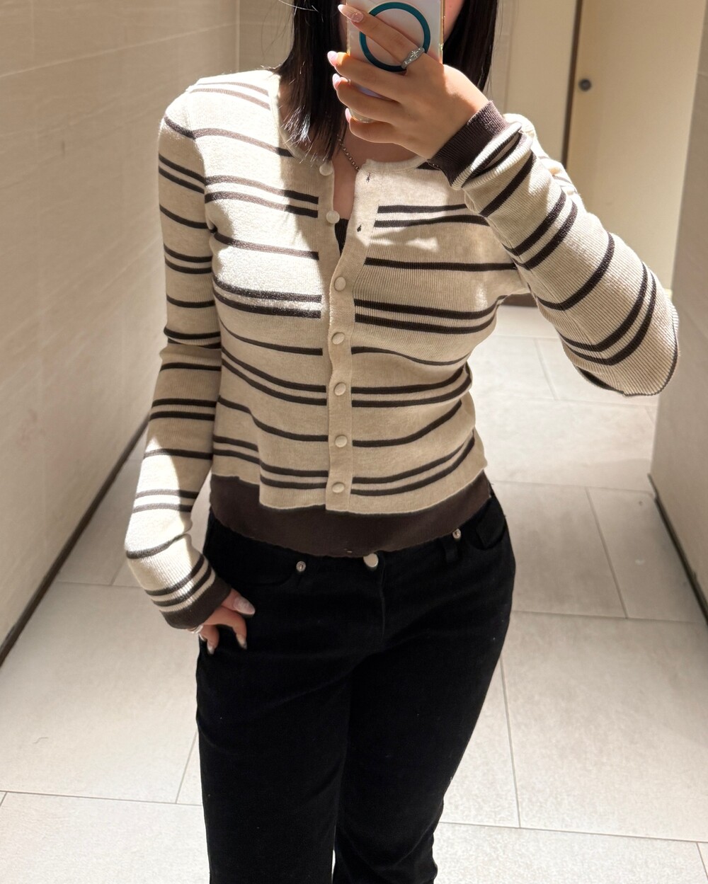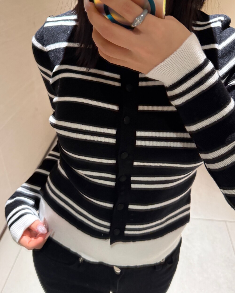 • 슬림한 실루엣의 배색 스트라이프 가디건