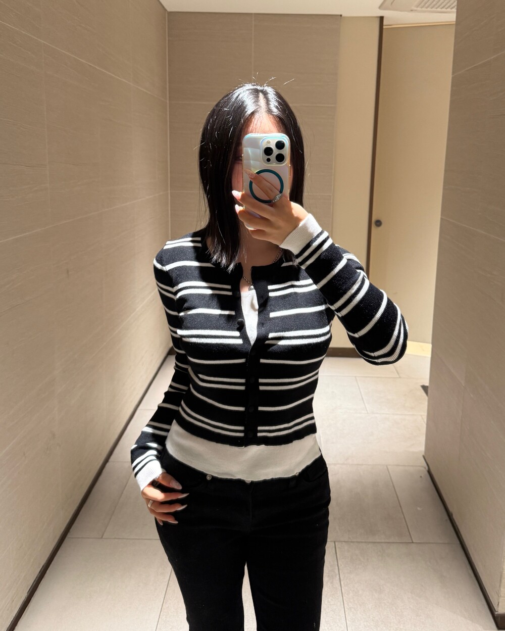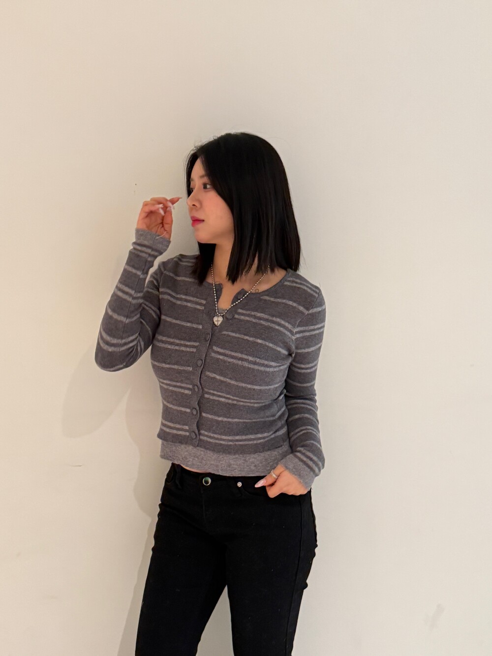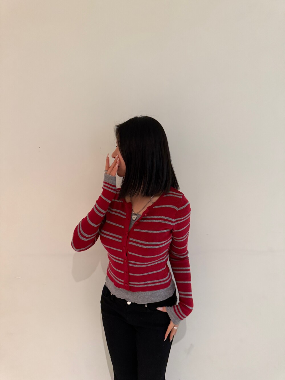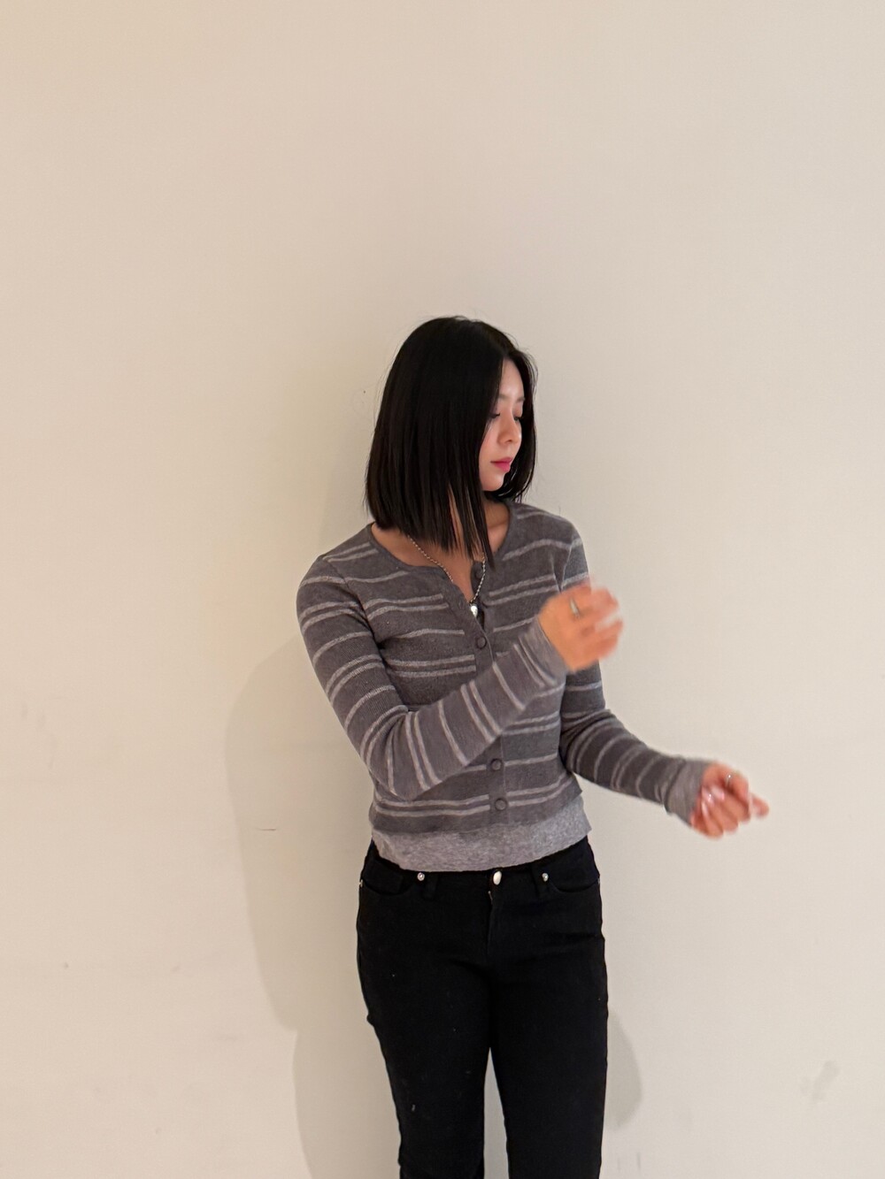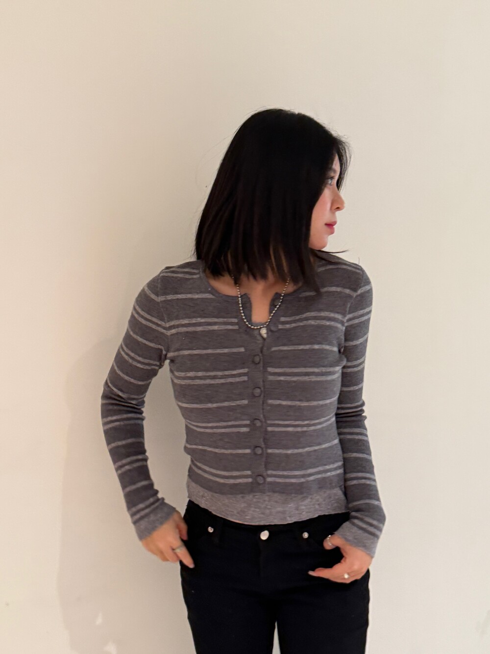 • 슬림한 실루엣의 배색 스트라이프 가디건