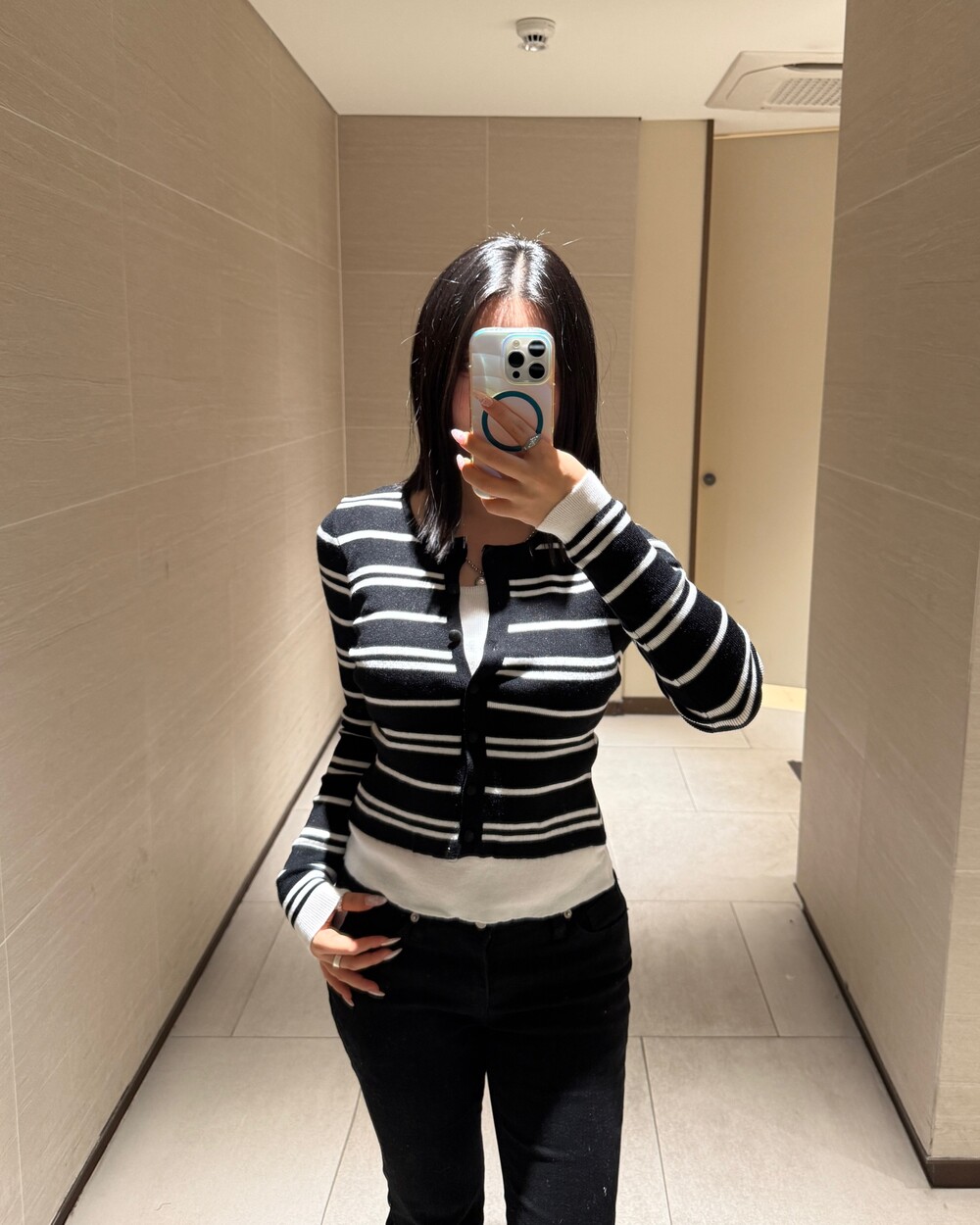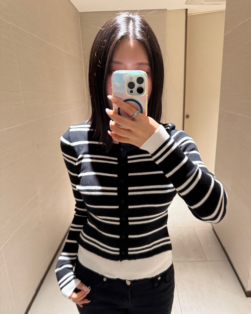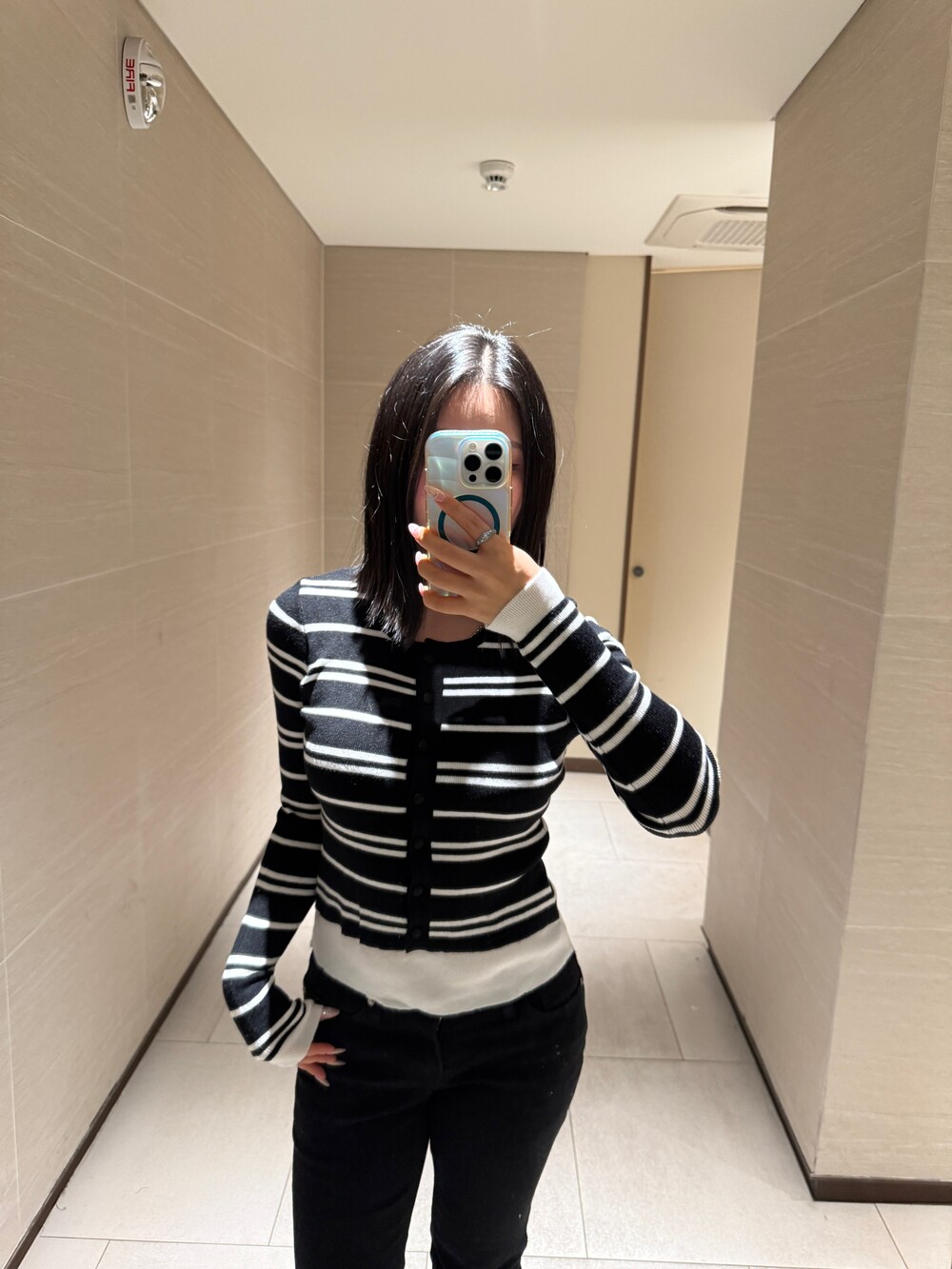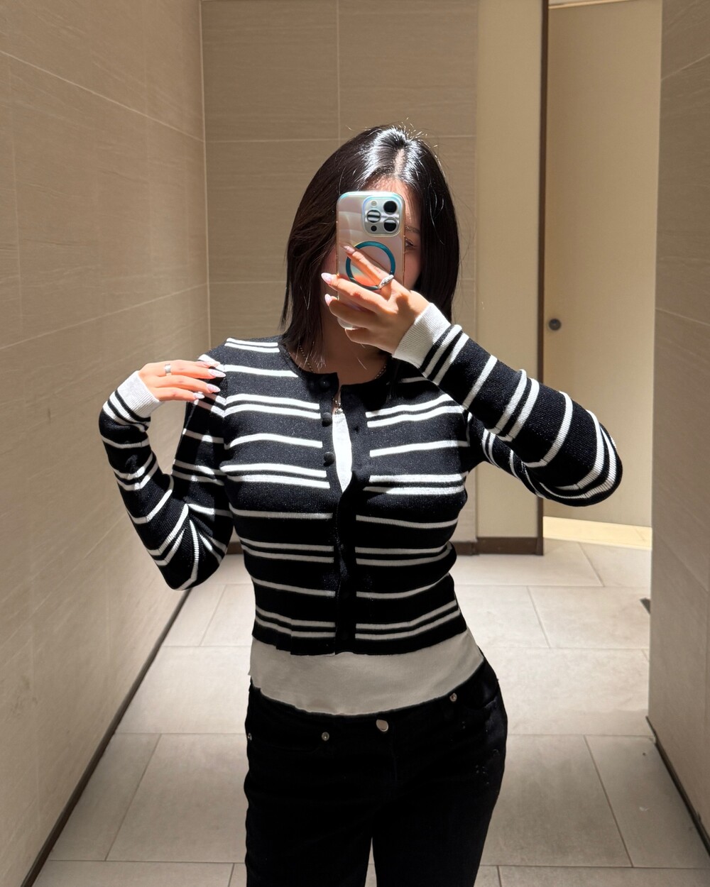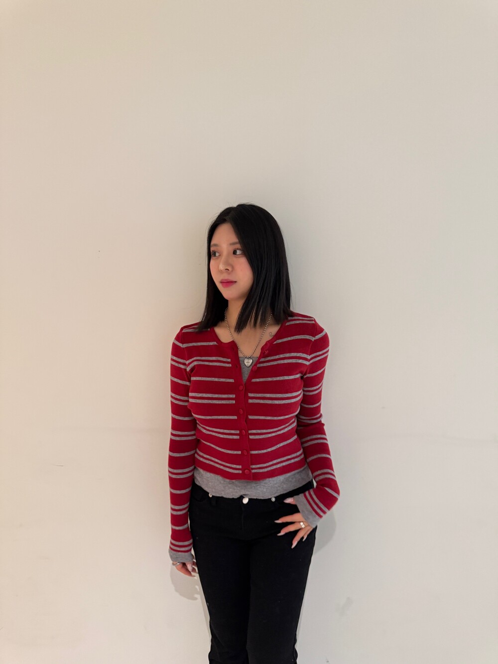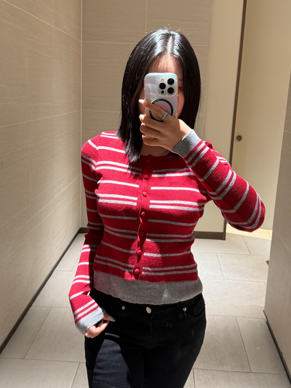 • 슬림한 실루엣의 배색 스트라이프 가디건