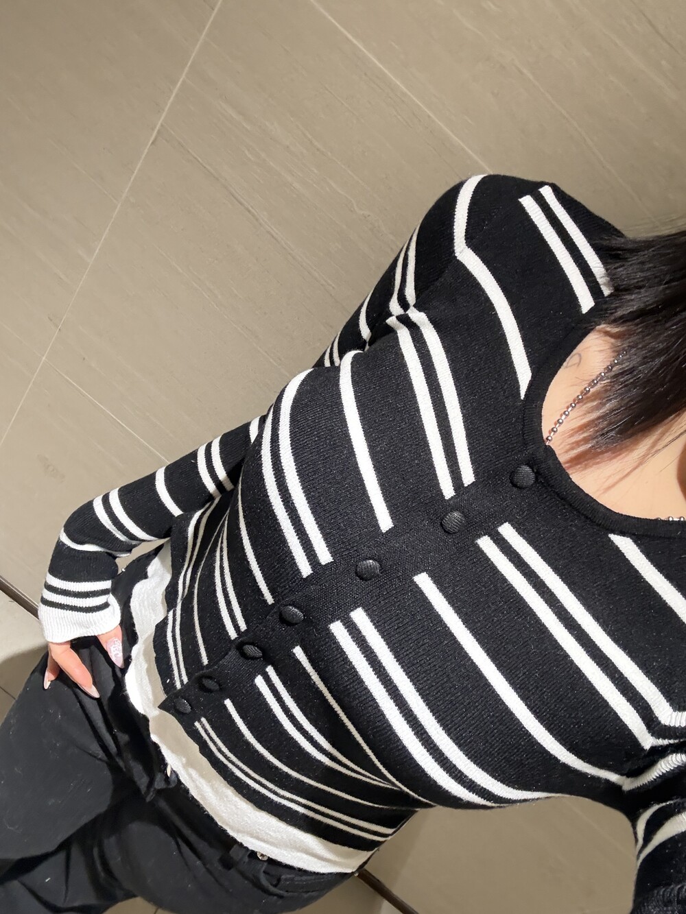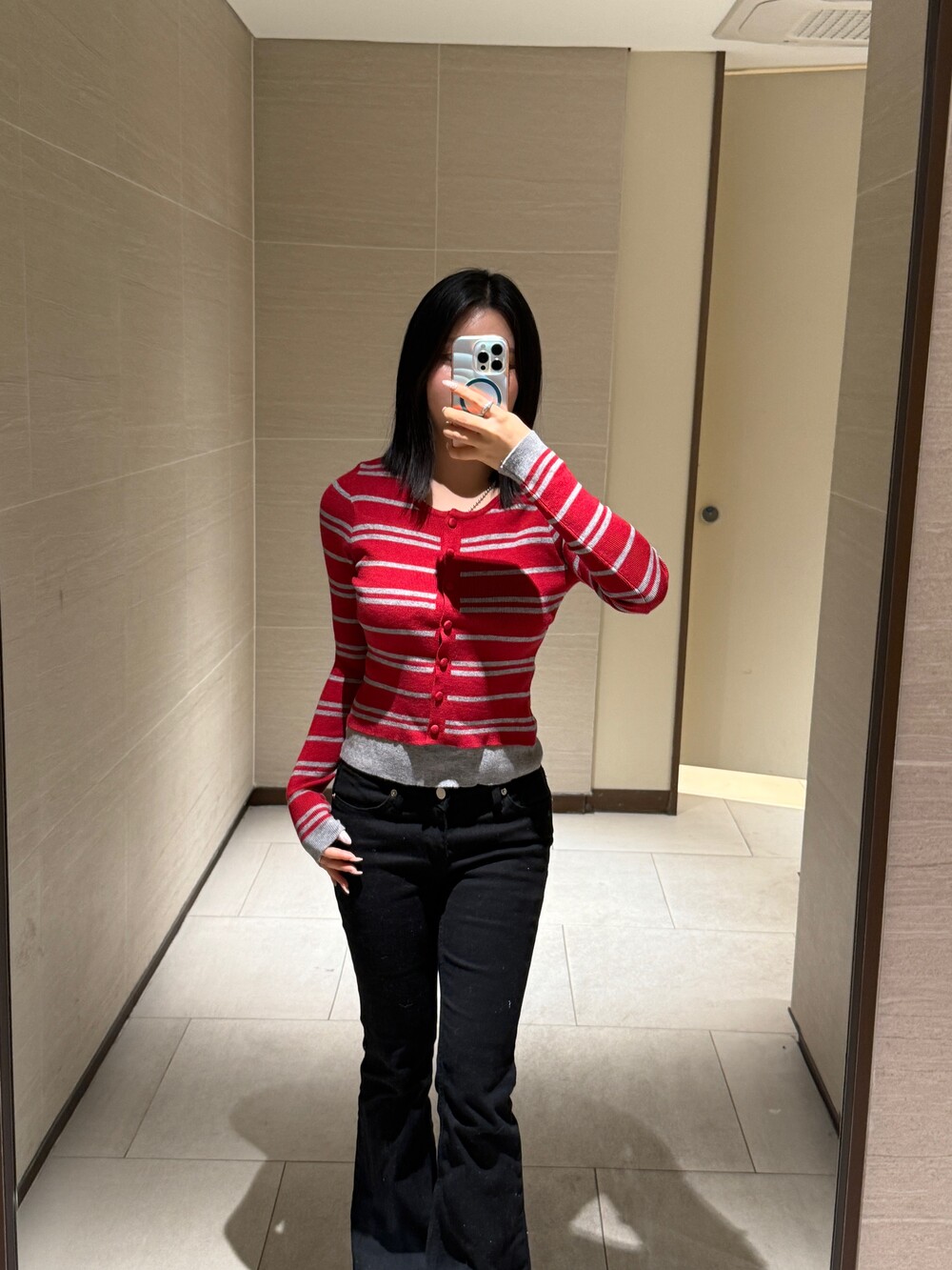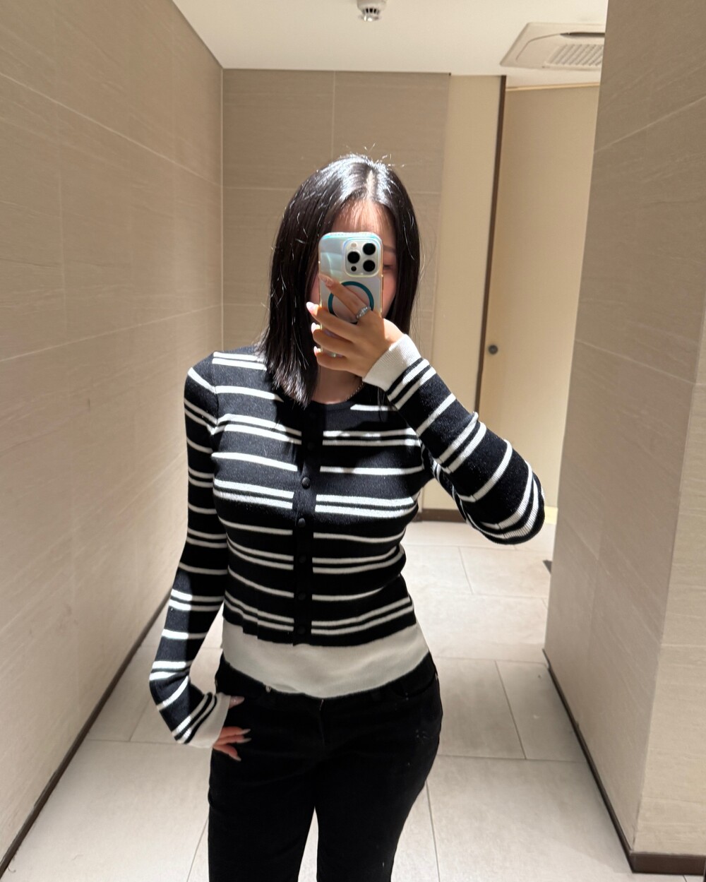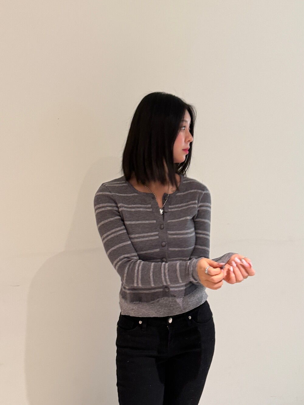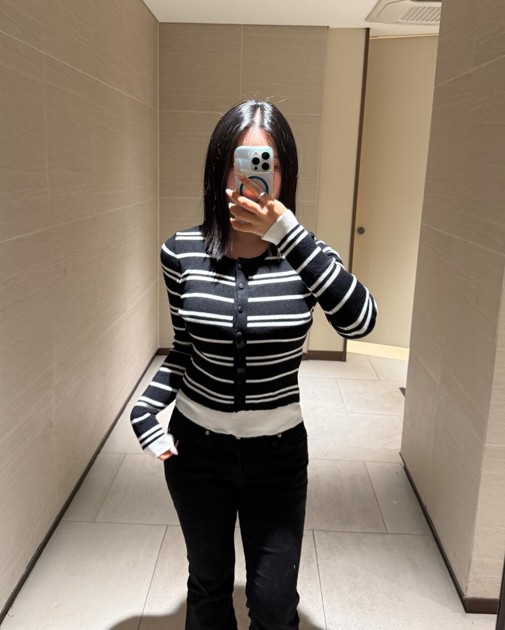 • 슬림한 실루엣의 배색 스트라이프 가디건