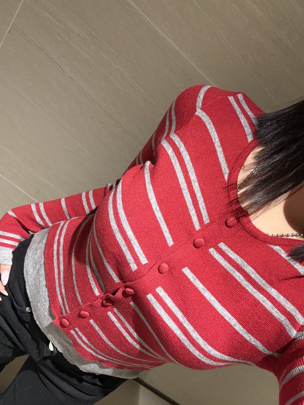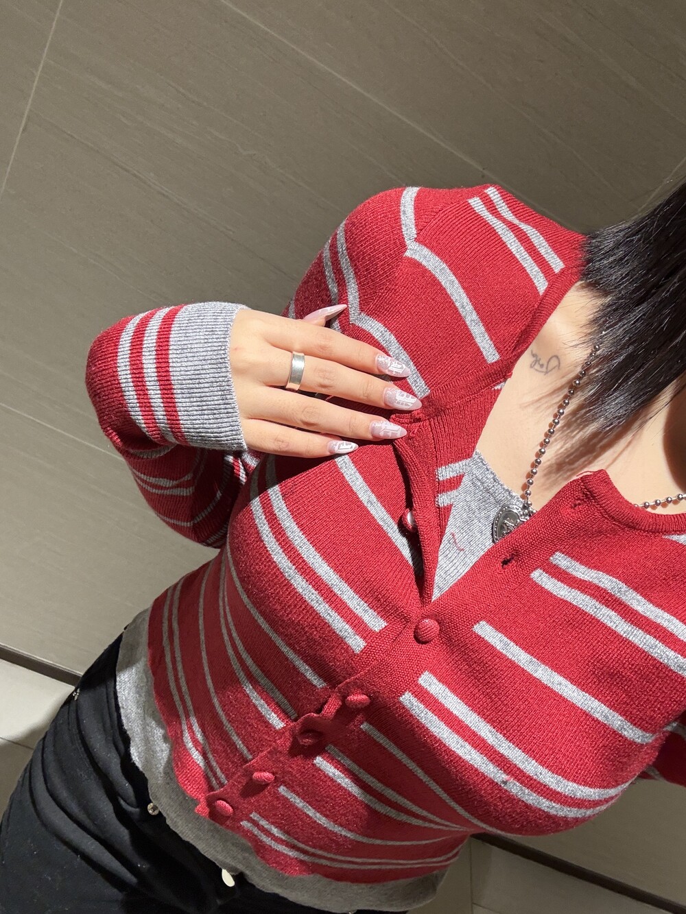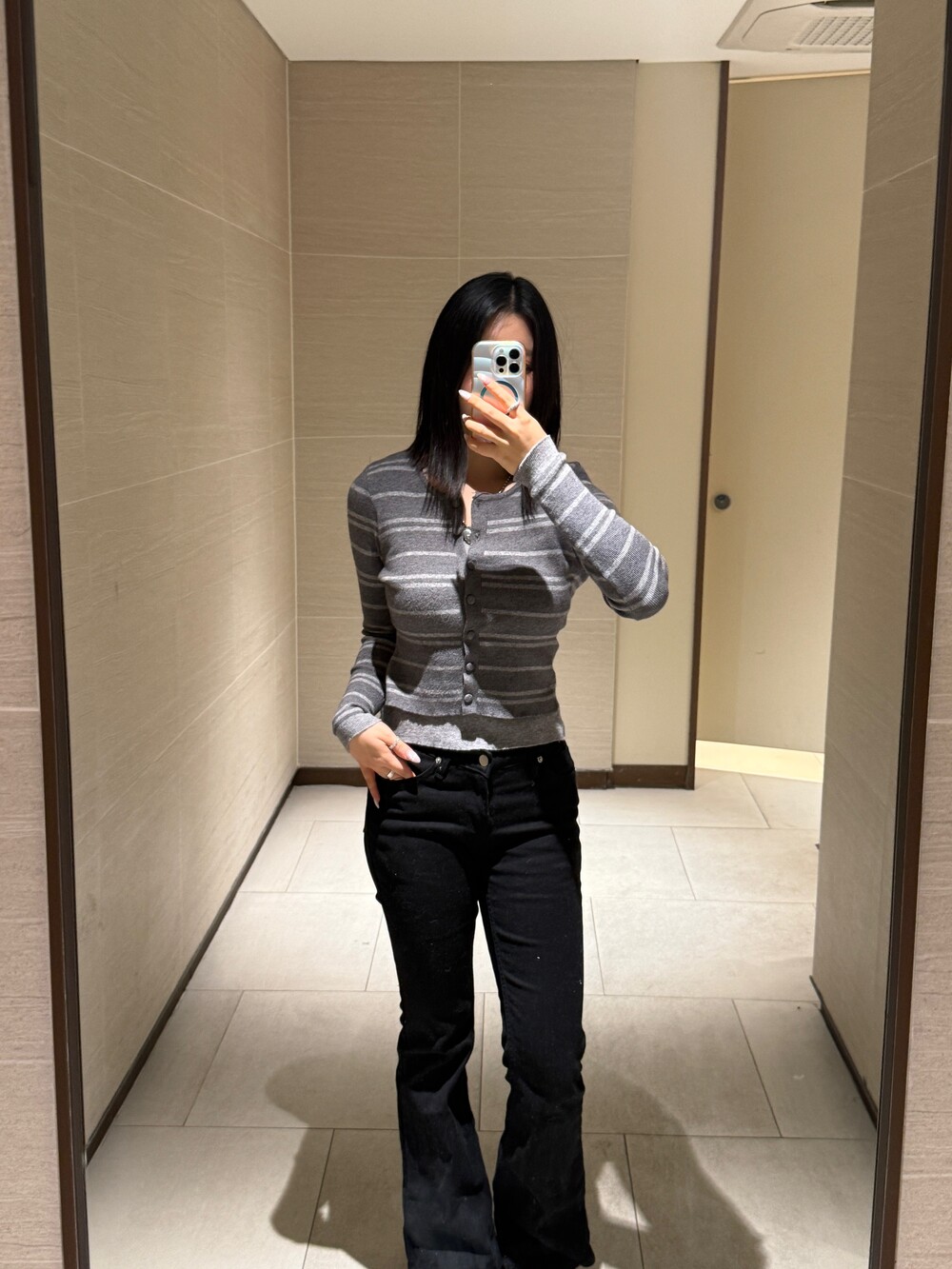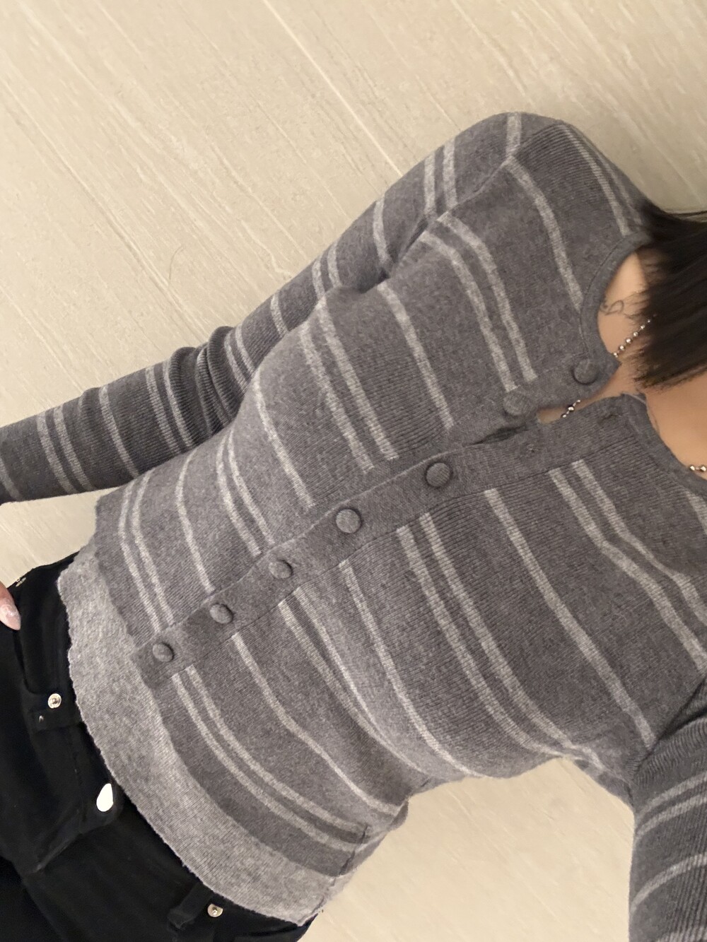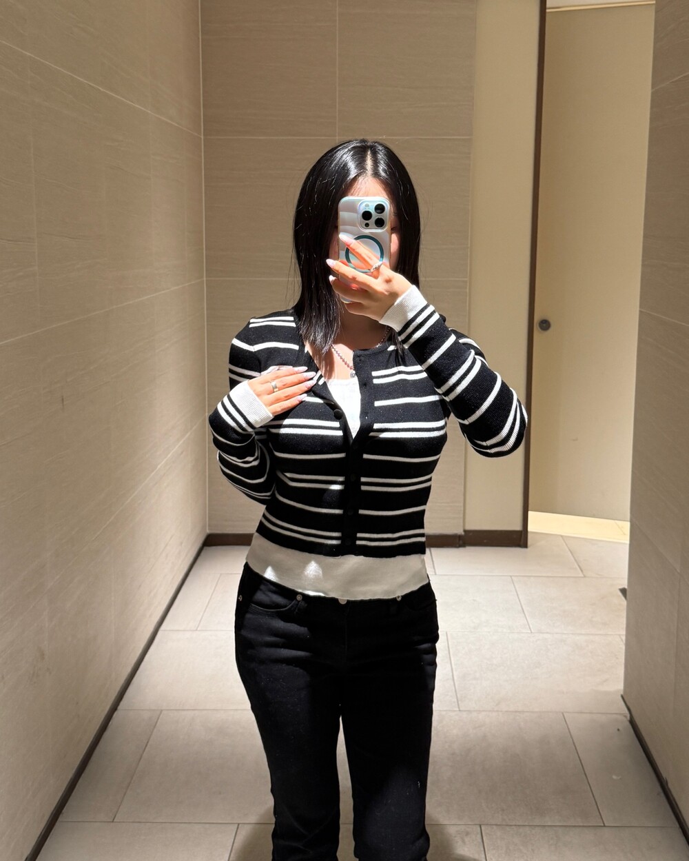 • 슬림한 실루엣의 배색 스트라이프 가디건